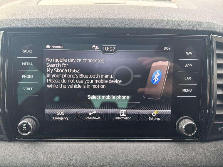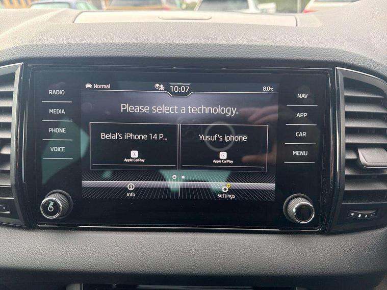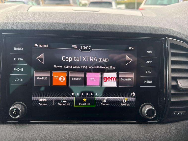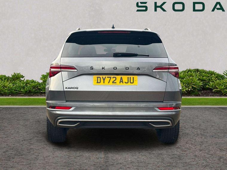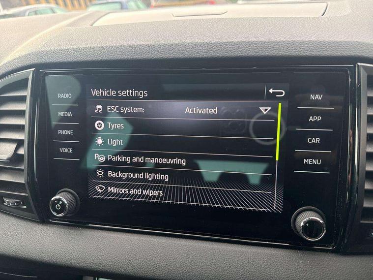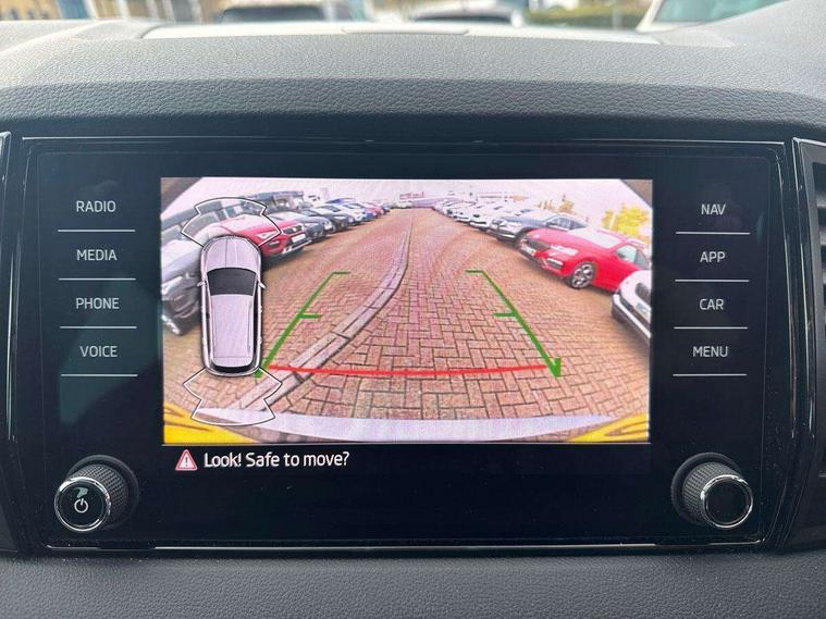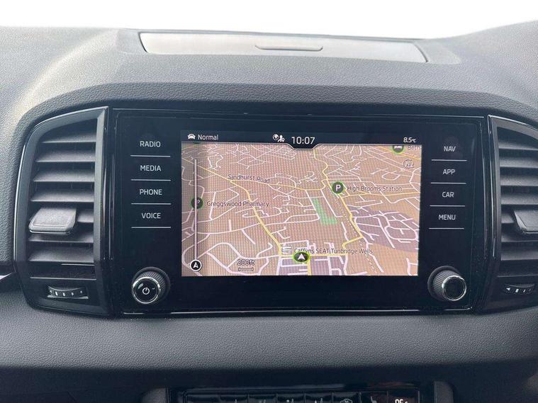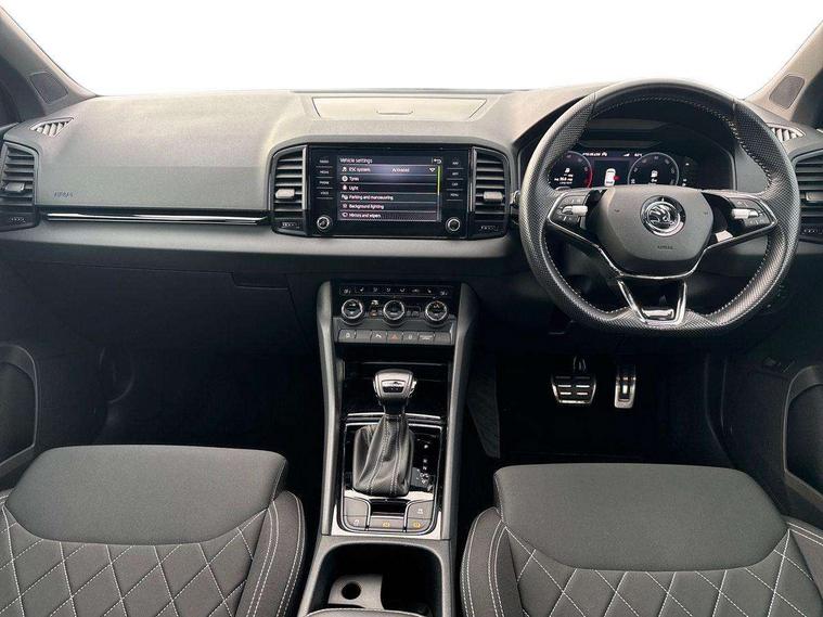 8" Digital display, Care connect, Driver fatigue sensor, Emergency services call system, Outside temperature gauge, Service interval indicator, SmartLink wireless for Apple and wired for Android, Start/stop system with regenerative braking, USB C Port x 2 in front centre console, Virtual pedal with electrically operated boot door, 8 Speakers, DAB radio with Bluetooth, USB connection, Acoustic glass, Aero front windscreen wipers with intermittent function, Auto dimming rear view mirror with light and rain sensors, Black door mirrors, Black electric window control buttons, Black radiator grille, Black roof rails, Body colour door handles, Dynamic headlight range control with cornering light function, Electric front and rear windows with child proof lock, Front door steps with SportLine logo, Heated rear windscreen, LED daytime running lights, LED rear lights with high functionality welcome effect and dynamic indicators, Light assistant (coming/leaving home/tunnel light), Panoramic sliding sunroof, Plastic scuff plates, Privacy glass, Protective door side sills in body colour, Rear diffuser, Rear side wing doors, Rear spoiler, Rear window wiper with washer system and intermittent control, Safety reflectors on front doors, Skoda lettering on tailgate in black, Sportline badge on front fender, Sportline decorative inserts with badging, Sports front and rear bumpers, 1.5 litre bottle holders in driver and front passenger door panels, 12V socket in boot, 12v socket in front centre armrest with storage compartment and rear air vents, 2 Folding hooks and nets in boot, 3 rear height adjustable headrests, 3 seat bench in 2nd row, 3 spoke leather sports multifunction steering wheel and silver stitching with gear shift paddles, 4 foldable roof handles with rear coat hooks, Black floor carpet, Black roof headlining, Chrome inner door handles, Double sided boot floor, Foldable hooks in the boot, Front head restraints, Height adjustable front three point seats belts with tensioners, Height/reach adjust steering wheel, Ice scraper, Illuminated glovebox, Illuminated luggage compartment, Isofix child seat preparation outer rear, Manual lumbar support for front seats, Pen holder, Pollen filter, Rear boot cover, Rear reading lights, Rear seats fixed folding and divided 60:40, Rubbish bin door, Safety vest holder, Single front passenger seat, Storage box in upper central dashboard closed, Sunvisors with illuminated vanity mirrors, Textile floor mats, Ticket holder, Titan black interior ceiling, Welcome animation with sportline logo, Light Pack - Karoq, Parking pack - Karoq, Automatic door unlocking in case of crash, Automatic fuel cut off in case of crash, Child locks on rear doors, Driver airbag, Electronic parking brake with auto hold function, Emergency rear braking signal, ESC including ABS, MSR, ASR, EDS, HBA, DSR, RBS, MKB and traction control, Front side airbags, Hill hold control, Knee airbags, Passenger airbag with switch-off function, Pedestrian monitor, Seatbelt reminder signalisation and pretensioner for all seats, Three point seatbelts rear, Two tone horn, Tyre pressure display, Tyre pressure monitor, Alarm with interior monitoring, back up horn and tilt sensor with safe function, Electronic engine immobiliser, Keyless entry and start/stop, Remote central locking with 2 remote folding keys, Black air vent surround, Black centre console, Satin black dashboard, Satin black door trim, 19" Sagitarius anthracite alloy wheels with matt black aero inserts, Anti-theft wheel bolts protection, Matt black aero hub caps, Storage on wheel cover, Tool kit,