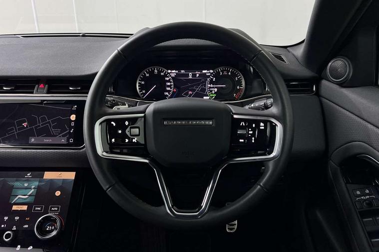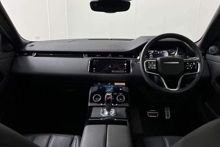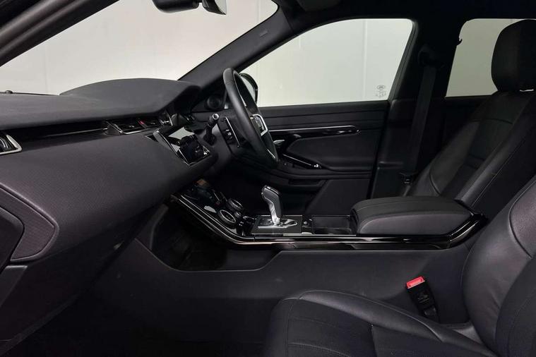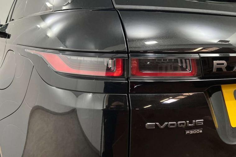 Adaptive cruise control, Android Auto, Apple car play, Bluetooth connectivity, Brake pad wear indicator warning light, Driver condition monitor, eCall emergency system, Electronic power assisted steering (EPAS), Front and rear parking aid, InControl remote, Land Rover InControl apps, Lane keep assist, Pivi pro connected includes upgraded infotainment, connected navigation pro, Nuance speech licence, Push button starter, Traffic sign recognition with adaptive speed limiter, Voice control system, 7 kW onboard charger, All terrain progress control, Electric rear axle drive, Home charging cable, Large fuel tank, Passive suspension, Public charging cable, Terrain Response 2 Auto, Digital Audio Broadcast radio-DAB, Steering wheel mounted controls, Auto headlights, Daytime running lights, Electric windows with one touch open/close and anti trap, Evoque and R-Dynamic badge, Flush deployable exterior door handles, Heated rear window with timer, Heated washer jets, Heated windscreen, P300e badge, Power fold, auto-dimming, heated door mirrors with approach lights and auto dimming driver side, Rain sensing windscreen wipers, Rear fog lights, Rear side wing doors, Rear wiper, Tailgate spoiler, Third brake light, 40:20:40 split folding rear seats with centre headrest and armrest, Ambient interior lighting, Bright metal pedals, Isofix system on outer rear seats, Overhead lighting console, Overhead stowage for sunglasses, Passive front head restraints, Rear air vents, Rear centre headrest, Rear head restraints, Satin chrome gearshift paddles, Single passenger seat, Sunvisors with illuminated vanity mirrors, Twin sliding front centre armrest, 3 rear 3 point seatbelts, Anti-lock braking system (ABS), Customer configurable autolock, DSC - Dynamic Stability Control, Electronic brake force distribution, Electronic parking brake, Electronic traction control, Emergency braking, Front and rear seatbelt reminder, Hill descent control, Hill launch assist, Low traction launch, Power operated child locks, Roll stability control, Six airbags - Driver and passenger airbags/driver knee airbag/front side airbag and curtain airbags, Torque vectoring brake, Tyre pressure monitoring system, Alarm, Immobiliser, Intrusion sensor, Locking wheel nuts,