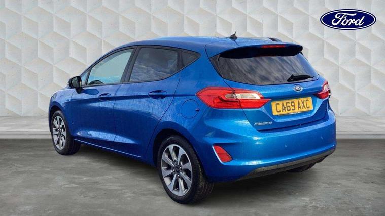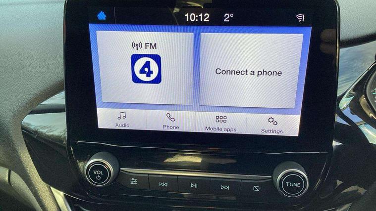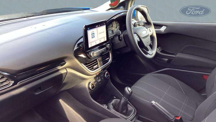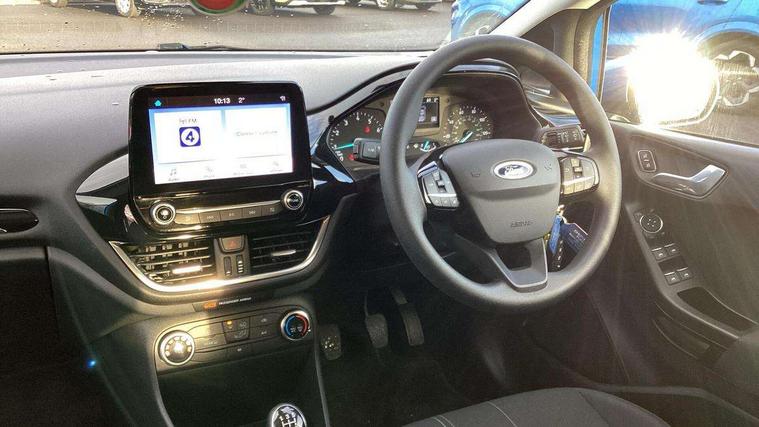 Bluetooth system, Electric power steering, Ford easy fuel, Trip computer, 2 USB ports, Auxiliary input socket, DAB Digital radio, Ford SYNC includes 8" touchscreen, 6 speakers, apple carplay, android auto and emergency assistance, Steering wheel mounted controls, Body colour bumpers, Body colour door handles, Body colour rear spoiler, Chrome beltline trim, Cornering front fog lights, Electric front windows/one touch facility, Electric rear windows, Halogen projector style headlights with static cornering lights + LED daytime running lights, Mesh design front grille with chrome surround, Privacy glass, Quickclear heated windscreen, Rear privacy glass, Rear wiper, Tinted glass, 12V Accessory socket in centre console, 60/40 split folding rear seat, Adjustable head restraints, Ambient lighting, Boot carpet, Chrome inner door handles, Cloth upholstery, Footwell illumination, Front map reading lights, Front seat and rear pockets, Height adjustable driver's seat, Illuminated glovebox, Leather gear knob, Leather trimmed handbrake handle, Load area light, Luxury woven headliner, Manual air conditioning, Overhead console with sunglasses holder, Pollen filter, Rake/reach adjustable steering wheel, NCAP Pack - Fiesta, 3 point seatbelts on all rear seats, ABS+EBA, Curtain airbags, Driver and passenger airbags, Drivers knee airbag, Electronic stability control with hill start assist, Front passenger airbag deactivation, Front side airbags, Tyre pressure monitoring system, MyKey system, Remote central locking & engine immobiliser, Thatcham Cat.1 alarm, 16" 8 spoke alloy wheels with rock metallic machined finish,