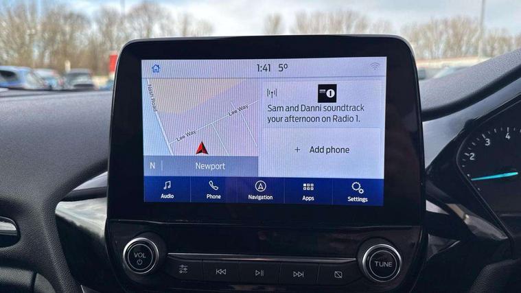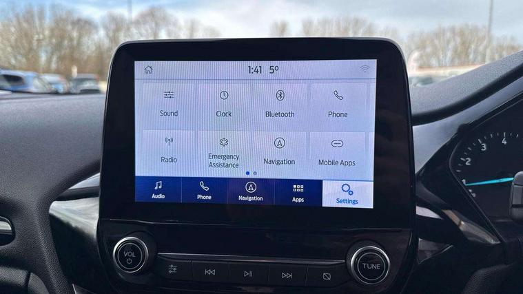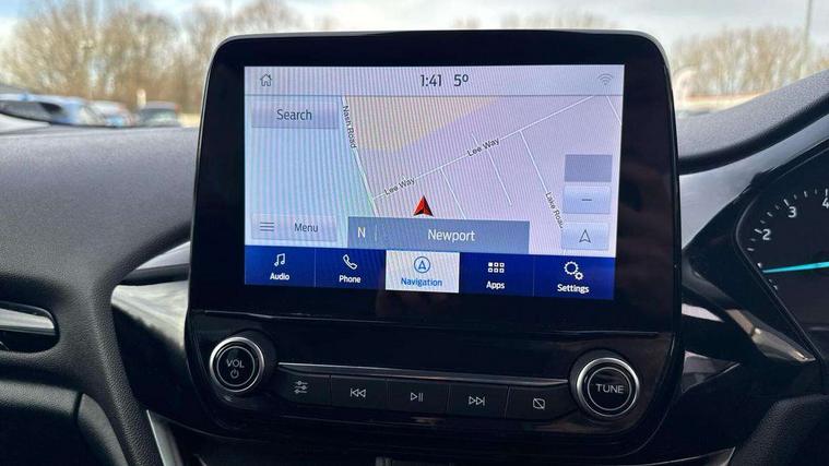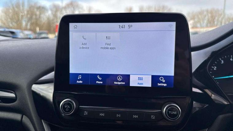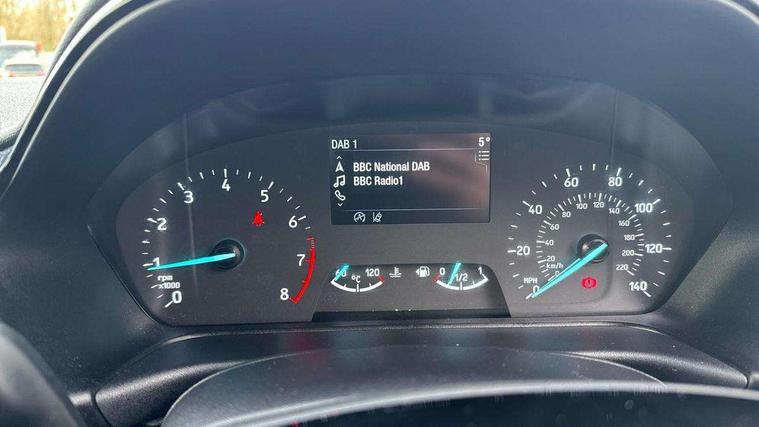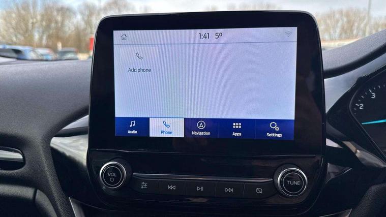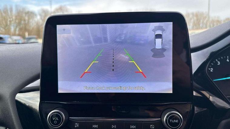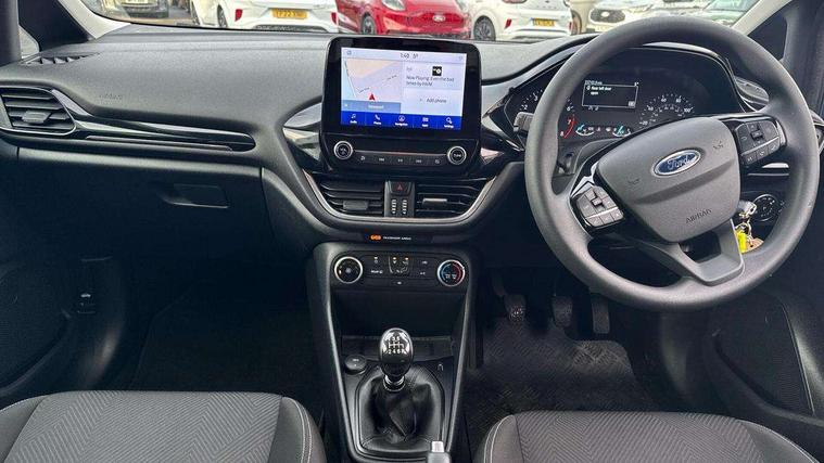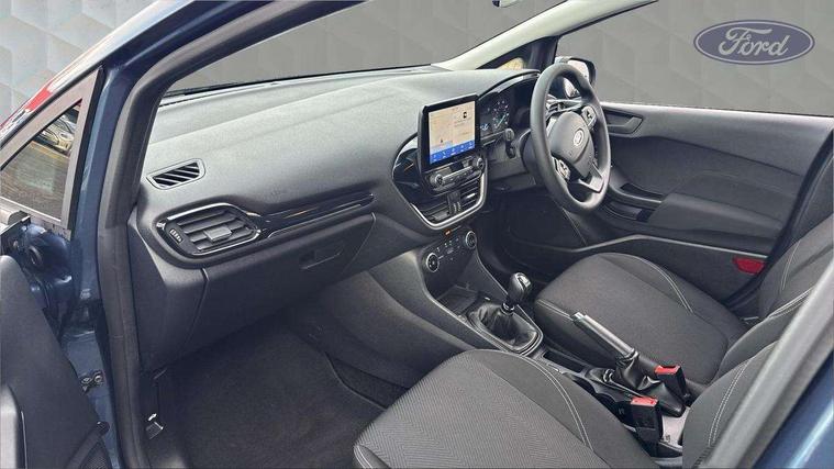 4.2" TFT Ice blue illumination analogue cluster, Cruise control with adjustable speed limiter, Electric power steering, Ford easy fuel, Ford SYNC with 8" touchscreen, DAB radio, emergency assistance, apple carplay and android Auto, 2 x USB, 6 speakers, Selectable drive modes (Normal, Sport, Track), Trip computer, Standard suspension, 3rd brake light, Body colour bumpers, Body coloured electrically operated with side indicators, Electric front windows/one touch facility, High gloss chrome grille surround, LED headlights with LED daytime running light and integrated fog light, Quickclear heated windscreen, Rain sensing wipers and auto dimming rear view mirror, Rear side wing doors, Rear wiper, 3 seat bench in 2nd row, Adjustable head restraints, Cloth upholstery with metal grey stitching, Front floor mats in velour, Manual 2 way passenger seat adjust, Manual 4-way driver seat adjust, Manual air conditioning, Single front passenger seat, NCAP Pack - Fiesta, 3 point seatbelts on all rear seats, Electronic stability control with hill start assist, Tyre pressure monitoring system, MyKey system, Remote central locking, Thatcham alarm with power door dead locks,