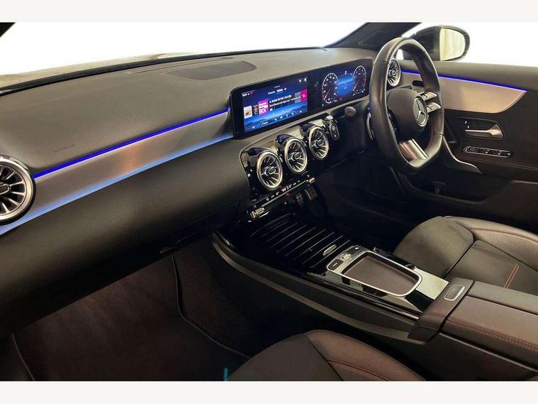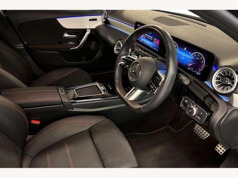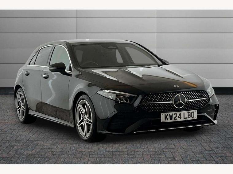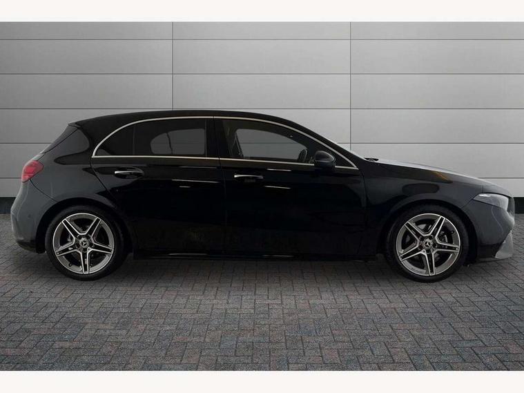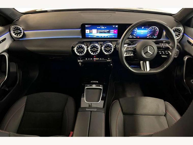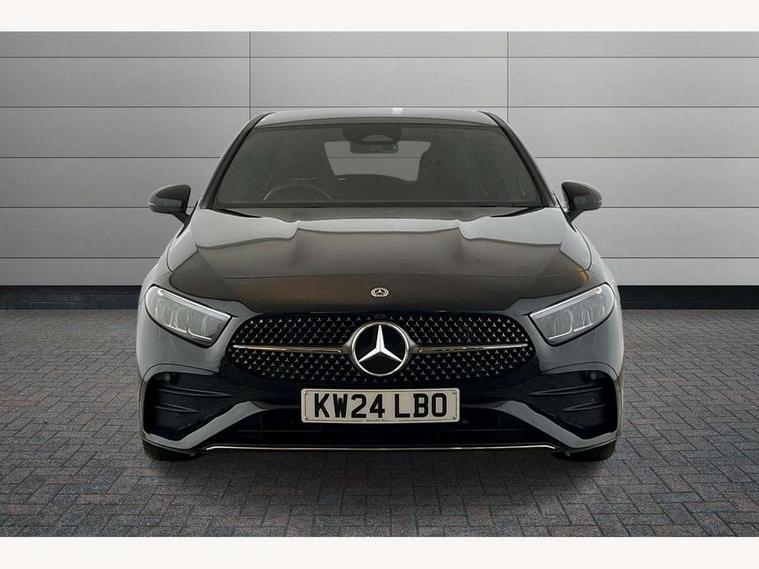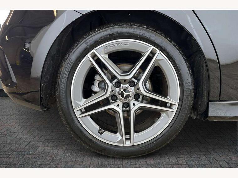 10.25 inch touchscreen central media display, 10.25" Digital instrument cluster display screen, Attention assist, Brake pad wear indicator warning light, Car wash mode, Cruise control + speed limiter, Direct steering, Direction indicators with lane change function, Dual bluetooth interfaces, DYNAMIC SELECT with a choice of driving modes (ECO, Comfort, Sport and Individual), Easy pack tailgate hands-free access, ECO start/stop function, Engine start/stop button, Fluid level warning indicator for fuel, oil, coolant and washer fluid, Fluorescent jacket for driver, Hard-disk navigation, Hey Mercedes Voice activation, Lamp failure indicator, Lane keeping system, Mercedes me connect including emergency call system, accident recovery, breakdown and maintenance management, Mercedes me remote services, Outside temperature gauge, Owners manual in English, Pre-installation of private car share, Preinstallation for Mercedes Benz link, Remote boot closing, Service indicator (ASSYST), Smartphone integration with Apple CarPlay and Android auto, Speed limit assist, Speed sensitive power steering, Tailgate, Trip computer in multifunction display with current consumption indicator, Wireless charging, Lowered comfort suspension, DAB Digital radio, MBUX multimedia system, Mercedes Benz sound system (100 W) with 6 speakers, 4 Electric Front and Rear windows, Adaptive brake lights, AMG body styling - AMG front apron with front splitter and AMG rear apron and visible exhaust tailpipe trim elements, Body colour bumpers, Body colour door handles with chrome inserts, Body colour side skirt, Body coloured door mirrors, Chrome beltline strips, Diamond radiator grille with pins in fine star pattern, Electric adjustable and heated door mirrors with integrated LED side indicators, Exhaust system with 2 visible tailpipe trim elements and rear apron, Headlamp assist automatic headlamp activation, Heat insulating dark tinted rear and rear side windows, Heated glass rear windscreen + timer control, LED High level third brake light, LED High Performance headlamps including integral LED daytime running lamps and adaptive highbeam assist, LED tail lamp, Privacy glass, Radio aerial, Rain sensing windscreen wipers with two sensitivity settings, Rear fog lights, Rear side wing doors, Rear windscreen wiper, Window line trim strip in chrome, 3 seat bench in 2nd row, 3 Spoke flat bottom leather multi function steering wheel with perforated leather in grip area, 4 way lumbar support, 40:20:40 split folding rear seats, Air conditioning - One zone THERMATIC automatic climate control with automatically controlled air distribution, AMG floor mats, Automatic child seat recognition sensor, Black air vents with surround in silver chrome, Black roof lining, Brushed stainless steel sports pedals with rubber studs, Front centre armrest with stowage, Front door sills with Mercedes Benz lettering, Front seat backs luggage nets, Galvanished gear shift paddles on steering wheel, Heated front seats, Height/reach adjustable steering column, Interior lighting - 64 colour Ambient lighting, Interior mirror with reading lamps in black and frameless, Rear armrest with 2 cupholders, Seat occupancy sensor for front passenger seat, Single front passenger seat, Sports seats with integrated headrests, Stowage compartment in centre console with retractable cover, Sunvisors with illuminated vanity mirrors, Twin front cupholders, Light and sight pack - A Class, Mirror package - A Class, Parking pack - A Class, Seat comfort pack - A Class, USB pack plus - A Class, 3 rear 3 point seatbelts, ABS with Brake Assist, Active bonnet, Active brake assist includes forward collision warning system with autonomous braking, Adaptive brake assist with hold function and hill start assist, Black seatbelts, Bonnet with power domes, Childproof locks manually operated for rear doors and electrically operated for rear power windows, Crash responsive emergency lighting, Driver and passenger head and side airbags, Drivers knee airbag, Dual stage driver/passenger airbags, Electronic parking brake, ESP curve dynamic assist, ESP with ASR, Front and rear seatbelt reminder, ISOFIX and top tether child seat fixing points in two outer rear seats, Tyre pressure monitoring system, Warning triangle and first aid kit, Window airbags, Alarm system/interior protection/immobiliser, Guard 360 degree vehicle protection, Keyless entry lock/unlock, Keyless Go, Remote central locking and crash sensor with emergency opening function, Light longitudinal grain aluminium trim, 18" AMG 5 twin spoke light alloy wheels, aerodynamically optimised, painted in termolite grey with high sheen finish, Summer tyres, Tirefit sealant kit,
