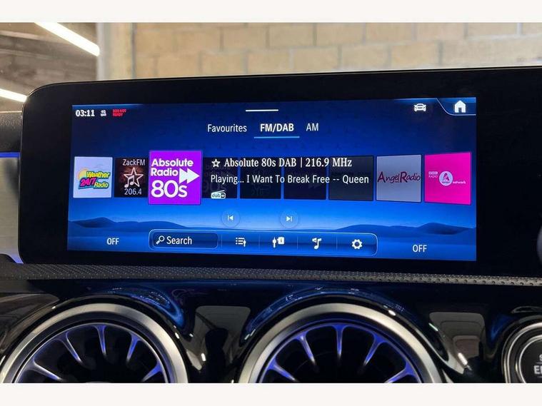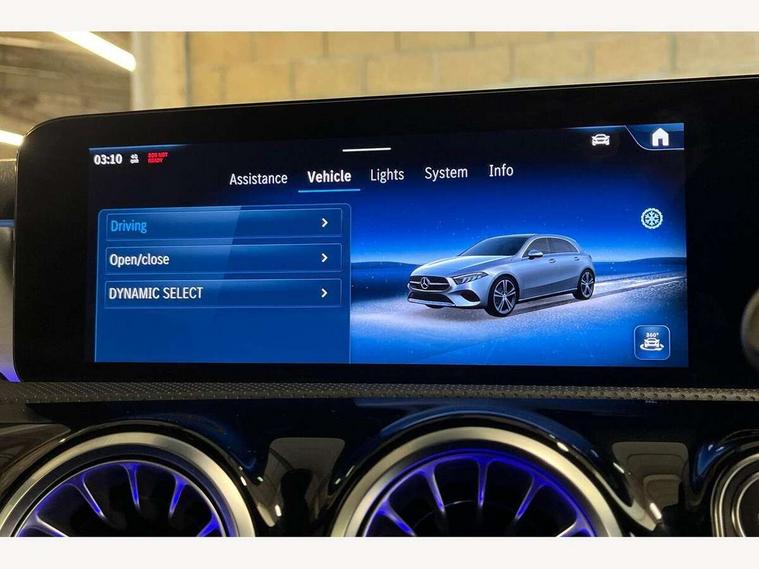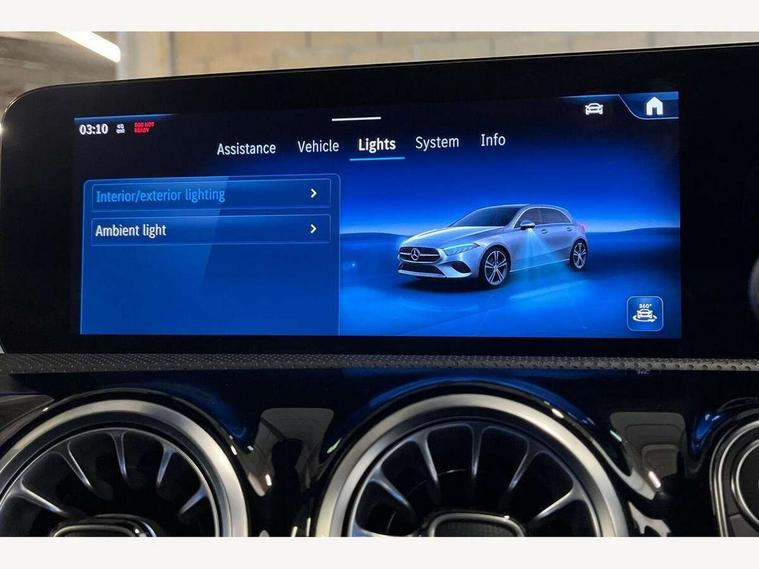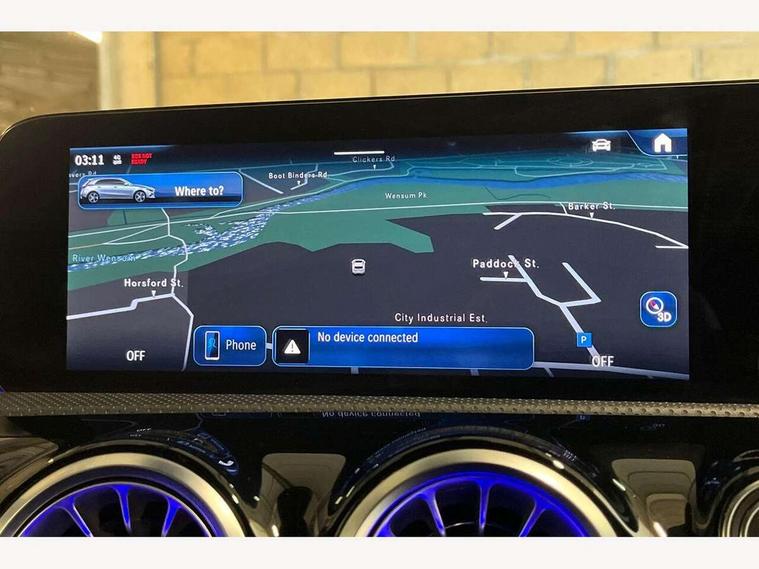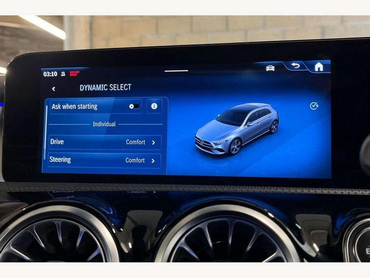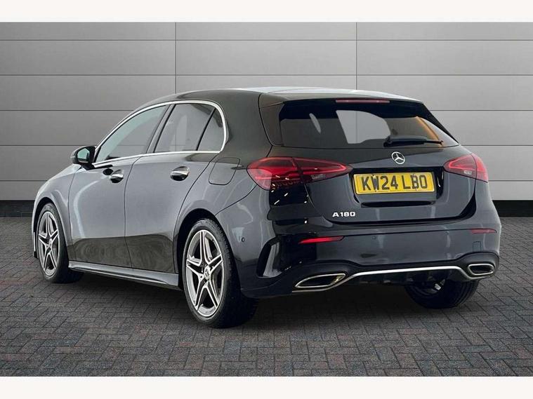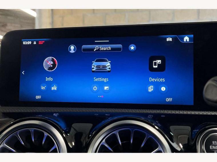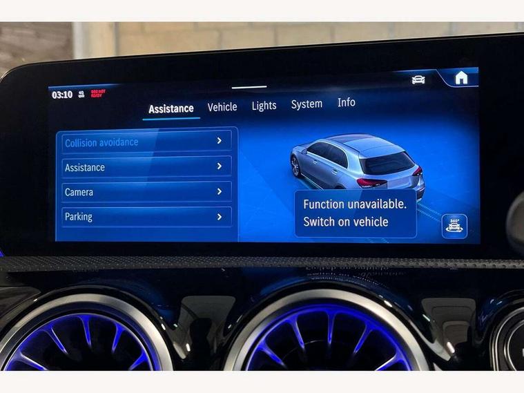 10.25 inch touchscreen central media display, 10.25" Digital instrument cluster display screen, Attention assist, Brake pad wear indicator warning light, Car wash mode, Cruise control + speed limiter, Direct steering, Direction indicators with lane change function, Dual bluetooth interfaces, DYNAMIC SELECT with a choice of driving modes (ECO, Comfort, Sport and Individual), Easy pack tailgate hands-free access, ECO start/stop function, Engine start/stop button, Fluid level warning indicator for fuel, oil, coolant and washer fluid, Fluorescent jacket for driver, Hard-disk navigation, Hey Mercedes Voice activation, Lamp failure indicator, Lane keeping system, Mercedes me connect including emergency call system, accident recovery, breakdown and maintenance management, Mercedes me remote services, Outside temperature gauge, Owners manual in English, Pre-installation of private car share, Preinstallation for Mercedes Benz link, Remote boot closing, Service indicator (ASSYST), Smartphone integration with Apple CarPlay and Android auto, Speed limit assist, Speed sensitive power steering, Tailgate, Trip computer in multifunction display with current consumption indicator, Wireless charging, Lowered comfort suspension, DAB Digital radio, MBUX multimedia system, Mercedes Benz sound system (100 W) with 6 speakers, 4 Electric Front and Rear windows, Adaptive brake lights, AMG body styling - AMG front apron with front splitter and AMG rear apron and visible exhaust tailpipe trim elements, Body colour bumpers, Body colour door handles with chrome inserts, Body colour side skirt, Body coloured door mirrors, Chrome beltline strips, Diamond radiator grille with pins in fine star pattern, Electric adjustable and heated door mirrors with integrated LED side indicators, Exhaust system with 2 visible tailpipe trim elements and rear apron, Headlamp assist automatic headlamp activation, Heat insulating dark tinted rear and rear side windows, Heated glass rear windscreen + timer control, LED High level third brake light, LED High Performance headlamps including integral LED daytime running lamps and adaptive highbeam assist, LED tail lamp, Privacy glass, Radio aerial, Rain sensing windscreen wipers with two sensitivity settings, Rear fog lights, Rear side wing doors, Rear windscreen wiper, Window line trim strip in chrome, 3 seat bench in 2nd row, 3 Spoke flat bottom leather multi function steering wheel with perforated leather in grip area, 4 way lumbar support, 40:20:40 split folding rear seats, Air conditioning - One zone THERMATIC automatic climate control with automatically controlled air distribution, AMG floor mats, Automatic child seat recognition sensor, Black air vents with surround in silver chrome, Black roof lining, Brushed stainless steel sports pedals with rubber studs, Front centre armrest with stowage, Front door sills with Mercedes Benz lettering, Front seat backs luggage nets, Galvanished gear shift paddles on steering wheel, Heated front seats, Height/reach adjustable steering column, Interior lighting - 64 colour Ambient lighting, Interior mirror with reading lamps in black and frameless, Rear armrest with 2 cupholders, Seat occupancy sensor for front passenger seat, Single front passenger seat, Sports seats with integrated headrests, Stowage compartment in centre console with retractable cover, Sunvisors with illuminated vanity mirrors, Twin front cupholders, Light and sight pack - A Class, Mirror package - A Class, Parking pack - A Class, Seat comfort pack - A Class, USB pack plus - A Class, 3 rear 3 point seatbelts, ABS with Brake Assist, Active bonnet, Active brake assist includes forward collision warning system with autonomous braking, Adaptive brake assist with hold function and hill start assist, Black seatbelts, Bonnet with power domes, Childproof locks manually operated for rear doors and electrically operated for rear power windows, Crash responsive emergency lighting, Driver and passenger head and side airbags, Drivers knee airbag, Dual stage driver/passenger airbags, Electronic parking brake, ESP curve dynamic assist, ESP with ASR, Front and rear seatbelt reminder, ISOFIX and top tether child seat fixing points in two outer rear seats, Tyre pressure monitoring system, Warning triangle and first aid kit, Window airbags, Alarm system/interior protection/immobiliser, Guard 360 degree vehicle protection, Keyless entry lock/unlock, Keyless Go, Remote central locking and crash sensor with emergency opening function, Light longitudinal grain aluminium trim, 18" AMG 5 twin spoke light alloy wheels, aerodynamically optimised, painted in termolite grey with high sheen finish, Summer tyres, Tirefit sealant kit,