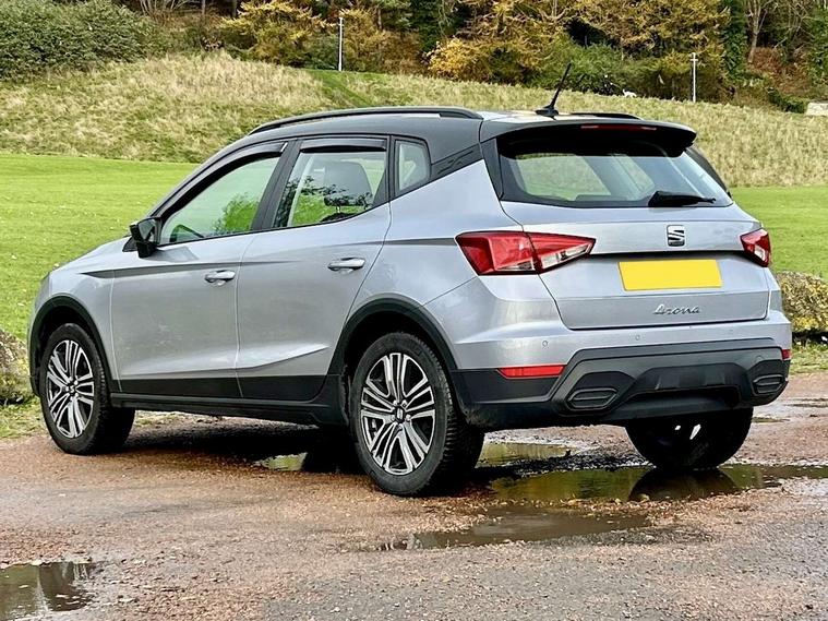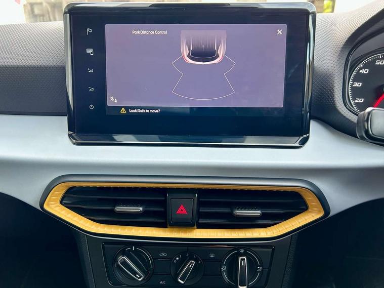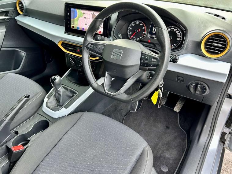 'Lights On' Reminder warning buzzer, Cruise control and speed limiter, Digital clock, E-call, Electric speed sensitive power steering, Full Link Smartphone Integration with Mirror Link, Apple Car Play, Google Android Auto with USB Type C cable for Apple and Android compatibility, Lane keeping system, Low fuel warning light, Outside temperature display, Rear parking sensor, RPM counter, Seat connect with safety, service, remote and online, Trip computer, Bluetooth interface for hands free and audio streaming, DAB digital radio and AM/FM radio, Steering wheel mounted audio controls, Anti theft roof antenna, Automatic activation of hazard warning lights, Black roof rails and window surrounds, Black window trims, Body coloured bumpers, Body coloured door handle inserts, Body coloured door mirrors, Dimming rear view mirror, ECO LED automatic headlights and LED daytime running lights, Electric adjustable door mirrors, Electric front/rear windows, Hidden exhaust pipe, Protective side mouldings, Rain sensing wipers, Rear side wing doors, Rear spoiler, Rear window wash/wipe, Third brake light, Visible VIN plate, Windshield wiper with intermittent control and potentiometer, 2 cupholders, 3 seat bench in 2nd row, 60/40 split folding rear seat, Air conditioning, Cloth upholstery, Double boot floor, Driver sunvisor with covered mirror + card holder, Dust/pollen filter, Flat bottomed leather steering wheel/gear knob/handbrake, Front courtesy light with front reading lights, Gear shift indicator, Grey interior roof, Height adjustable front seats, Height/reach adjustable steering column, Honey mustatd coloured air vent, Illuminated boot, Instrument lighting with brightness control, ISOFIX points in outer rear seats with top tether anchorage points, Passenger sunvisor with vanity mirror, Single front passenger seat, Two front and three rear height adjustable headrests, Connectivity pack plus - Arona, Interior chrome pack - Arona, 3 point seatbelts on all rear seats, ABS, Active front headrests, Child locks on rear doors, Driver and front passenger airbags with front passenger airbag de activation, front side and curtain airbags, Electronic stability control, Emergency Brake Assist (EBA) and front assist, Front and rear seatbelt reminder, Hill hold control, Multi-Collision braking, Tiredness recognition system, Traction control, Tyre pressure monitoring system, Electronic engine immobiliser, Locking wheel bolts, Remote central locking + deadlocks, Titan black dashboard, 17" Dynamic machined alloy wheels,