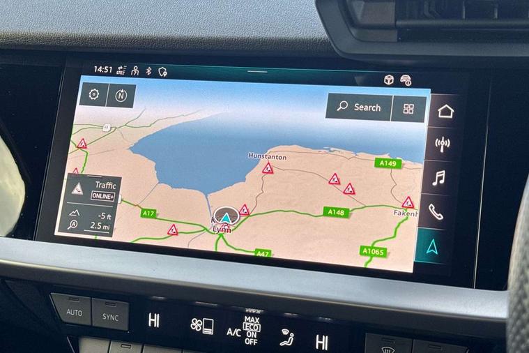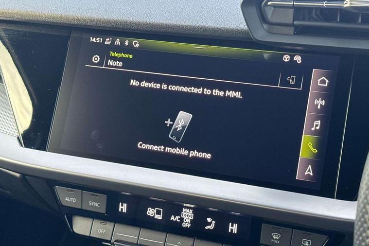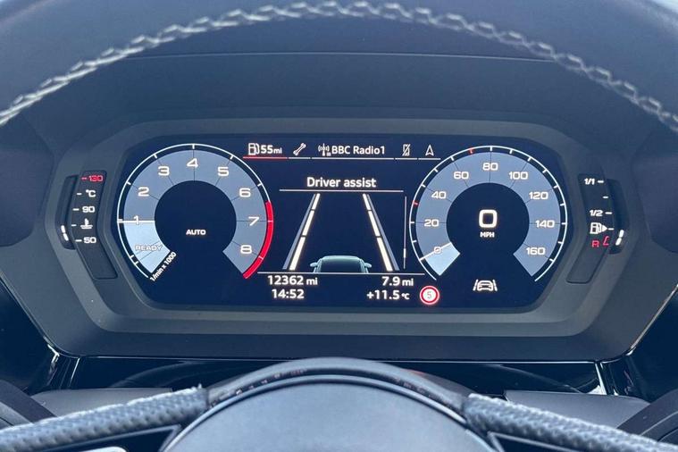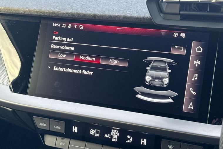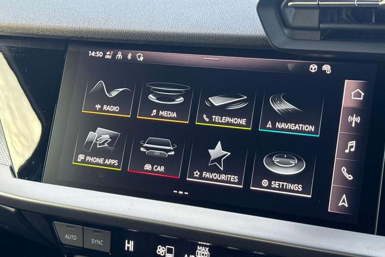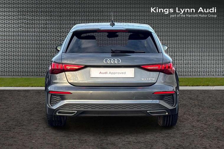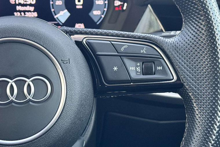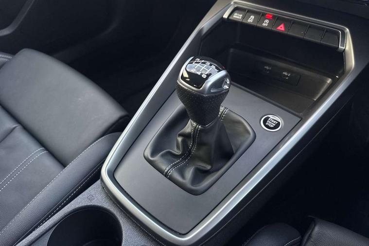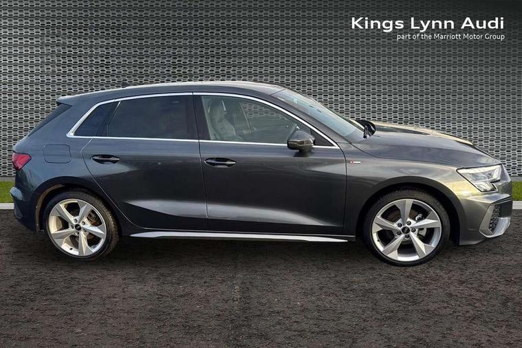 Audi drive select (Auto, Comfort, Dynamic and Individual), Audi smartphone interface, Audi Virtual Cockpit - 10.25" digital and colour instrument cluster, Automatic start/stop system with recuperation, Bluetooth interface, Camera based traffic sign recognition, Collision avoidance assistant, Cruise control, e-Call (emergency call), Electromechanical power speed sensitive steering, Lane departure warning system, MMI Navigation Plus with high resolution 10.1" colour touch screen display, Rear parking sensors, Service indicator, Trip computer, Voice control system with natural language interaction, Sports suspension, 2xUSB-C connection with data and charging functions, 6 passive loudspeakers, DAB Digital radio, 3rd brake light, Acoustic glass windscreen, Aluminium window trim, Auto dimming frameless rear view mirror, Body colour exterior mirrors, Electrically adjustable/heated/folding/auto dimming door mirrors with integrated LED indications + kerb view function for passenger side, Front electric windows, Illuminated door sills with aluminium inserts at the front with S logo, LED daytime running lights, LED headlights with LED rear lights and dynamic rear indicators, Light and rain sensors, Privacy glass - dark tinted rear window, rear door and side windows, Rear electric windows, Rear side air outlets in grained matt black, Rear side wing doors, Rear wiper, S line bumpers, S roof spoiler, 12V socket and storage compartment in front centre console, 3 seat bench in 2nd row, 3 spoke leather multifunction steering wheel, 4 way electrically adjustable lumbar support for driver and front passenger, 60/40 split folding rear seat bench, Black cloth headlining, Dual zone electronic climate control, Front and rear centre armrest in artificial leather, Front and rear headrests, Front/rear floor mats, Height and reach adjustable steering wheel, Interior lighting - glove compartment light and right hand side, Luggage compartment floor covering, Manual boot compartment lid, Manually adjustable front seats, Seat side bolsters, Single front passenger seat, Stainless steel pedals and front footrest in black, Twin leather upholstery with front sports seats S embossed logo, Aluminium interior elements pack - A3 Sportback, LED interior lighting pack - A3 Sportback, S line styling pack - A3 Sportback, 3x3 point rear seat belts, Driver and front passenger airbag with passenger airbag deactivation, Electronic Stabilisation Control (ESC) including ABS, ASR and EDL, First aid kit with warning triangle and 2 safety vests, Front side airbags with head airbags and interaction airbag, Pre-sense front with pedestrian and cyclist detection, Seatbelt monitoring, Tyre pressure loss indicator, Anti theft alarm, Anti-theft wheel bolts, Electronically operated child locks, Immobiliser, Remote control central locking, Dark spectrum aluminium inlays, accent surfaces in the dashboard and centre console in platinum grey silk effect paint finish,