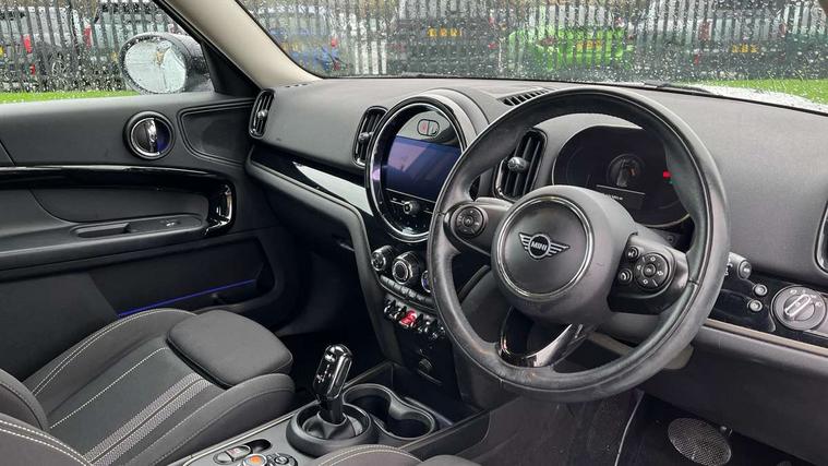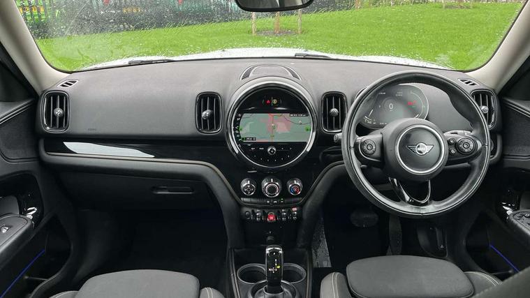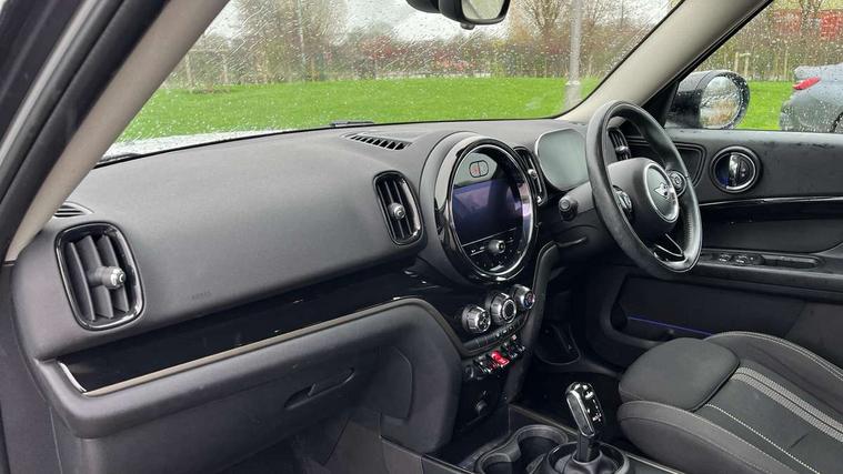 Active Guard incl speed limiting and lane departure functions with auto steering, and front collision warning with brake intervention, Automatic start/stop function with brake energy recuperation, Compatible mobile phone bluetooth with audio streaming, Electro-mechanical speed dependant steering assistance, Instrument cluster, MINI Driving Modes - centre toggle switch to control driving setting (sport, mid and green), Mini E-call, MINI TeleServices, On board computer, Rear parking distance control, Double Vanos system, Fully variable valve control, High precision injection, Performance Control, Steptronic transmission with double clutch, FM tuner and DAB digital radio, Bonnet scoop, Chrome border honeycomb structure radiator grille with S badge, Chrome fuel filler cap, Day time driving lights, Dynamic brake lights, Electric windows, Heated rear window, Heated windscreen washer jets, Metal door sill strips with Cooper S imprint, Model logo, Model logo on Tailgate, Rain sensor with auto headlights, Rear fog lights, Rear window wiper, Side scuttle panel with integrated indicator, Split rear doors, Sun/heat protection glass, Twin exhaust tailpipe, White indicator lenses, 12V Accessory socket in centre console, 360L luggage compartment capacity, 4 lashing eyes in luggage compartment, 40:20:40 split folding rear seats, Chrome interior highlights, Colour line - Carbon black, Cupholders, English handbook, Front headrests, Glove compartment, Headliner with grab handles and clothes hooks, Height and length steering column adjustment, Interior lighting with 12 basic colours selectable via toggle switch in roof, Isofix rear child seat preparation, Leather gearshift lever and handbrake gaiters, LED reading lights, vanity mirror lights, front foot well light and spotlight on front seats, Manual air conditioning, Mechanical seat adjustment, driver seat height adjust, forward/back and front seats backrest, Multifunction steering wheel, Passenger seat height adjuster, Rear headrests, Storage compartments in doors, Sunvisors with vanity mirrors, Tool kit, Excitement pack - Countryman, Navigation pack - Countryman, 2 tone horn, 3 point seatbelts on all seats, 6 Airbags - front, side, head and seat belt tensioners, Anti-lock braking system (ABS), DSC - Dynamic Stability Control, Electronic handbrake, Front and rear disc brakes, Hill start assist, Tyre pressure monitoring system, Alarm system with tilt sensor, monitoring doors, bonnet interior and tailgate, Auto drive away locking, Deadlocking function, Electronic vehicle immobiliser, Locking wheel bolts, Start/stop toggle with keyless go,