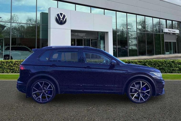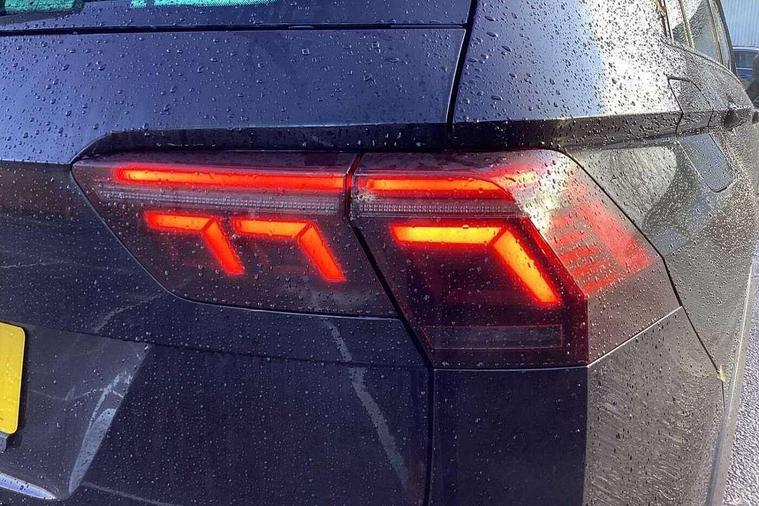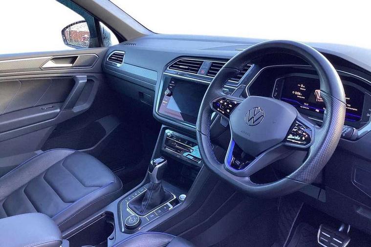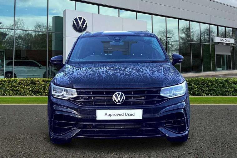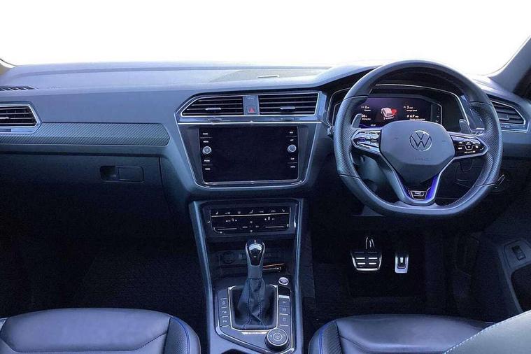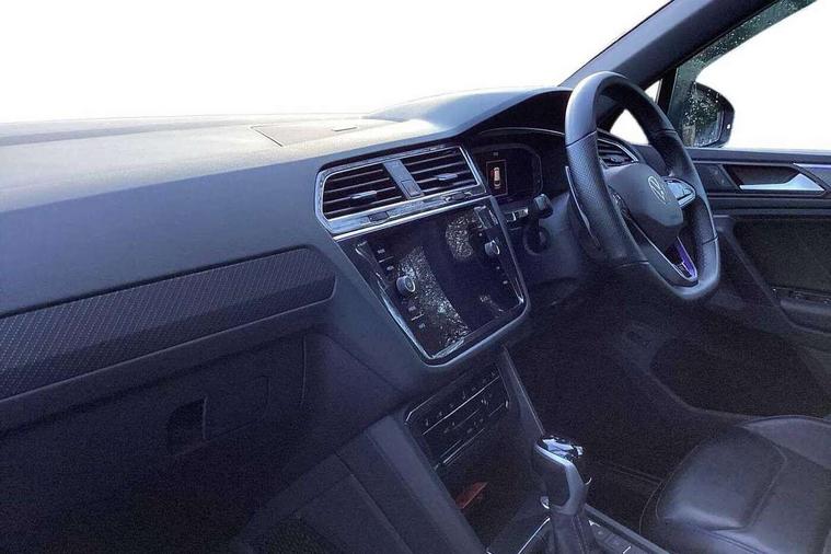 Adaptive cruise control ACC stop and go including speed limiter, App-Connect incl. App-Connect Wireless for Apple CarPlay and Android Auto, Bluetooth phone integration system, Distance control assist, Driver alert system, Driver profile selection, Dynamic road sign display, eCall emergency call system, Electromechanical speed sensitive power steering, Engine start/stop button, Instrument cluster mph speedometer Great Britain, Lane keeping system Lane Assist, Lights on warning, Motorised electric tailgate operated via key fob, drivers door and foot movement under tailgate, Multifunction front facing camera, Outside temperature display, Premium multifunction display with multi colour display, Rev counter, Revision / skills operating concept travel assistant, Service interval indicator, Speed limit display, Start/stop system with regenerative braking, Tailgate/trunk lid unlocking from outside, Trip computer, Warning sound and light for doors and tailgate open, ACC - Adaptive chassis contol with adaptive dampers, All wheel drive - 4Motion, Battery regeneration during braking, XDS electronic differential lock for improved traction and handling, 4 X 20 watt output, 8 Speakers, Diversity antenna for FM reception, SD card slot, Simultaneous pairing of 2 compatible mobile devices, SMS functionality - read, compose and send SMS messages using touch-screen display, Title and cover art display, USB C ports, Auto dimming interior rear view mirror, Automatic headlight control system, Body colour door handles, Body coloured door mirrors with integrated indicators, Chrome matt mirror covers, Chrome moldings on the side windows, Coming/leaving home lighting function, Dynamic headlight range control, Front and rear electric windows, Front illuminated door sills with R logo, Heated rear window, High level 3rd brake light, IQ light-Adv high beam, Dynamic light assist for LED matrix headlamp+LED separate DRL+DCL, dark red rear LED tech, Poor weather light+ cornering light, Laminated safety glass windshield, heat and sound insulating, LED rear number plate lights, License plate carrier in front and rear, Poor weather light and cornering light, Privacy glass for rear side windows and rear window, R-Logo light projection, R-Logo on radiator grille with side panels and rear, R-specific diffuser, painted black with cut out for trailer hitch, R-Specific front and rear bumpers, Rain sensor windscreen wipers, Rear fog lamp, Rear side wing doors, Rear spoiler in R style, Rear windscreen washer and wiper with interval delay, Side and rear windows in heat insulating glass, Silver anodised roof rails, Trailer Stability Programme, Windscreen wipers/ intermittent wipe + 4 position delay, 12V outlet in center console rear and in luggage compartment, 12V outlet in front and tray, 2 cup holders in front, 2 LED front reading lights, 2 LED rear reading lights, 3 bench rear seats in 2nd row, 3 rear headrests, 4 load lashing points, 40:20:40 split folding rear seats, Air Care Climatronic 3 zone automatic climate control with enhanced air filter and controls in the rear, Backrest release for left front seat, Black headlining, Climate control unit rear with touch function, Door and side trim panel in foam film, insert in leatherette, Floor mats with R-Logo and stitching, Front centre armrest, Front footwell illumination, Front seats head restraints (x-adjustment), Height adjustable front seats, Height/reach adjust steering wheel, Instrument lighting white adjustable panel illumination, Interior light with delay, Isofix Preparation 2 Rear child seats, Leather gear knob, Lighting door sill trim at front with R Logo, Lockable cooled glovebox, Luggage compartment lighting, Luggage net, Pedals and footrest in stainless steel, R Specific key caps, R-specific sport skin with R Logo in active Info dsiplay, R-taster (direct selection of race mode/ flap control), Rear bench seat asymetrically split folding, longitudinally movable and folding with load-through hatch and center armrest, Remote unlocking for rear seat backrest, Removable luggage cover, Removable rear headrests, Safety optimised front head restraints, Single front passenger seat, Sliding/reclining rear seats, Standard rear seat release, Storage compartment in driver's door, Storage compartment in passenger's door, Storage compartment in rear doors, Storage compartments in luggage area left and right, Storage tray on dashboard, Sun visors with illuminated vanity mirrors, Top sports seats integrated headrest, blue R-Logo in front seats, seat centre panels and outer rear seats in fabric inner side bolster art Velors, Variable boot floor, height adjustable and removable, Easy open and close pack with safelock - Tiguan, 3 point seat belt for centre rear seats, 3 point seat belts with seat belt pretensioners for the outer rear seats, Active bonnet, Curtain airbags for front and rear passengers, Driver/Front Passenger airbags, Drivers knee airbag, Electronic parking brake with auto hold, Electronic Stability Control with driver steering recommendation, ABS, ASR, EDL, EDTC and trailer stabilization, Front assist with autonomous emergency braking (for Adaptive Cruise Control ACC up to 130 mph), Front disc brakes, Front passenger airbag deactivation, Front side airbags, Height adjustable front 3 point seatbelts + pretensioners, Hill hold control, Manual child proof rear door locks, Pedestrian monitoring system, Power assisted brakes, Proactive passenger protection system in combination with front assist, Rear disc brakes, Rigid safety cell with front and rear crumple zones, Two tone horn, Tyre pressure monitoring system, Warning sound and light for front seat belts if unfastened, Anti theft alarm system with interior monitoring, backup horn and towing protection, Anti theft wheel bolts, Central locking system with safelock radio remote control and 2 remote control folding keys, Electronic engine immobiliser, Tool kit, Tyre mobility kit Includes 12V compressor and tyre sealant,