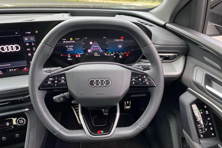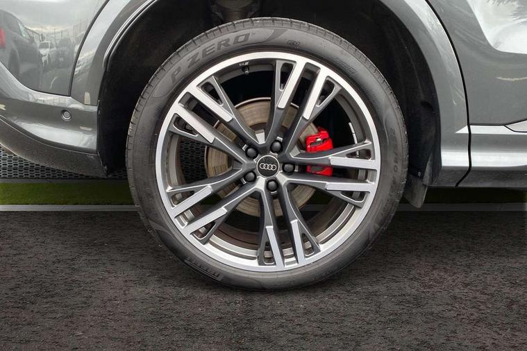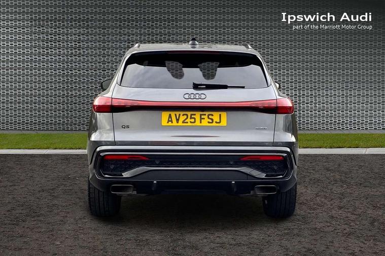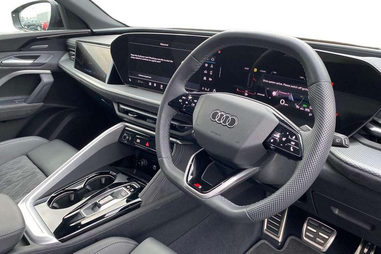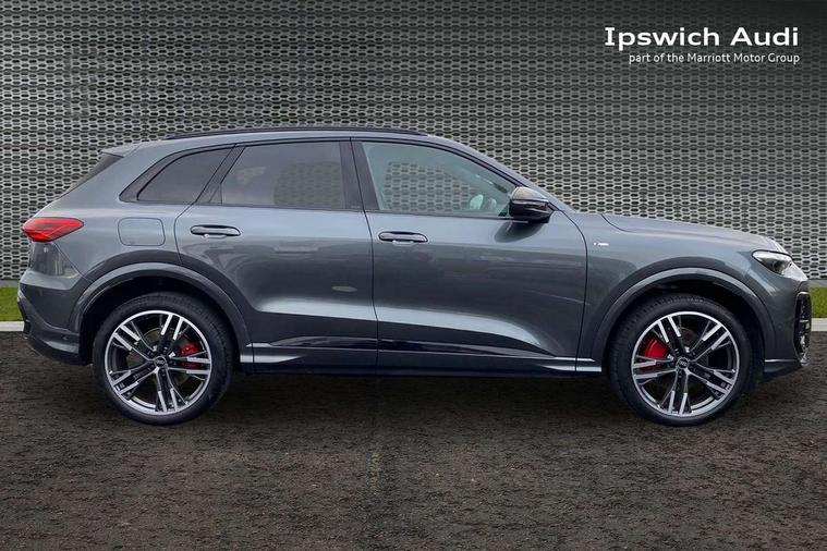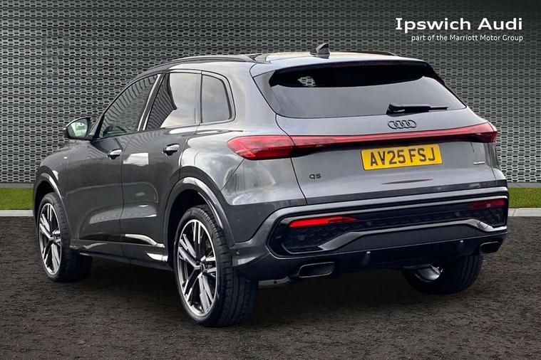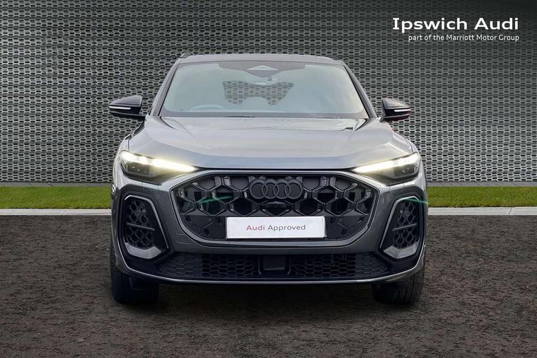 Adaptive cruise control, Advanced driver attention alert, Audi application store, Audi connect emergency call and service, Audi drive select, Audi smartphone interface, Audi virtual cockpit plus with 11.9" OLED colour display, Camera based traffic sign recognition, Fatigue monitor, Front cross traffic intersection assist, Lane change assistant with exit warning system, rear cross traffic alert and rear turn assist, Lane departure warning with emergency assist, MMI 10.9" front passenger touch display, MMI navigation plus with high resolution 14.5" OLED touchscreen colour display, Park assist plus, Parking system plus with 360 display, PAS, Reversing camera, Swerve assist and turn assist, Top view camera, Traffic sign based speed limiter, 2 USB-C ports in both the front and rear, Audi sound system impressive sound with 10 loudspeakers including centre speaker and subwoofer, 6-channel amplifier with a total output of 180 watts, DAB Digital radio, Smartphone compartment with wireless charging, Active digital light signatures - Six additional combinations of active daytime running light signature, Auto dimming rear view mirror, Black roof rails, Coming/leaving home lighting function, Electrically adjustable heated and folding + automatically dimming exterior mirrors, Exhaust tailpipes in dark chrome, Front and rear electric windows, Front door sill trims with aluminium inlays, illuminated with 'S' logo, Full body paint finish, Grill frame, inlay and front air inlets in matt anthracite chrome, Headlight cleaning system, Heated rear window, High beam assist, High gloss window surrounds, LED rear lights pro incl. dynamic rear indicators and illuminated light strip with animated coming and leaving home function, Logo projection light in exterior mirrors, Matrix LED headlights, Memory function for door mirrors, Privacy glass, Projection third brake light for rear window in LED, Radiator grille in phantom black, Rear and side windows with heat insulating glass, Rear honeycombe grille in matt black with inlay in matt anthracite chrome, Rear side wing doors, Rear wash/wipe, S Line badge on the front wings, Towbar preparation, Windscreen with acoustic glazing, 3 rear head restraints, 3 seat bench in 2nd row, 3 spoke leather steering wheel with multi-function buttons with touch control, flattened on top and bottom, with S badging and contrast stitching, 4 way electric lumbar support for driver and front passenger, 40:20:40 split folding rear seat bench with centre armrest and cup holders, Comfort centre armrest, Deluxe 3 zone electronic climate control, Dinamica microfiber/leather upholstery, Electrically adjustable front seats with memory function for driver's side, Front and rear floor mats, Front sport seats with integrated head restraints, Headlining in black cloth, Heated front seats, i-Size child seat mounting on the front passenger side and outer rear seats, i-Size and top tether on the outer rear seats, Interior trim in aluminium look, Luggage compartment lid, electrically opening and closing, Manual steering column adjustment, Single front passenger seat, Softwrap in Dinamica, Stainless steel pedals and footrest, Steering wheel grips in perforated leather and shift paddles, Ambient lighting package plus - Q5, Black styling package plus - Q5, Storage and luggage compartment pack - Q5, 3x3 point rear seatbelts, ABS, Acoustic vehicle alerting system, Convenience key with safelock, Driver and front passenger airbag with passenger airbag deactivation, Electric child safety locks, First aid kit with warning triangle and high visibility vests, Front emergency brake assist, Front side airbags with head airbag system and front interaction airbag, Hill hold assist, Occupant detection in rear seat area, Proactive passenger protection system for front, sides and rear, Red brake calipers, Side airbags in front and rear with head airbag system and front interaction airbag, Tyre pressure loss indicator, Anti theft alarm, Anti-theft wheel bolts, Remote control key with SAFELOCK and keyless go, Accent surfaces and control buttons in gloss black, Black dashboard with contrast stitching, Steel grey seat stitching, Upper and lower interior elements in dinamica microfiber, Tyre repair kit,