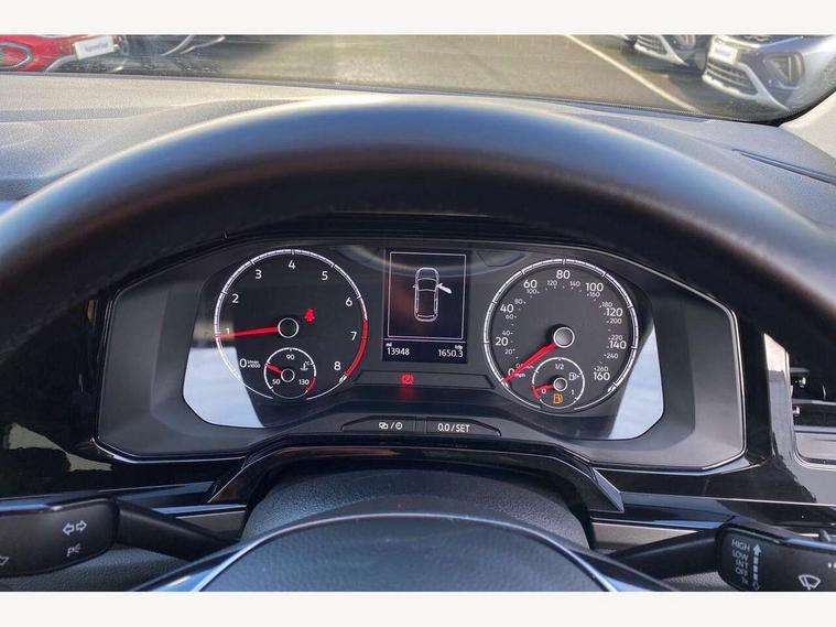 Digital clock, Driver alert system, Emergency call service, Multifunction computer plus, Power assisted speed sensitive steering, Speedo and rev counter, electronic odometer, trip, service interval display and fuel gauge, Start/stop system, Volkswagen connect, Warning buzzer and light for front seatbelts unfastened, Wireless app connect, Battery regeneration during braking, Galvanished body, Diversity antenna for FM reception, Front and rear 6 speakers, Black grille with chrome surround, Black radiator grille with chrome louvres, Body colour bumpers, Body colour door handles, Body colour rear spoiler, Body coloured side sills, Electric front windows, Electrically adjustable and heated door mirrors with reverse activated kerb view adjustment on passenger's side, Front windscreen washers and wipers with 4 speed intermittent delay, Heated rear window with auto timer, High level 3rd brake light, LED daytime running lights, LED rear number plate lights, Rear electric windows, Rear windscreen washer and wiper with interval delay, reverse activated, 2 bag hooks in luggage compartment, 2 front and 2 rear reading lights, 2 front cupholders and 12 V socket with cover, 3 rear head restraints, 4 grab handles, 60/40 split folding rear seat, Centre console storage with open storage compartment, Chrome interior door handles, Driver and front passenger seat height adjustment, Driver and front passenger sunvisors with illuminated vanity mirrors, Dust/pollen filter, Folding rear seat backrest, Front head restraints, Front seat backrest storage pockets, Gear lever gaiter in black trim surround, Glovebox, Handbrake grip button in chrome effect, Height/reach adjustable steering column, Instrument lighting, adjustable panel illumination, Interior light with delay, Isofix Preparation 2 Rear child seats, Leather gear knob and handbrake grip, Leather multifunction steering wheel, Luggage compartment cover, removable, Luggage compartment lighting, Luggage compartment with variable load floor, Storage compartment in front doors, Storage compartment in rear doors, Storage compartment under front seats, Sunglasses holder, 3 point height adj front seatbelts + pretensioners, 3x3 point rear seatbelts, ABS, Automatic post collision braking, Driver/front passenger airbag, Drivers and front passengers safety optimised head restraints, ESP with EDL + ASR, Front and rear passenger curtain airbags, Front disc brakes and rear drum brakes, Front passenger airbag deactivation, Front seat side impact airbags, HBA (Hydraulic Brake Assist), Hill hold control, Single tone horn, Tyre pressure monitoring system, Alarm with interior protection and deactivation via infotainment system, Electronic engine immobiliser, Remote central locking with 2 remote folding keys, Air vents in High gloss black, Limestone grey decorative inserts,