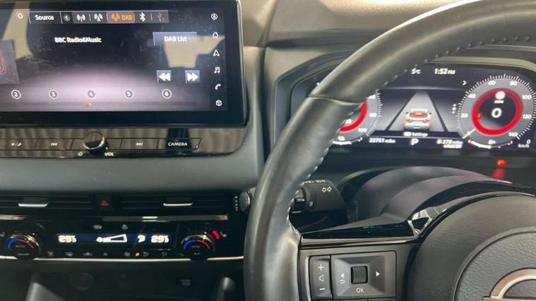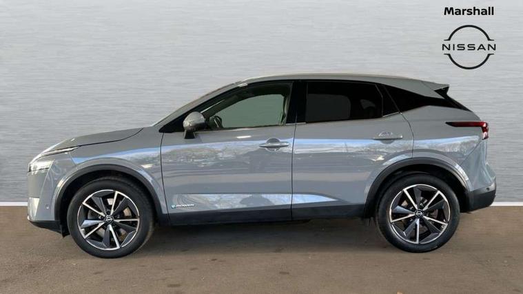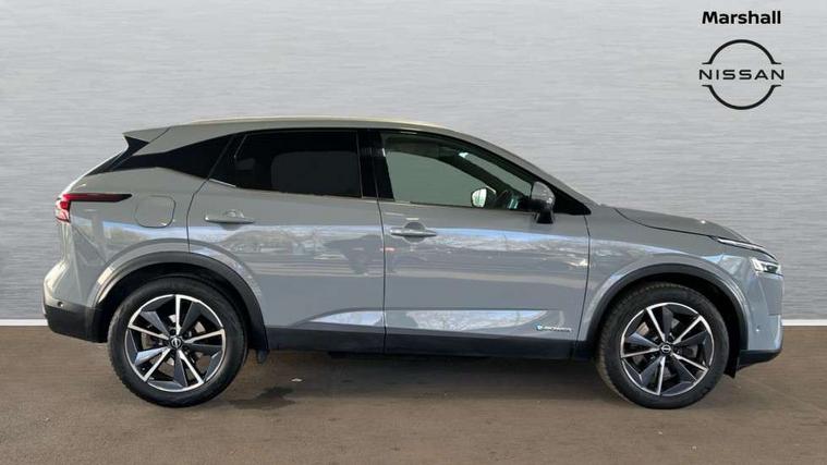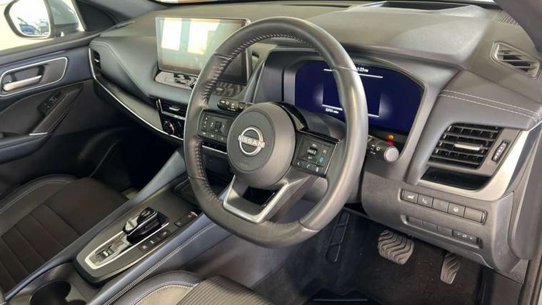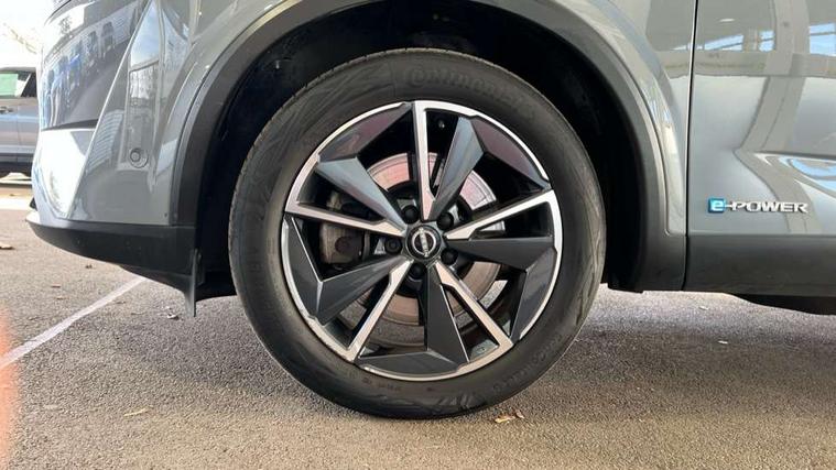 Advanced windscreen head up display, Android auto/Apple CarPlay (Wired), Blind spot warning, Drive modes (sport, normal, eco), Electric speed sensitive power steering, Emergency and breakdown call, Front and rear parking sensors, Full Digital 12.3" TFT Digital Combimeter, Google maps services - search, weather, 3D maps and Google street view, Hands free power tailgate, Idle stop/start system, Intelligent around view monitor, Intelligent Cruise control (ICC), Intelligent driver alert system, Intelligent forward collision warning, Intelligent lane intervention, Lane departure prevention, Lane departure warning system, Lane keep assist, Moving object detection, Nissan connect 12.3 inch touchscreen infotainment system, Nissan connect navigation, ProPILOT with Navi-Link, Push button starter, Rear cross traffic alert, Rear view camera, Remote control services - door locks, lights, horn and car locator, Telematics - notifications and connectivity services, TomTom live traffic services, Traffic sign recognition with legal speed adjustment, Trip computer, Virtual personal assistant and firmware over the air capability, Wireless apple carplay, Wireless charging pad, 6 speakers, AM/FM audio system with DAB, Bluetooth audio streaming, Front USB connections (Type-A and Type-C), Rear USB charging only ports (Type-A and Type-C), Auto dimming rear view mirror, Auto rear wiper when reversing, Automatic hazard signal with emergency stop signal, Body colour mirror caps, Body coloured door handles, Bodyside mouldings, Chrome side window finisher, Door handle with button, e-POWER badging, Electric auto folding door mirrors, Electrically adjustable and heated door mirrors with LED turn indicator, Follow me home headlights, Front and rear LED turning signals, Headlights auto levelling system, Intelligent auto headlights, LED daytime running lights, LED headlights with adaptive driving beam, LED rear lights, One touch front and rear electric windows with remote opening and closing, Partially body coloured bumpers, Privacy glass, Rear bumper with graphite insert, Rear reversing light (bulb lighting), Rear roof spoiler, Rear side wing doors, Rear styling plate, Shark fin antenna, Splash free rain sensing wipers, Super UV and infrared cut glass, Thermaclear heated windscreen, Three blink turn signal, 12v power socket in dashboard and luggage, 2x Rear coat hooks, 3 bench rear seats in 2nd row, 3 rear headrests, 4 folding assist grip, 6 Luggage hooks - 4 on floor, 2 on side, 60/40 split folding rear seat bench, Ambient lighting around centre console, Ambient lighting in front doors, Centre console storage tray, Chrome interior door handles, Cloth/syntech leather monoform upholstery, Dark black/blueish PVC wrapping, Dark headlining, Driver and front passenger sunvisors with illuminated vanity mirrors, Driver seat back pocket, Dual zone automatic climate control with pollen filter, e-POWER shifter, Electrically adjustable driver seat, Electrically adjustable lumbar support for driver, Front and rear door storage, Front centre console and armrest, Front cupholders x 2, Front door with bottle holders, Glovebox with light, Hard trunk cover, Heated front seats, Heated steering wheel, Height adjustable driver's seat, Height adjustable front headrests, Height adjustable passenger seat, Leather steering wheel, Luggage board system, Luggage space lighting, Manual lumbar support on passenger seat, Manually adjustable passenger (slide recline + lifter), Multifunction steering wheel, Passenger seat back pocket, Rear armrest with 2 cupholders, Rear door bottle holders, Single front passenger seat, Soft PVC kneepad, Steering wheel switches, Tilt/telescopic adjustable steering wheel, Two rear isofix child seat anchorage points with top tether, Welcome light and doors with console tray ambient lighting, Glass roof pack with roof rails - Qashqai, 3x3 point rear seatbelt pretensioners + load limiters, ABS with EBD and brake assist, Active brake limited slip, Auto hold function, Child locks on rear doors, Curtain and front side, far side airbags, Driver and passenger airbags, Driver, passenger and 2nd row rear seat belt reminder, Electronic parking brake, Front seatbelt pretensioners + load limiters, Height adjustable front seatbelts, Hill start assist, Intelligent blind spot intervention, Intelligent front emergency braking with pedestrian, cyclist recognition and junction assist, Intelligent rear automatic braking, Tyre pressure monitoring system, Vehicle dynamic control, Capless fuel filler, Engine immobiliser, Intelligent Key, Remote central door locking with deadlocking, Thatcham Cat.1 alarm, Interior instrumental panel C finisher, 19" Diamond cut alloy wheels, Tyre puncture repair kit,