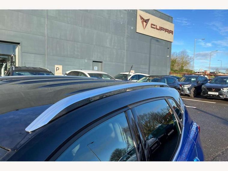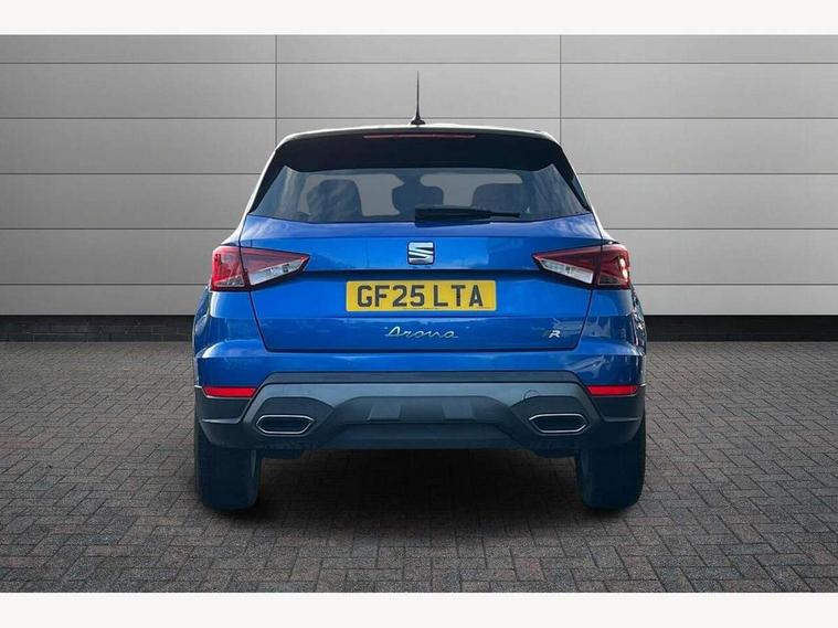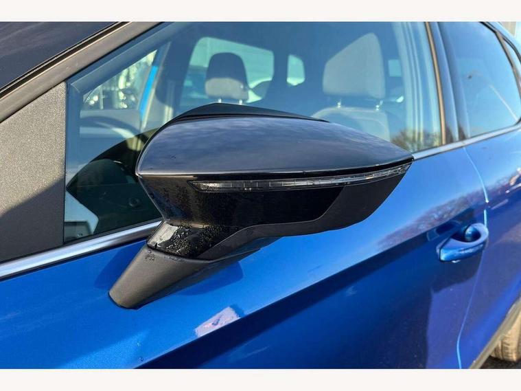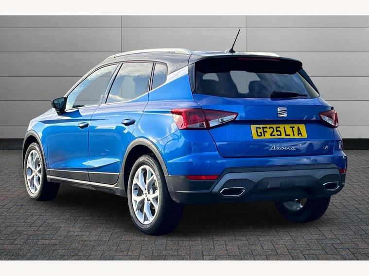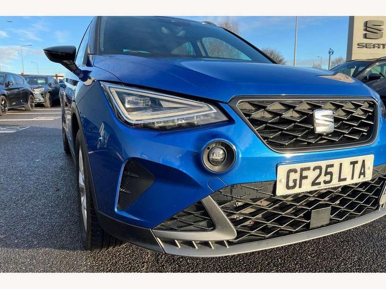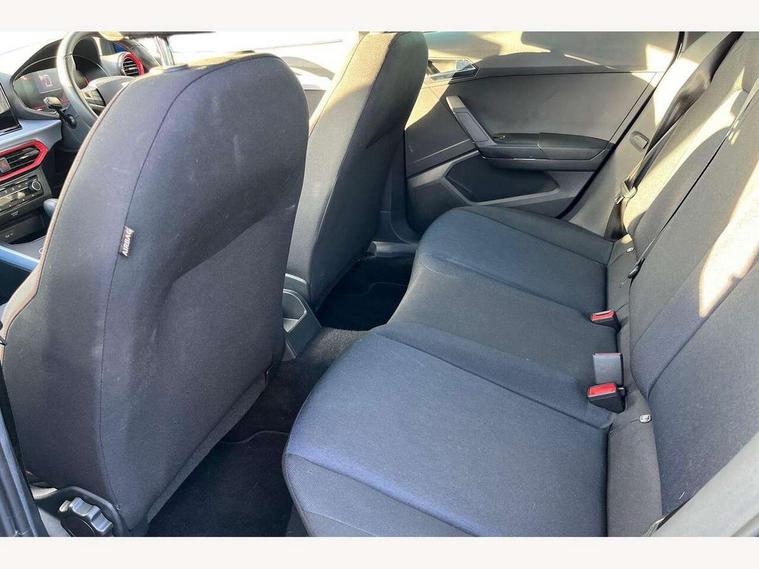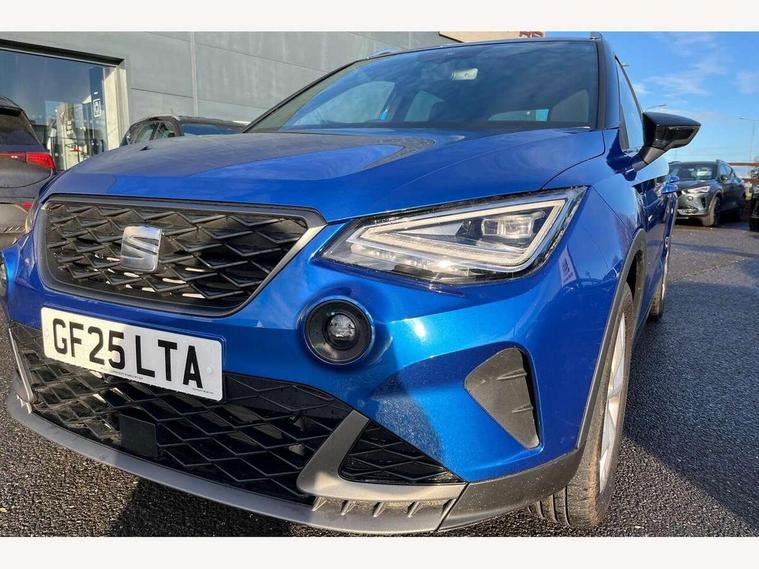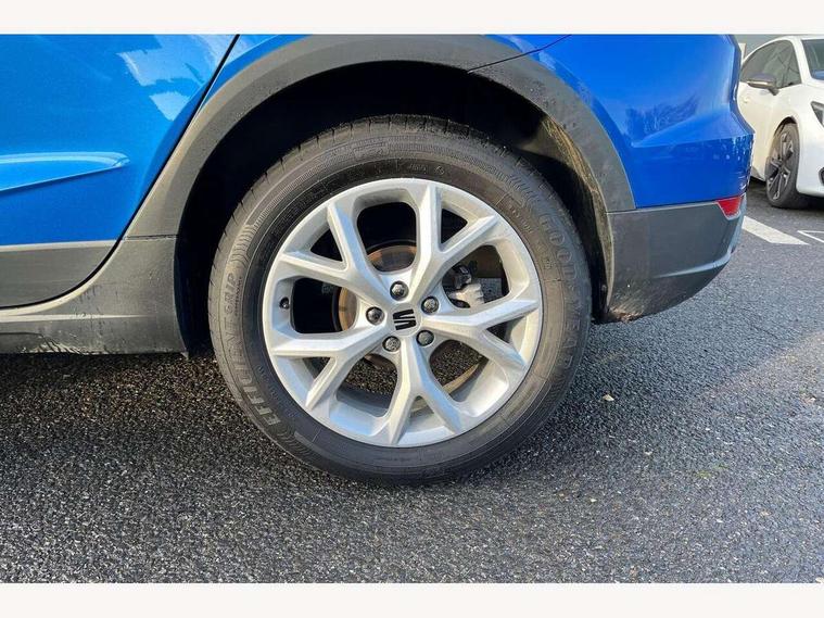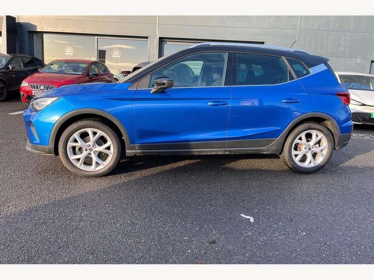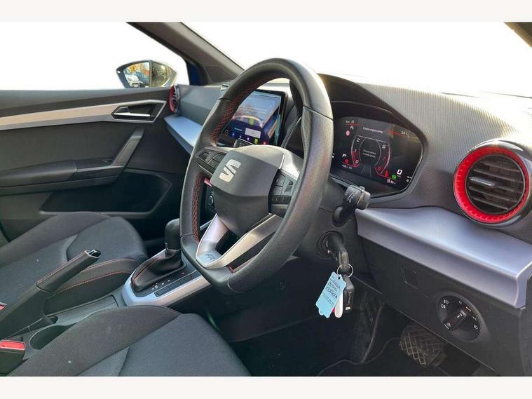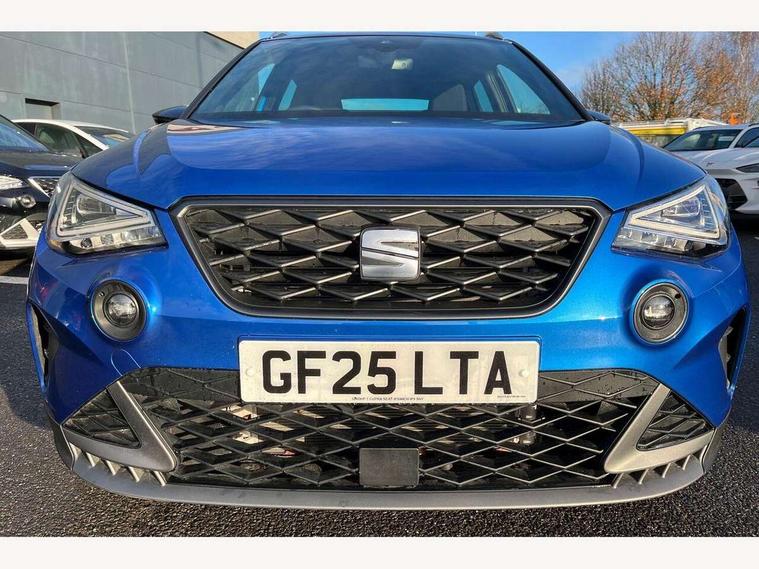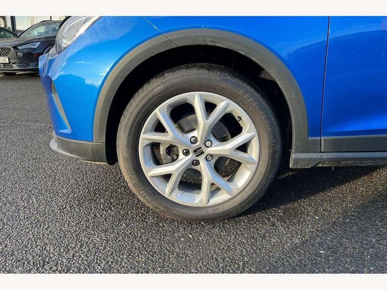 'Lights On' Reminder warning buzzer, 8" Digital cockpit, Digital clock, E-call, Electric speed sensitive power steering, Full link smartphone integration with mirror link, wireless apple carplay, Google android auto + USB Type C cable for apple and android devices, Lane keeping system, Low fuel warning light, Outside temperature display, RPM counter, SEAT Drive profile - Four different models normal-sport-eco-individual, steering response, throttle response and gear shifts mode, Trip computer, Wireless phone charger, 6 speakers, 9.2" colour touchscreen with navigation system, voice control and USB port (type c), Bluetooth interface for hands free and audio streaming, DAB digital radio and AM/FM radio, Steering wheel mounted audio controls, Anti theft roof antenna, Auto dimming interior rear view mirror, Automatic activation of hazard warning lights, Body coloured bumpers, Body coloured door handle inserts, Chrome roof rails and window surrounds, Dark tinted rear windows, Electric front/rear windows, Electrically adjustable, heated and folding door mirrors, Front fog lights with cornering function and rear fog light, FULL LED automatic headlights with dynamic headlight range control, coming and leaving home, LED daytime running lights, LED rear tail lights and licence plate lights, Protective side mouldings, Rain sensing wipers, Rear side wing doors, Rear spoiler, Rear window wash/wipe, Roof colour door mirrors, Third brake light, Twin exhaust pipe styling hidden exhaust pipe, Visible VIN plate, 2 cupholders, 3 seat bench in 2nd row, 60/40 split folding rear seat, Aircare filter, Black interior roof, Cloth upholstery, Double boot floor, Driver sunvisor with covered mirror + card holder, Dual zone climate control, Front courtesy light with front reading lights, Gear shift indicator, Height adjustable front seats, Height/reach adjustable steering column, Illuminated air vent surrounds, Illuminated boot, Instrument lighting with brightness control, Interior ambient lighting, Interior light in footwell, central console and door panel, ISOFIX points in outer rear seats with top tether anchorage points, Passenger sunvisor with vanity mirror, Perforated flat bottomed leather steering wheel/gear knob/handbrake with red stitching and FR logo, Potentiometer, Single front passenger seat, Steering wheel mounted gearshift paddles, Two front and three rear height adjustable headrests, Interior chrome pack - Arona, Safe and driving pack (S) - Arona, 3 point seatbelts on all rear seats, ABS, Active front headrests, Child locks on rear doors, Driver and front passenger airbags with front passenger airbag de activation, front side and curtain airbags, Emergency Brake Assist (EBA) and front assist, Front and rear seatbelt reminder, Hill hold control, Multi-Collision braking, Tiredness recognition system, Traction control, Tyre pressure monitoring system, Alarm with back up horn with tow away protection, Deadlock, Electronic engine immobiliser, Locking wheel bolts, Remote central locking, Titan black dashboard, 17" Dynamic alloy wheels,