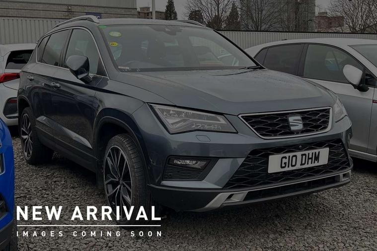 'Lights On' Reminder warning buzzer, Adaptive cruise control, Digital clock, Digital cockpit, Driver alert system, Electric tailgate with virtual pedal, Front assist city emergency braking and pedestrian protection, Full Link Smartphone Integration with Mirror Link, Apple Car Play, Google Android Auto, Low fuel warning light, Multi function display, Outside temperature gauge, Power assist steering, Rear view camera, Remote fuel flap release, RPM counter, Satellite navigation system, SEAT drive profile with driving experience button, SEAT logo boot release, Self parking functionality (includes front and rear parking sensors), Top view camera, Trip computer, Wash water level indicator, Comfort suspension, XDS electronic differential lock, SEAT USB media cable, Steering wheel mounted audio/phone controls, Aluminium front door sills, Armrest with air outlet in rear, Auto dimming rear view mirror, Auto headlights with automatic coming and leaving home function, Black wheel arch extensions, Body colour bumpers, Body colour door handles, Body colour door mirrors, Chrome front grille frame, Chrome roof rails, Chrome side window trim, Dark tinted rear windows, Door mirrors with welcome light silhouette, Electric adjustable/heated/folding door mirrors, Frameless interior mirror, Front and rear electric windows, Front grille in glossy black, Full LED headlights, Headlight washers, Heated windscreen, Illuminated aluminium front door sill with trim logo, LED daytime running lights, LED front fog lights, Rear fog lights, Rear LED tail lights, Rear wash/wipe, Twin chromed exhaust pipes, Visible dual exhaust pipes, 12V socket in front, 4 Lashing eyes in boot, 60/40 split folding rear seat, Adjustable front armrest with storage compartment, Ambient spot lighting and front footwell illumination, Black roof lining, Driver and passenger seats, height-adjustable, with lumbar adjustment and height-adjustable headrests, Driver and passenger sun visor, covered and illuminated mirror, driver sun visor with card holder, Dual zone climate control, Front and rear head restraints, Front courtesy lights, Front cupholders, Front reading lights, Front seat back storage pockets, Gear shift indicator, Heated front seats, Illuminated boot, Illuminated glovebox, Instrument lighting with brightness control, ISOFIX points in outer rear seats with top tether anchorage points, Leather steering wheel and gear knob, Leather upholstery with front sports seats, Multicoloured ambient lighting with LED interior illumination, Rear armrest and easy back seat release mechanism from boot, Rear reading lights, Steering wheel gearshift paddles, Storage box under drivers seat, Advanced Driving Assistance Pack - Ateca Xcellence, Convenience pack - Ateca, Navigation system pack - Ateca, Winter Pack - Ateca, 3x3 point rear seatbelts, ABS, Automatic post collision braking, Driver/Front Passenger airbags, Drivers knee airbag, Electronic parking brake with auto hold, Electronic stability control, ESP+EBA, Front and rear seatbelt reminder, Front passenger airbag deactivation, Front side airbags, Hill hold control, Tiredness recognition system, Traction control, Twin curtain airbags, Tyre pressure monitoring system, 2 folding remote keys with window open/close function, Immobiliser, Keyless entry and go and connectivity hub with wireless charger, Locking wheel bolts, Remote central locking, Volumetric alarm with back up horn, Chrome interior detailing, 19" Exclusive machined bi-colour alloy wheels,