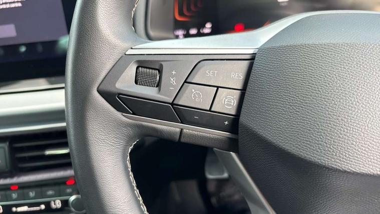 'Lights On' Reminder warning buzzer, 8" Digital cockpit, 9.2" touchscreen navigation system with type C USB socket, Voice control and DAB/AM/FM radio, Auto start and stop system, Bluetooth audio streaming with handsfree system, Digital clock, E-call, Full link smartphone integration with mirror link, wireless apple carplay, Google android auto + USB Type C cable for apple and android devices, Lane assist, Low fuel warning light, Outside temperature gauge, Power Steering, Rear parking sensor, Seat connect with safety, service, remote and online, SEAT logo boot release, Speed limiter, Trip computer, Comfort suspension, Auxiliary input socket, Radio/MP3 player, SD card slot, Steering wheel mounted controls, Anti theft roof antenna, Atom grey door mirrors, Auto dimming rear view mirror, Automatic rain sensing wipers, Body colour bumpers, Body colour door handles, Chrome window surround and upper grille surround, Dark tinted rear windows, Electric adjustable/heated/folding door mirrors, Electric front windows, Electric headlight adjustment, Electric rear windows, Front/rear fog lights, FULL LED automatic headlights with dynamic headlight range control, coming and leaving home, LED daytime running lights, LED tail lights, Rear side wing doors, Rear wiper, Third brake light, 3 seat bench in 2nd row, 60/40 split folding rear seat, Ambient interior lighting, Chrome detailing and black headlining, Comfort seats, Dual zone climate control with combination filter, Front centre armrest, Front courtesy lights, Front cupholders x 2, Front reading lights, Gear shift indicator, Glovebox, Height adjustable front and rear headrests (five), Height adjustable front seats, Height/reach adjust steering wheel, Illuminated air vent surrounds, Illuminated boot, Instrument lighting with brightness control, Isofix, Leather multifunction flat bottomed sports steering wheel, Microsuede cloth upholstery, Passenger sunvisor, Single front passenger seat, Storage pockets on back of front seats, Sunvisors with mirror and driver side card holder, 3 point seatbelts on all 3 rear seats, ABS, Active front headrests, Child locks on rear doors, Electronic stability control, Energy recovery system, Front assist forward collision warning and autonomous emergency braking, Front driver and passenger side airbags with curtain airbag and front passenger airbag deactivation, Hill hold control, Multi-Collision braking, Seat belt reminder for front and rear seats, Tiredness recognition system, Tyre pressure monitoring system, Electronic engine immobiliser, KESSY Keyless entry and go, Locking wheel bolts, Perimeter alarm and interior monitoring with backup horn and tow away protection, Remote central locking + deadlocks, 17" Dynamic machined alloy wheels in Nuclear grey,