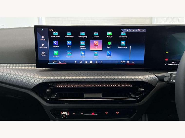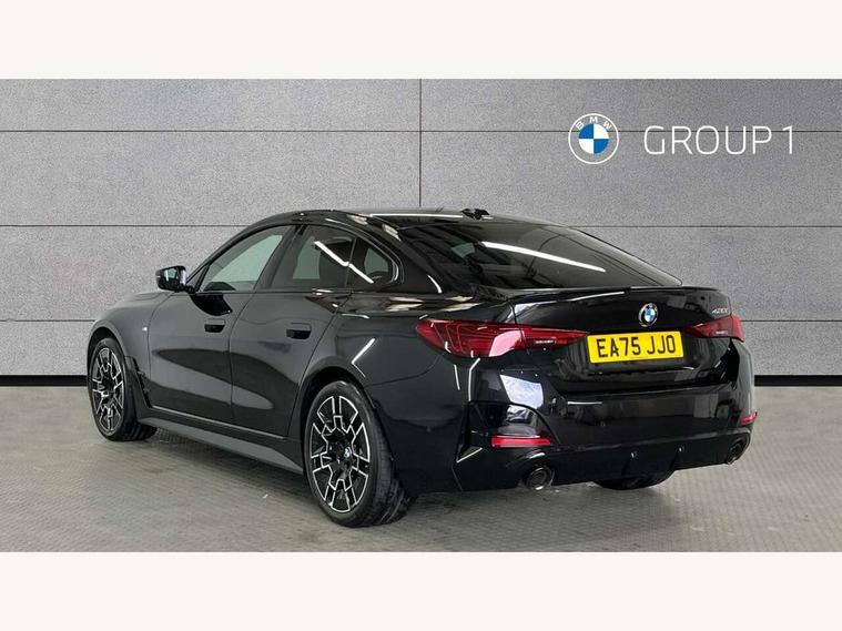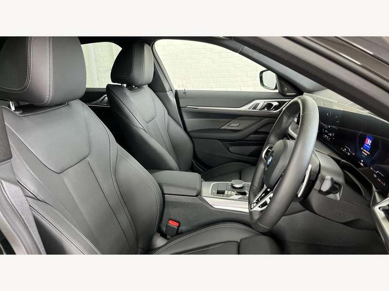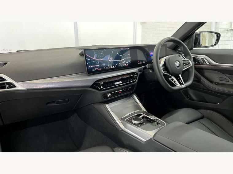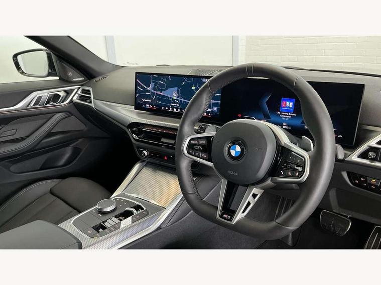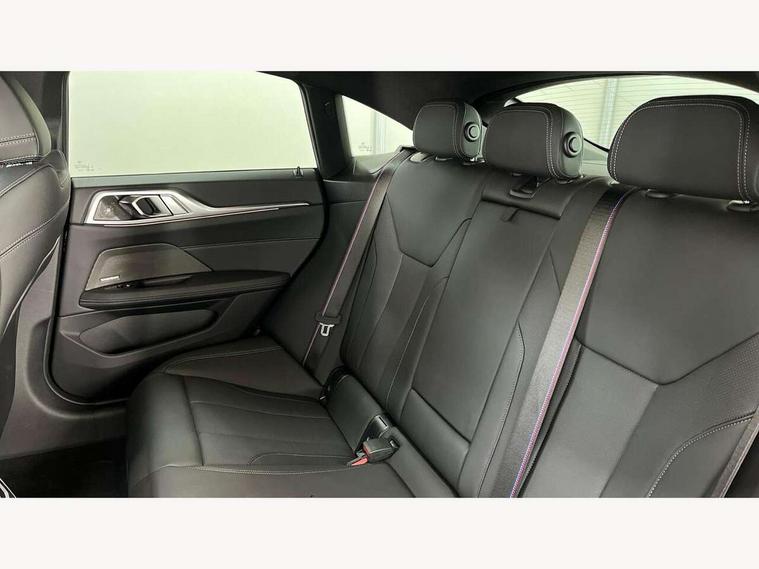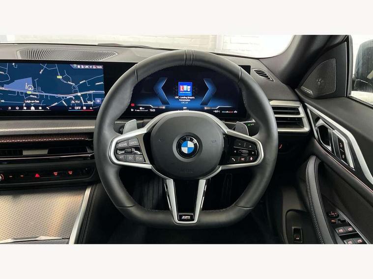 Active guard plus, Attentiveness assist, Automatic start/stop function, BMW ConnectedDrive online services, BMW iDrive controller on centre console, BMW service history, BMW Teleservices, Brake pad wear indicator in front and rear, Check Control warning system for monitoring of lights and door/luggage compartment open warning, Condition based service, Electric bootlid, Electric power steering with Servotronic steering optimised at all speed ranges, Instrument cluster with speedometer with mph readout, tachometer, fuel gauge and oil temperature gauge, Integrated owners handbook, Language version English, Oil sensor for level and grade, On board computer - average speed, fuel consumption, outside temp display with acoustic warning, clock/date, service interval, odometer/trip meter, Run flat indicator, Shifting point display, Start/stop button in black, Variable sport steering, 8 speed automatic steptronic transmission with gearshift paddles, Balanced 50/50 weight distribution, Double joint spring strut front axle, Drive experience mode switch - Comfort mode, ECO PRO mode and SPORT mode, Low centre of gravity, Petrol Particulate Filter, Stroke dependent dampers, DAB tuner, Personal eSim, Acoustic glazing, Automatic headlight beam throw control with load dependent regulating reaction, dynamic compensation of braking dive and acceleration squat, Automatic windscreen wipers and automatic headlight, BMW radiator grille with mesh grille, end face of the nuggets in aluminium matt and frame in chrome matt, Body colour fuel filler flap, Body colour roof fin, Bonnet and tailgate badge, Electric folding wing mirrors - Driver side electrochromic, auto anti dazzle function & front passenger side auto parking function without anti dazzle, Electric windows - front and rear, with open/close fingertip control, anti trap facility and comfort closing function all round, Follow me home headlights, Front and rear bumper system, Front apron plastic in body colour, Green tinted heat protection glazing, Illuminated bow type door handles in body colour drivers side with door lock, Interior rear view electrochromatic mirror with automatic anti dazzle function, LED 3rd brake light, LED daytime running lights, LED front fog lights, LED front indicators, Licence plate panel integrated into front bumper and tailgate, Low and high beam headlights in Bi-LED, M designation on front side panels, left and right, M Sport entry door sill strips, One piece front bumper cover including towing eye cover in body colour, Preparation for high beam assistant, Rear side wing doors, Rear wiper, Reversing light, Side frame trim strip black matt, Two part LED tailights in L-shape with components in smoked glass, brake light, LED turn indicator and rear fog light, Visible exhaust tailpipe finisher, Visible VIN plate, Welcome lights in interior and door handle area, Widened track and increased camber values for max transverse dynamics, agility and steering precision, Windscreen washer jets concealed underneath bonnet, 12V power socket in front centre console, 2 front cupholder in centre console with clamping elements and matt black inlay, 3 rear headrests, 3 seat bench in 2nd row, 3 spoke flat bottom M sport leather multifunction steering wheel, 3 zone automatic air conditioning, 4 pieces lashing eyelets in luggage compartment, 40:20:40 split folding rear seat, folding head restraint of centre seat and rear centre armrest with two cupholders, Anthracite headlining, Armrest integrated in front and rear door trim + front centre console armrest, Battery in luggage compartment, BMW ID, Extended storage - 2x Dual USB Type C 3A charging function in the rear centre console for the rear, Extended storage - Luggage compartment partition net on left side trim panel, Bag hook on both sides of the luggage compartment, Extended storage - Multifunction hook, Extended storage - Trailer tow hitch button in black (extendable trailer tow hitch) on the right hand side, Four grab handles integrated in roof lining, Front and rear door pockets, Front footwell lights, Heated driver and front passenger seats, Height adjustable front headrests, Illuminated armrest storage compartment, Illuminated glove compartment with separate small compartment, Interior light and front reading light, Luggage compartment light, Single front passenger seat, Steering column adjustment - Infinitely variable in height and length, Sunvisors with illuminated vanity mirrors and ticket pocket, Through load system, Toolkit located in luggage compartment, Velour front floor mats, Ambient lighting pack - 4 Series, BMW Live Cockpit Plus pack - 4 Series, Connected professional package - 4 Series, M High gloss shadowline exterior trim pack - 4 Series, M sport exterior styling pack - 4 Series, Park assist pack - 4 Series, 3 point seatbelts on all seats, BMW emergency call, Brake energy regeneration, Braking pre-tensioning, Child locks, Child seat ISOFIX attachment for the two outer rear seats, Crash sensor activating of airbags, Unlocking doors, hazard warning lights, interior light, safety battery terminal, Driver and front passenger side airbags, integrated in the door side seat backrest bolsters for all seat variants, Driver/Front Passenger airbags, Dry braking, Dynamic brake control, Dynamic stability control + (DSC+) - Anti-lock Braking System (ABS) with brake assist and cornering brake control + Automatic Stability Control (ASC), Dynamic Traction Control - DTC, Electric parking brake including automatic hold function and automatic release of the parking brake when driving off, Electronic differential lock control (EDLC), Front and rear ventilated brake disc, Front passenger manual airbag deactivation, Head airbags for all 4 outer seats, Hill start assistant, Seat belt security check for driver and front passenger, Seat belt with belt stopper, pyrotechnic belt tensioners and belt force limiters, Seat occupancy detection for driver and passenger side, Side impact protection, Tyre pressure 