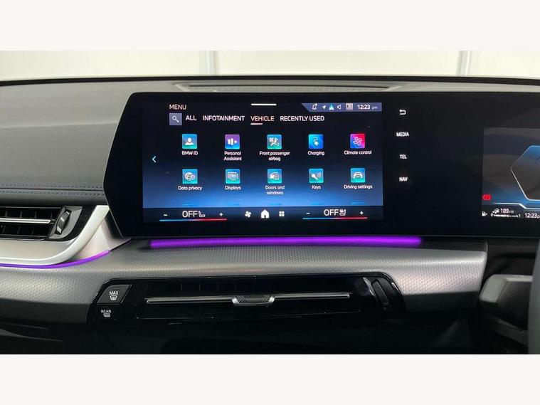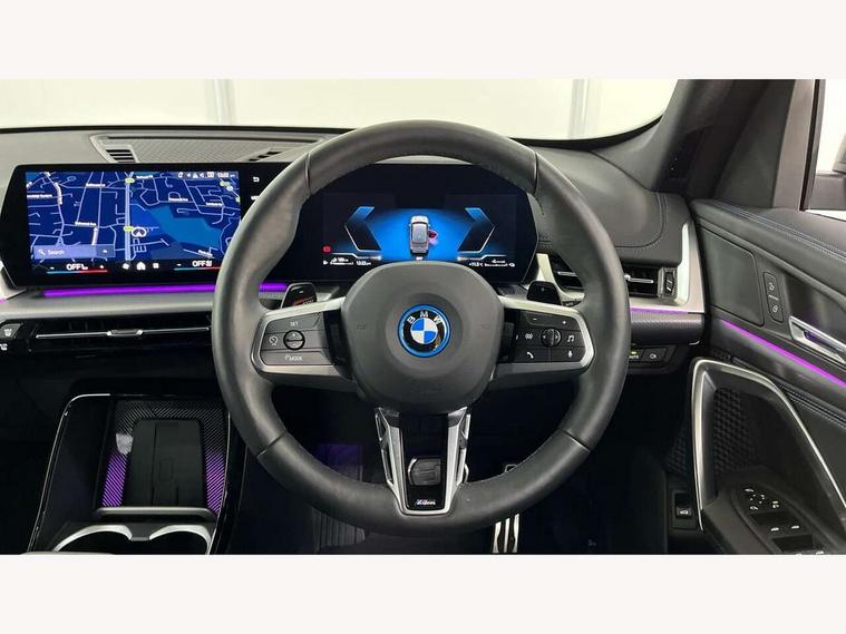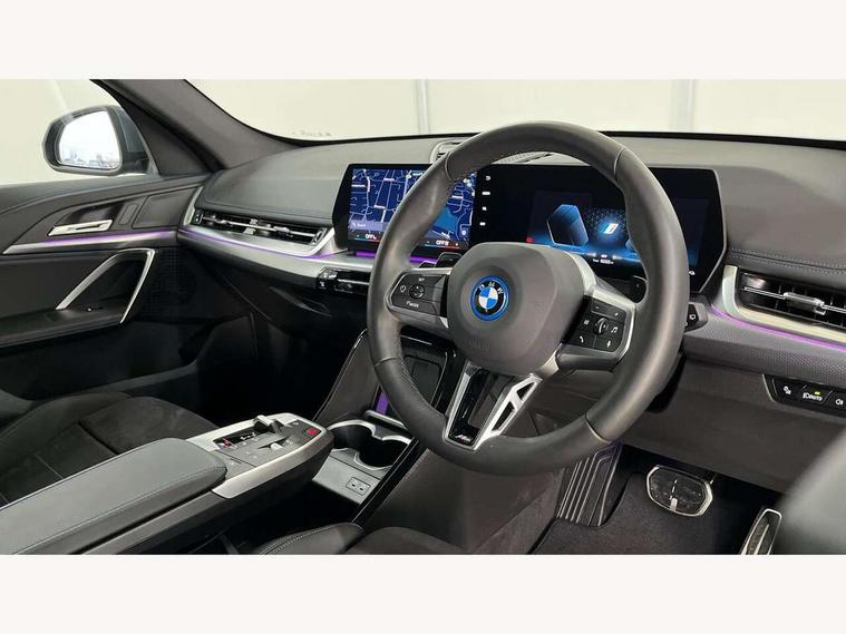 Attentiveness assist, Automatic start/stop function, BMW Live Cockpit Plus with 10.25" instrument cluster and 10.7" display, BMW Operating system 9 with BMW Maps, real-time traffic information, in-car experiences, remote services and smartphone integration, BMW Teleservices, Brake pad wear indicator, Condition based service, Connected eDrive Services, Drive off assistant, Electrically opening/closing tailgate with opening/closing with remote control and contactless opening and closing, iDrive controller, Language version English, My Modes, Parking Assistant with Reversing Assistant, active PDC, Lateral Parking Aid, Rear View Camera and Park Distance Control, Personal Profile - automatic lock when driving away selectable, Servotronic PAS, Tyre puncture warning system, Widescreen display, 11 kW AC charging power, eDrive exterior sound, EU6 emissions management, Fast charging cable professional mode 3 for public charging, M Adaptive suspension, Performance Control, Petrol Particulate Filter, Steptronic transmission with double clutch and gear shift paddles, xDrive intelligent four wheel drive system, BMW Personal eSim, DAB Digital radio, Badge on engine compartment lid and tailgate, Body colour door mirrors, Dynamic brake lights, Electric adjustable heated door mirrors, Electric windows - front and rear, with open/close fingertip control, anti-trap facility and comfort closing, Folding door handles integrated flush with surface, Follow me home headlights, Front and rear bumper panel with M specific design, in body colour with inserts in black high gloss, Front door exit lights, Heated rear window, High gloss shadowline, Invisible exhaust tailpipe, Key with M identification, LED 3rd brake light integrated in rear spoiler, LED daytime running lights, LED number plate light, M identification on the sides, M roof rails high gloss shadow line, M specific radiator grille in satinated aluminium, Matt black roof strips, Model inscription on right tailgate, Rain sensor including auto headlights activation, Rear side wing doors, Rear wiper, Sill cover in body colour, Trailer stabilisation logic, Windscreen washer nozzle for rear view camera, Windscreen wipers front with heated washer nozzles, 12V - Power sockets with front centre console and luggage compartment, 2 bag hooks in luggage compartment, 2 cup holders in front, 2 x USB Type C ports for charging in front centre console + 1 x USB Type C ports for charging in rear centre console, 3 rear headrests, 3 seat bench in 2nd row, 3 upper retaining strap clips integrated into rear panels of seat backrests, 4 grab handles, 40:20:40 split folding rear seats, Ambient interior lighting, Anthracite headlining, Anthracite Velour front and rear floormats, Bottle trays in all doors, Child seat ISOFIX attachment for two outer rear seats and front passenger seat with anchorage points, Clothes hook rear, Driver and front passenger heated seats, Dual zone automatic air conditioning, Front and rear door pockets, Front and rear footwell lighting, Front centre console storage compartment, Front/rear adjustable head restraints, Glove compartment, Interior door handle recess light on all doors, Light on right in luggage compartment, M sport leather steering wheel, Manual steering column height and depth adjustment, Middle centre console storage compartment, One piece parcel shelf opens together with tailgate and removable, Rear armrest in door trim panel, Single front passenger seat, Sport leather multifunction steering wheel with thumbrests and operation of instrument display, audio, telephone and driver assistance, Storage compartment net in left side trim panel, Storage compartment with folding cover under centre console armrest cushion, Storage tray in right side trim panel, Tilt adjustment incl. cargo function of 2nd row of seats, Vanity mirror lights, ABS/EBD, Automatic hold function, Automatic Stability Control (ASC), BMW emergency call, Braking readiness, Cornering brake control (CBC), Crash Sensor - activates hazard/interior lighting + unlocks doors, Driver/Front Passenger airbags, Driver/front passenger side airbags, Dry braking, Dynamic brake control, Dynamic stability control + (DSC+), Electromechanical parking brake, Energy recovery system, First aid kit, Front and rear brake discs, Front and rear head airbags, Front passenger airbag deactivation, Integrated brake system, PC iBrake PostCrash approach control warning with light braking function, Rear door child safety locks, Three point seat belts in all seats, Tyre pressure monitor, Warning triangle, Alarm system with tilt sensor, monitoring doors, bonnet interior and tailgate, Closing system with central locking, Locking wheel bolts, Luxury instrument panel, Tyre repair kit plus,