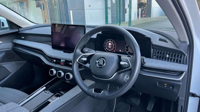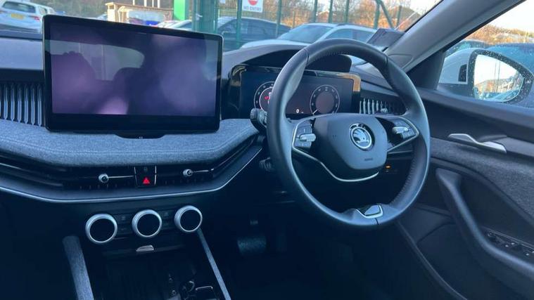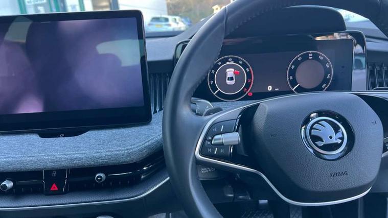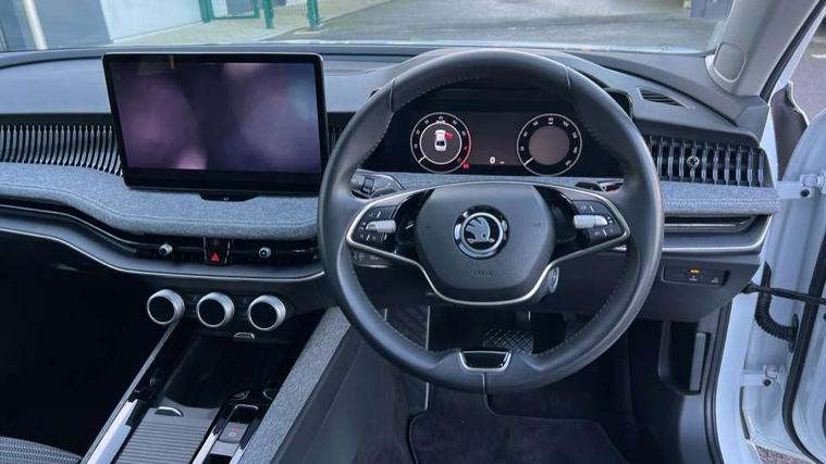 13" touchscreen display with satellite navigation, 4x USB-C ports (2x in front centre console and 2x in rear) (45W), Adaptive cruise control with speed assist, lane assist plus and traffic tram assist, Blind spot detection with door exit warning, Bluetooth system, CareConnect and Emergency Call, ChatGPT functionality, Driver fatigue sensor, Front assist with extended predictive pedestrian protection, Front cross traffic assist, PAS, Quick start all heating software functionality, Stop/start engine system, Traffic sign recognition, Turn assist with evasive assistance, Virtual Cockpit - 10.25" digital display, Voice control system, Washer for rear camera, Wireless charging for one smartphone (15W) with cooling function, Wireless smartlink apple carplay, SmartLink+ android auto, 8 Speakers, DAB Digital radio, Display cleaner, FM radio connection, Web radio connection, Acoustic side windows and interior noise suppression, Backdrop lighting, Body colour door handles, Body coloured door mirrors, Chrome window surround, Dark chrome grille surround, Electrically adjustable, heated, folding and driver side auto-dimming door mirrors with integrated indicators and logo projection, Frameless auto-dimming rear view mirror with USB-C, Ice scraper in fuel tank cap, LED 3rd brake light, Light assist with High beam control, Light assistant (coming/leaving home/tunnel light), Privacy glass, Rear fog light (x1), Rear side wing doors, Unique dark chrome design logo on alloy wheels, Windscreen wipers with rain sensor, 12V socket 1x centre console 1x boot, 2x cargo elements in boot, 2x light in boot, 3 seat bench in 2nd row, 60:40 Split folding rear seats, Bottle holders in the front doors 1.5 litre bottle and rear 1.5 litre bottle, Cup holder in front with easy open mat, Front armrest with storage box, Front comfort seats, Heated front seats, Height adjustable driver and front passenger seats with 2-way electric tilt, 4-way pneumatic lumbar support, and extendable thigh support, Height adjustable front and rear head restraints, Height adjustable front passenger seat, Illuminated glovebox, Interior lights with control switches, Isofix child seat fittings in outer rear and front passenger seats, LED front and rear reading lights, Massage function for front seats, Single front passenger seat, Skoda lettering on steering wheel, Storage compartment with cover, Storage pockets on back of front seats, Sun visors with illuminated vanity mirrors, Ticket holder on A Pillar, Tri zone climate control, Umbrella in driver's door, 3 rear seatbelts, 8 Airbags - Front driver and passenger, front side driver and passenger, centre, curtain front and rear, drivers knee, Crew protect assist, Driver and passenger seatbelts with warning light, Electronic parking brake, ESC including ABS, EBV, MSR, ASR, EDS, HBA, DSR, RBS, CBC, multi-collision brake (MKB) and Auto hold, Hill hold assist, Power operated child lock in rear doors, Alarm with interior monitoring tilt sensor and back up horn, Backrest remote release from trunk, Electronic engine immobiliser, Keyless start/stop, Remote central locking with SAFE system, Third key, Decorative front door sills,