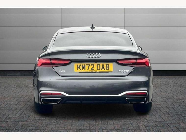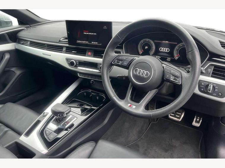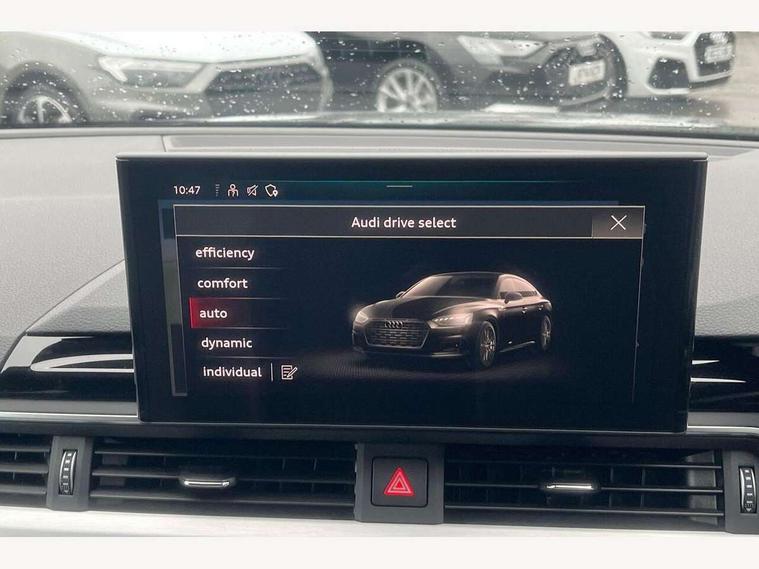 Audi connect safety and service (e-call), Audi connect with Amazon Alexa Integration, Audi drive select (Auto, Comfort, Dynamic, Efficiency and Individual), Audi parking system plus with front and rear sensors, Audi smartphone interface, Audi virtual cockpit - 12.3" full colour digital instrument cluster, vehicle/engine speed, Radio/media information+Driver assistance systems, Automatic start-stop system with coasting functionality and efficiency programme, Bluetooth interface, Electro-mechanical power steering, Email, calendar and text messages displayed via MMI, MMI nav+ with MMI touch - 10.1" high resolution MMI display, touch sensitive, 3D map, route/country info, dynamic route guide, personal route assist, Power operated tailgate, Rear view camera, Service interval indicator, Voice control system, Diesel particulate filter, Sports suspension lowered by 23mm, 8 passive loudspeakers, CD player, DAB digital radio reception, Two additional USB ports for rear passenger in rear centre console, Two SDXC card slots, Audi matrix LED headlights with LED rear lights + dynamic front and rear indicators, Auto dimming door mirrors, Auto dimming rear view mirror, Body colour bumpers, Body colour door handles, Body colour front spoiler lip, Body colour side sill trim, Body coloured door mirrors, Electric adjustable heated door mirrors, Electric folding door mirrors, Electric front windows, Front fog lights, Honeycomb structure radiator grille in grained matt black, Kerb-view function for passenger side, LED daytime running lights, LED side indicator lights integrated into door mirrors, LED third brake light, Matt aluminium silver tailpipe trim, Privacy glass, Rain and light sensors, Rear side wing doors, S line badges on front wings, S line front and rear bumpers with side skirts, S Line rear diffuser in matt titanium black with trim strip in matt aluminium silver, Side air inlets in grained matt black with matt aluminium silver inlay, Variable front intermittent wipers, Windscreen with acoustic glazing, 3 seat bench in 2nd row, 4 way electric lumbar support for driver and front passenger, 40/20/40 split folding 3 seater rear bench seat, Adjustable steering column, Black cloth headlining, Black perforated leather gearknob, Contrast stitching on seats, steering wheel and gear lever gaiter, Deluxe 3 zone electronic climate control, Front centre armrest, Front head restraints, Front/rear floor mats, Heated front seats, Illuminated door sill trim with S logo, ISOFIX child seat mounting and top tether, Luggage compartment mat, Manual seat adjustment, Rear centre armrest, Rear headrests, Single front passenger seat, Stainless steel pedals, Sunvisors with vanity mirrors, LED interior light pack - A5/RS5, 3x3 point rear seatbelts, 6 airbags - Driver, front passenger, curtain and side airbags, Electromechanical parking brake, Electronic Stabilisation Control (ESC) including ABS, ASR and EDL, Front passenger airbag deactivation, Height adjustable front seatbelts, Hill hold assist, Manual child lock in rear doors, Multi collision brake assist, Pop-up bonnet for pedestrian protection, Pre sense city, Seatbelt monitoring, Tyre pressure warning, Variable restraint system, Warning triangle and first aid kit, Anti theft alarm system, Anti theft wheel bolts, Immobiliser, Keyless Go, Remote central locking, Matt brushed aluminium inlays, Tool kit, Tyre repair kit,
