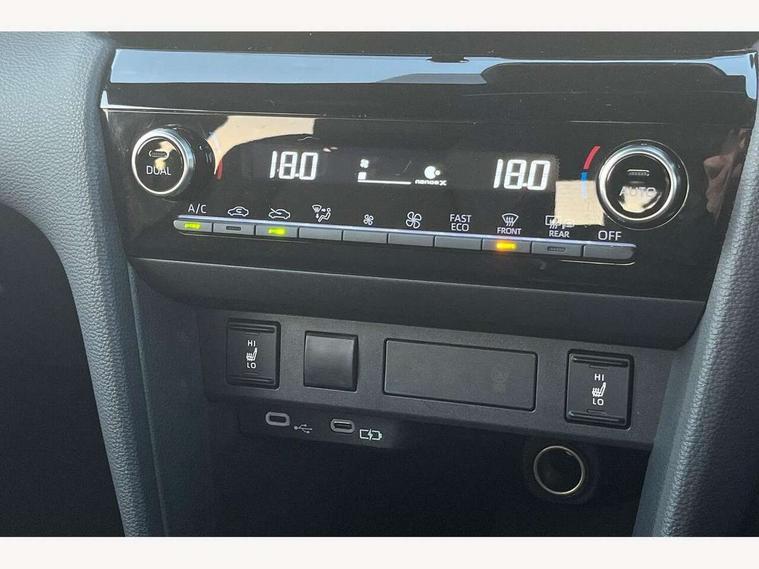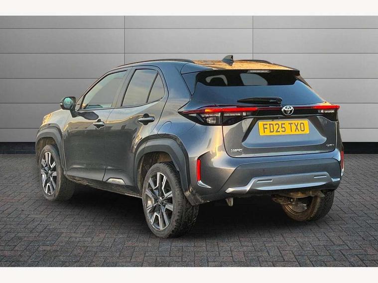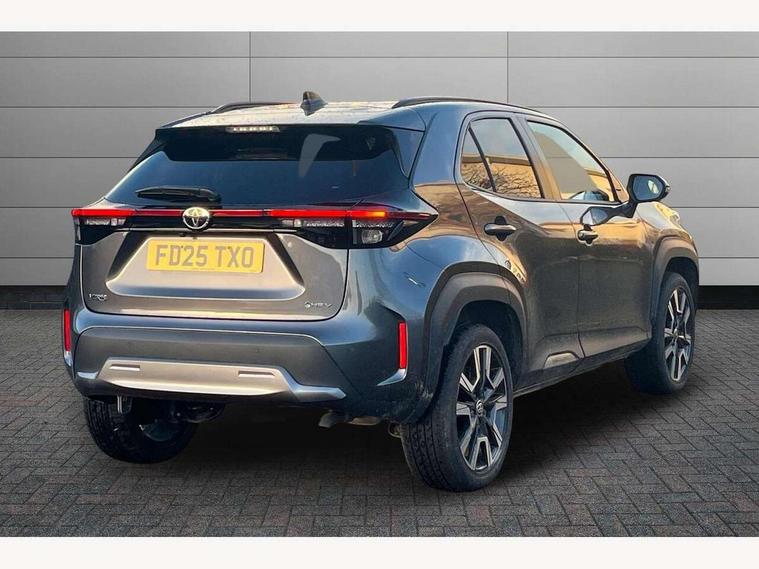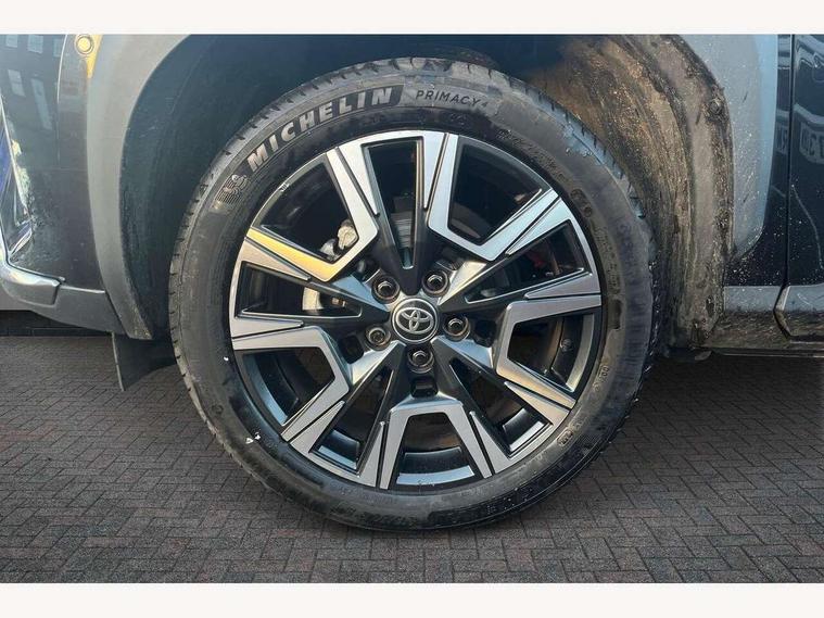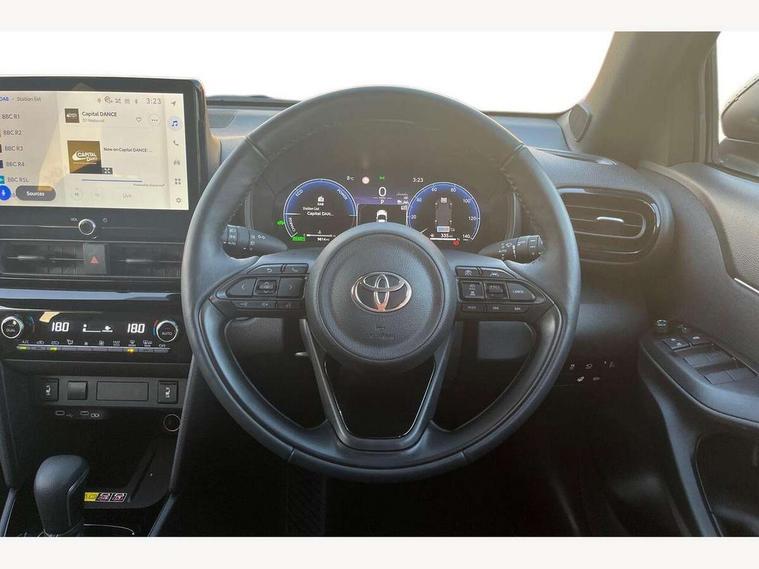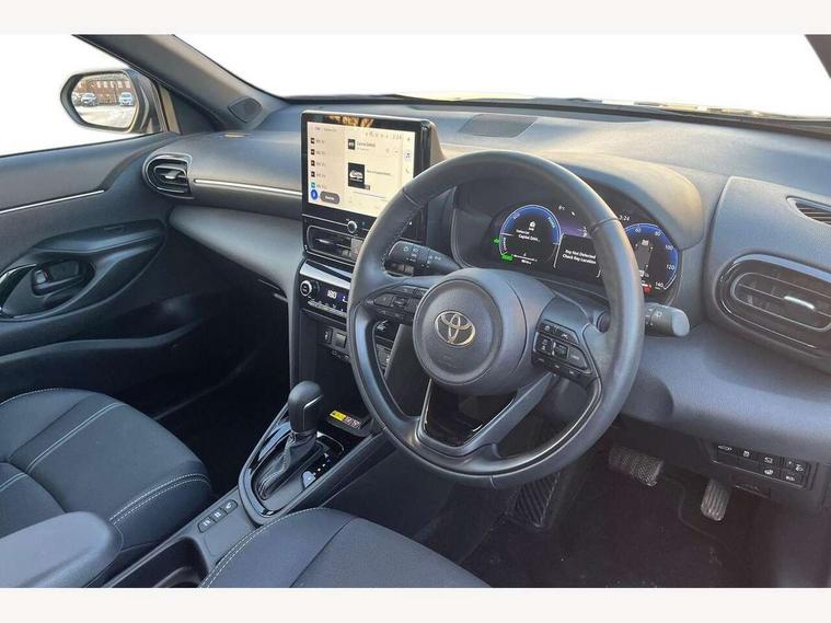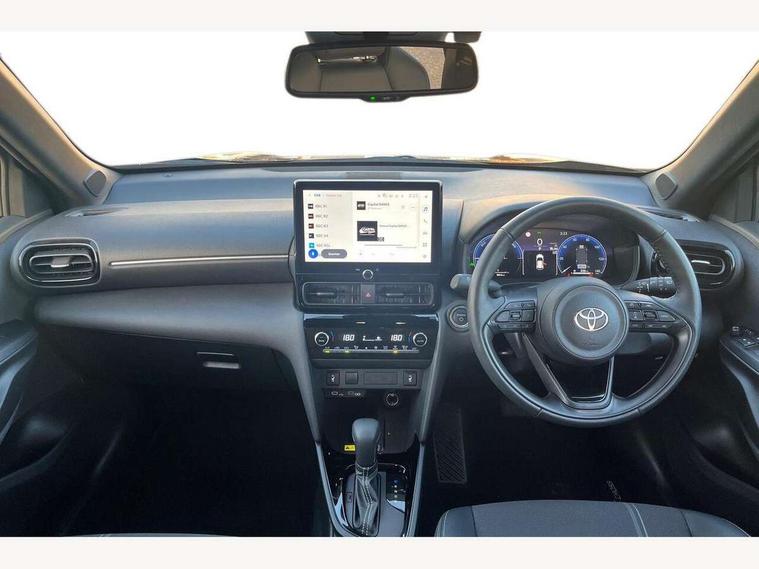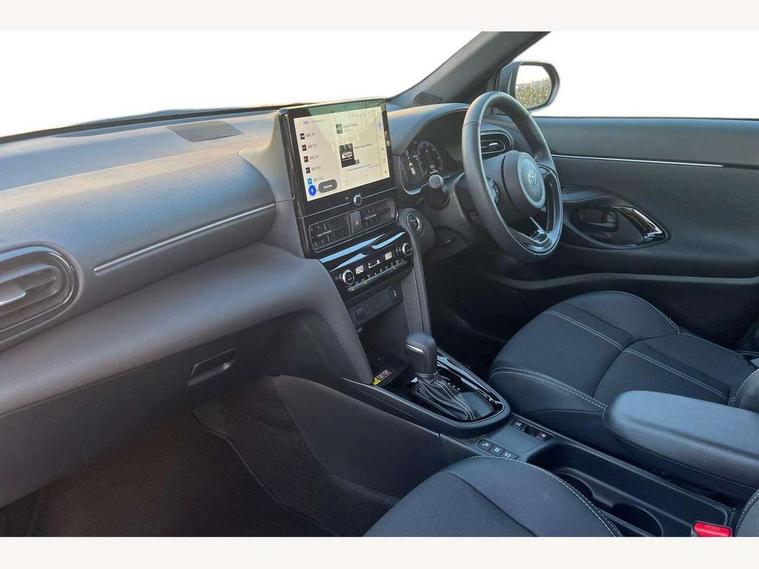 10.5" Multimedia display screen, 10.5" Toyota smart connect+ with navi multimedia system with wireless Smartphone integration incl Apple CarPlay, 360 degree panoramic view monitor, 7" Multi information display screen, Adaptive cruise control, multi info switches on steering wheel, Adjustable speed limiter, Advanced parking assist, Blind spot monitoring, Bluetooth connectivity, Color multi-information display, Digital speedometer, Digital tachometer, Drive mode selector, Driver attention alert system, Dynamic guide lines on reversing camera, eCall emergency system, Electric power steering, Emergency driving stop system, Full range intelligent adaptive cruise control, Hybrid system indicator, Intelligent front and rear parking sensors with clearance sonar and automatic braking, Intersection turn assist, Key reminder warning, Lane change assist, Lane trace assist, My T Connected services, Power tailgate, Pre-collision system enhanced with emergency steering assist, Rear cross traffic alert, Remote boot door release in cabin, Road sign assist - RSA, Safe exit assist, Tailgate, Telephone switch on steering wheel, Wireless Mobile Phone Charger, Steering assisted vehicle stability control, 6 speakers, DAB Digital radio, Front USB Type-C connector, Front USB-C device charger, Acoustic windscreen glass, Anti-jam protection on power windows, Auto dimming rear view mirror, Auto high beam [AHB] with on/off switch, Auto intermittent windscreen wipers, Automatic headlights, Automatic headlights cut-off, Automatically retractable door mirrors, Black door moulding, Black lower front grille, Black protection moulding on side doors, Black roof rails, Black wheel arch mouldings, Body colour door handles, Body colour front bumper, Body colour rear bumper, Electric adjustable heated door mirrors, Follow me home headlights, Front and rear electric windows with auto up/down function, Gloss black upper front grille, Headlight cut off reminder, Indicators integrated on door mirrors, Intermittent rear wiper, Kick activated power back door, LED 3rd brake light, LED daytime running lights guide, LED front fog lights, LED front light guide, LED Indicators, LED projector headlights, LED rear lights with sequential indicators, Manual headlight levelling, Meshed upper front grille, Noise reduction layer on windscreen, Pre wiring for towing hook, Privacy glass, Rain sensor, Rear roof spoiler, Rear side wing doors, Rear window defogger, Shark fin antenna, 12v power outlet - front, 12V power point in boot, 2x Rear coat hooks, 3 seat bench in 2nd row, 3 spoke leather steering wheel, 40/60 split deckboard, 40:20:40 split folding rear bench seat, Adjustable rear headrests, Adjustable speed limiter switch on steering wheel, Boot light, Central armrest, Driver and front passenger personal lights, Driver and front passenger Whiplash injury Lesseing seats, Driver and passenger seatback pockets, Dual zone automatic air conditioning, Fabric door trim, Front console box, Front cup holders, Front door pockets, Front head restraints, Front sport seats, Front/rear assist grips, Gear shift indicator, Grey roof lining, Heated driver and passenger seats, Heated steering wheel, Height adjustable driver's seat, Height adjustable front passenger seat, Hooks for luggage holding belts, ISOFIX child restraint system, Lane departure alert switch on steering control, Leather gearshift, LED centre room light, Light on driver and passenger sun visor, Manual telescopic and tilting steering wheel, Mirror on driver and passenger sun visor, Nanoe-X air purifier, Partial synthetic leather upholstery, Pollen air filter, Power adjustable lumbar support on driver seat, Rear cup holders, Rear door pockets, Rear head restraints, Remote air-conditioning system, Single compartment glovebox, Single front passenger seat, Soft tonneau cover, Storage box under boot floor, Voice recognition switch on steering wheel, White ambient lighting in centre console, White ambient lighting in footwell, White ambient lighting on front doors, Yaris cross floor mats, Tech pack - Yaris Cross, 3x3 point rear seat belts, ABS+EBD+Brake assist, Downhill Assist Control (DAC), Driver and passenger central airbags, Driver and passenger front airbags, Driver and passenger side airbags, Electronic parking brake, Emergency brake light system (EBS), Front seat belt reminder, Hill start assist control (HAC), Passenger airbag on/off switch, Pre-collision system with pedestrian and cyclist detection, Rear door child safety locks, Rear passenger side airbags, Rear seat belt reminder, Traction control, Tyre pressure warning system, Immobiliser, Intrusion alarm, Keyless smart entry with push button start, Power door locks, Power passenger window lock, Remote door lock, Gloss black side air vent surrounds, Tyre repair kit,