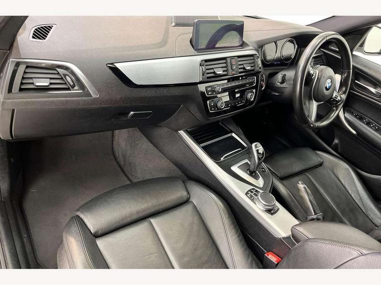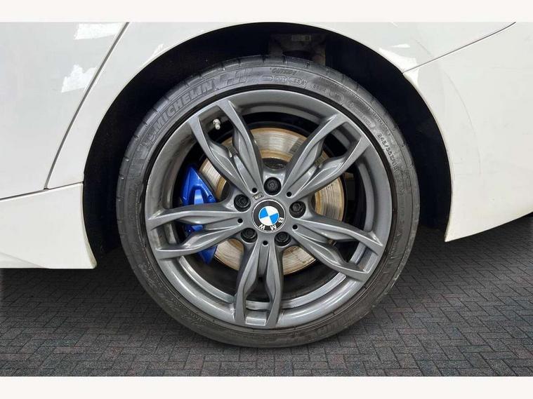 Automatic start/stop system, BMW Online services, BMW remote services, BMW Teleservices, Brake force display, Brake pad wear indicator in front and rear, Check Control warning system for monitoring of lights and door/luggage compartment open warning, Cruise control with brake assist, Eco pro mode, Instrument cluster with speedometer with miles per hour read out, tachometer and fuel gauge, Lights on warning by audio warning signal when ignition is switched off, Oil temperature display via on board computer in instrument cluster, On board computer - average speed+fuel consumption, service interval, clock/date, odometer/trip meter, outside temperature display and ice warning, On board diagnostics, Optimum shift indicator, Personal Profile, Real time traffic information, Speed limiter, Variable sport steering, Battery age recognition function, Drive Performance Control, Sport automatic transmission with Launch Control, Sports function on gearbox with steering wheel mounted gearshift paddles, BMW professional radio with CD player, DAB Digital radio, Harman/Kardon loudspeaker system, Body colour door handles, Body colour front and rear bumpers, Body colour roof mouldings, Clear lenses direction indicator lights, Dark chrome exhaust tailpipes in dual, round and split, Darkened rear lights with LED light bars, Daytime driving lights, Direction indicator side lights in exterior mirrors, Dynamic brake lights, Electrically adjustable heated door mirrors and washer jets, Ferric grey air blades, Ferric grey mirror caps, Follow me home headlights, Front and rear bumper system with replaceable deformation elements, Front and rear electric windows with open and close fingertip control, anti trap facility and comfort closing, Front door exit lights, Green tinted heat protection glazing, Headlight beam throw control, Heated windscreen washer jets, High gloss black kidney grille with black slats, High level third brake light, LED exterior front door handle lights, Lightweight engineering, M aerodynamic bodystyling, Nearside reverse light in rear light cluster, Offside rear fog lights, Rain sensor including auto headlights activation, Rear window aerial, Rear window wiper, Shark fin antenna, Sun protection glass, Visible VIN plate, Welcome lighting, 12V power socket in centre console, 12V power socket in passenger footwell, 60/40 split folding rear seat, Ambient lighting - switchable BMW classic orange/ cold white LED, Ambient lighting front and rear, Anthracite headlining, Anthracite Velour front and rear floor mats, Conditioned based service, Dakota leather upholstery, Door sill finishers with M140i designation, Driver and passenger illuminated vanity mirror, Four grab handles integrated in roof lining, Front and rear side armrest integrated into door trim, Front folding sliding armrest with storage compartment, Front footwell lights, Front head restraints, Front LED reading lights, Front sports seats with electric side bolster adjustment, Front storage compartment in centre console and in door trim, Front/rear courtesy lights with soft on/off dimming, Glove box handle with chrome surround, Glovebox, Interior light in front centre interior mirrors and rear centre auto interior light activation when door is opened when ignition switched off, Isofix child seat for two outer rear seats, Leather gear knob and handbrake grip, LED luggage compartment lighting, LED rear interior light with centre reading lights, Luggage compartment access via BMW roundel, Luggage compartment lighting, M sports multi function leather steering wheel, Manually adjustable steering column, Multi-function controls for steering wheel, Rear folding head restraints, Sunvisors with vanity mirrors and ticket pocket, Two cupholders with sliding cover and inlay mat, Two sills lashing eyes in the luggage compartment, Two zone automatic air conditioning, 3 point seatbelts on all seats, front pyrotechnic belt tensioners, stopper and belt force limiters, rear coded belt buckles, Active differential brake (ADB), electronic differential lock in DSC-OFF mode, Airbags - Front driver and passenger, front and rear head, front side, curtain head protection, Anti lock braking system (ABS) with brake assist, Automatic Stability Control (ASC), Battery safety cut-off, BMW emergency call, Brake drying, Brake energy regeneration, Braking readiness, Cornering brake control (CBC), Crash sensor activating central locking release, hazard warning lights, Driver and front passenger seat belt security check, DSC+, Dynamic brake control, Dynamic Traction Control - DTC, Front passenger manual airbag deactivation, Front ventilated brake disc, Hill start assist, M Sport braking system, Rear brake discs, Rear child proof door locks, Side impact protection, Twin horns, Tyre pressure monitoring system, Warning triangle and first aid kit, Automatic drive away locking facility, Central locking switch for all doors, fuel filler cap and luggage compartment, Locking wheel bolts, Remote central locking with two Integrate key, one button for opening and closing all lock, open and close window, button for open luggage compartment, Remote control integrated key with blue inset, Start/stop button with comfort go keyless engine start and auto start stop deactivation button, Thatcham Cat.1 alarm and immobiliser, High performance tyres, Reduced rolling resistance tyres,