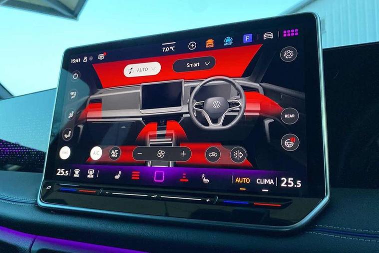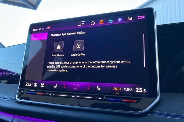 Adaptive cruise control (ACC), Advanced driver attention and drowsiness monitor, Bluetooth mobile phone interface, Digital Cockpit Pro - 10.25" high resolution dash display screen with customisable menus and information, Dynamic road sign display, E-Sim card for online connectivity, eCall emergency call service, Front Assist - Autonomous emergency braking with pedestrian and cyclist monitoring, Lane change system, Side assist, Rear traffic alert and Exit warning system, Lane keeping system Lane Assist, Multifunction front facing camera, Oncoming vehicle braking when turning including swerve support, Park assistance plus with front and rear parking sensors, Power assisted steering with speed sensitive, Start/stop system with regenerative braking, Warning signal and warning light for front and rear seatbelts not fastened, Wireless App-Connect, Front wheel drive, Digital radio reception (DAB), Diversity antenna for FM reception, Air intake with Chrome trim, Ambient lighting with logo projection, Auto dimming interior rear view mirror, Automatic headlight control system, Body coloured door handles, Chrome moldings on the side windows, Coming/leaving home lighting function, Heat insulating glass in side and rear windows, Heated rear window, Heated windscreen washer jets, High level 3rd brake light, Illuminated door handle recesses, Illuminated lightline between headlamps, Laminated safety glass winshield, Rain sensor windscreen wipers, Rear fog light on one side, reversing light on both sides, Rear side wing doors, Rear wiper, 12V outlet in center console rear and in luggage compartment, 12V socket in centre console, 3 bench rear seats in 2nd row, Air care climatronic 3 zone air conditioning system with rear air conditioning control panel, Black roof lining, Brushed stainless steel pedals, Carpet mats, front and rear, Centre console with illuminated storage compartment with sliding cover and two drinks holders, Chrome elements on the mirror switch and power window switches and door pulls, Door and side trim panel with leatherette insert, Door sill protectors, Front centre armrest, Front integrated head restraints, Interior ambient lighting with 30 colour options, ISOFIX anchors for child seats on outer rear seats and front passenger seat. Compatible with i-Size, Mechanical rear seat release, Power adjustable lumbar support in front, Rear bench seat, split folding, longitudinally movable and folding with load-through hatch and centre armrest, Single front passenger seat, Soul headlining, Sports comfort seats in front, Sun visors with illuminated vanity mirrors, Three rear head restraints, Variable luggage compartment floor, 3 point seat belt for centre rear seats, 3 Point seat belts in front with pretensioners, 3 point seatbelts in outer rear with ECE label, Driver and front passenger airbag with front passenger airbag deactivation, Electronic parking brake with auto hold, Front and rear curtain airbags, Front and rear side airbags, Front centre airbag, Front disc brakes, Manual child proof rear door locks, Rear disc brakes, Two tone horn, Warning triangle, Anti theft wheel bolts, Decorative inserts, Interior door handle in matte chrome, Soul instrument panel, Airstop tyres,