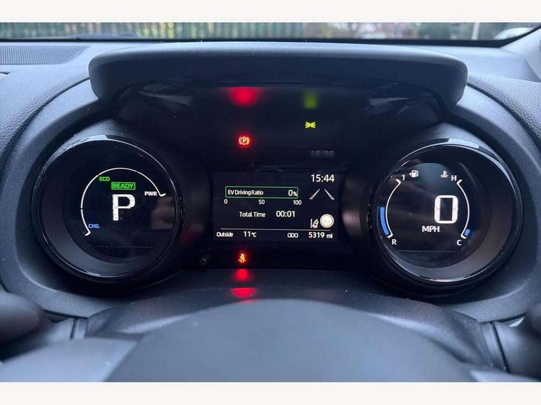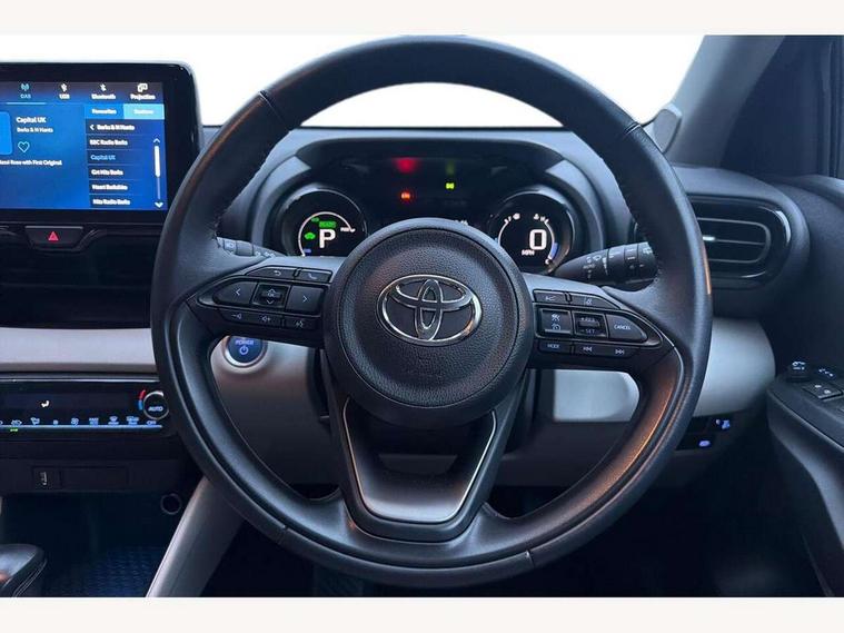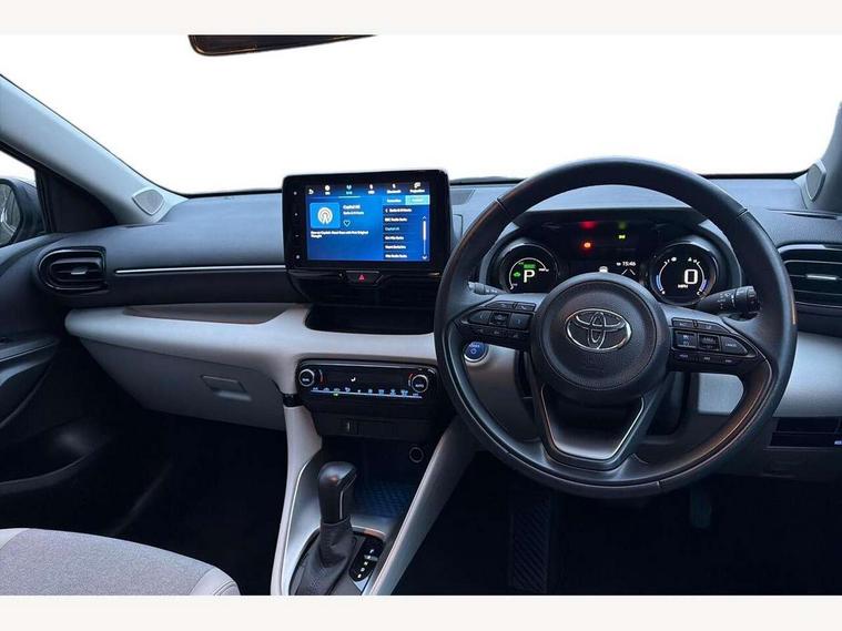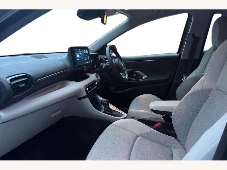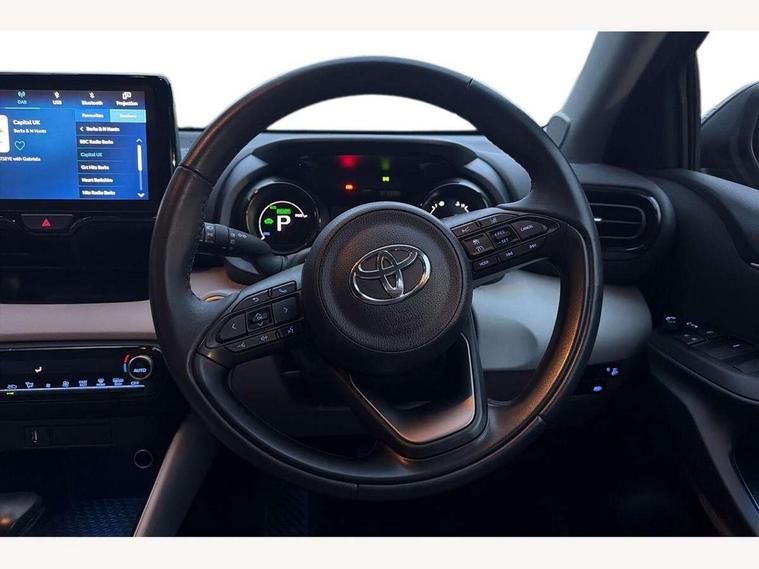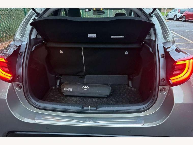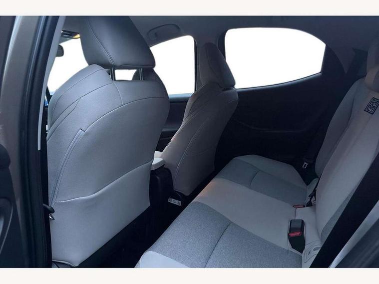 Adaptive cruise control, Adjustable speed limit with speed warning, Blind spot monitoring, Bluetooth connectivity, Colour binocular inspired displays with digital speedometer, E-call, Electric power steering, Hybrid energy display, Multi information display switches on steering wheel, Reversing camera, Smartphone integration with Apple CarPlay and Android auto, Tailgate, Touch 2 navigation system, Voice recognition, Vehicle Stability Control (VSC), 6 speakers, 9" HD multimedia display touch screen with Toyota smart connect, USB connection, Acoustic windscreen glass, Auto windscreen wipers, Automatic headlights, Automatically retractable door mirrors, Body coloured door mirrors, Electric adjustable heated door mirrors, Follow me home headlights, Front auto power windows with anti jam protection, Full LED rear lights, LED daytime running lights, LED front fog lights, LED front light guide, LED Headlights, LED High mounted stop lamp, LED Indicators, LED rear light guide, Manual headlight levelling, Painted chequered front grille, Rain sensor, Rear auto power windows with anti jam protection, Rear privacy glass, Rear side wing doors, Rear spoiler, Rear wiper, Satin lower front grille, Shark fin antenna, Turning signal integrated indicators in door mirrors, Variable front intermittent wipers, 3 adjustable rear headrests, 3 seat bench in 2nd row, 3 spoke leather steering wheel, 60/40 split folding rear seat, Active headrests, Adjustable boot height, Coat hooks in rear grab handles, Cup holders (2 front & door), Data Communication Module (DCM) connected services, Dual zone automatic air conditioning, Fabric seat with partial synthetic leather upholstery, Front armrest, Front sport seats, Glovebox, Grey roof lining, Height adjustable driver's seat, Height adjustable passenger seat, Isofix seat fixing, Leather gearshift, Map pockets on the backs of the front seats, Pollen filter, Shopping bag hooks, Single front passenger seat, Tilt/telescopic steering column, Parking pack - Yaris, 3 point seatbelts on all rear seats, ABS+EBD+Brake assist, Electronic parking brake, Emergency brake light system (EBS), Front passenger airbag on/off switch, Front seatbelt reminder, Hill start assist control (HAC), Rear child proof door locks, Rear seat belt reminder, Supplemental Restraint System (SRS) 8 airbags: Driver & passenger's airbags, dual side curtain airbags, side impact airbags, front centre airbag, Toyota Safety Sense 2, Precollison + Night time Pedestrian & Cyclist Detection, Lane Trace Assist, Auto High Beam, Intelligent ACC & Road Sign Assist, Tyre pressure warning system, 2x Master key, Alarm/immobiliser, Keyless smart entry with push button start, Remote AC via MyT, Remote locking via MyT, Remote powered central double locking doors, Satin chrome interior styling, Soft touch instrument panel, Space saver spare wheel,