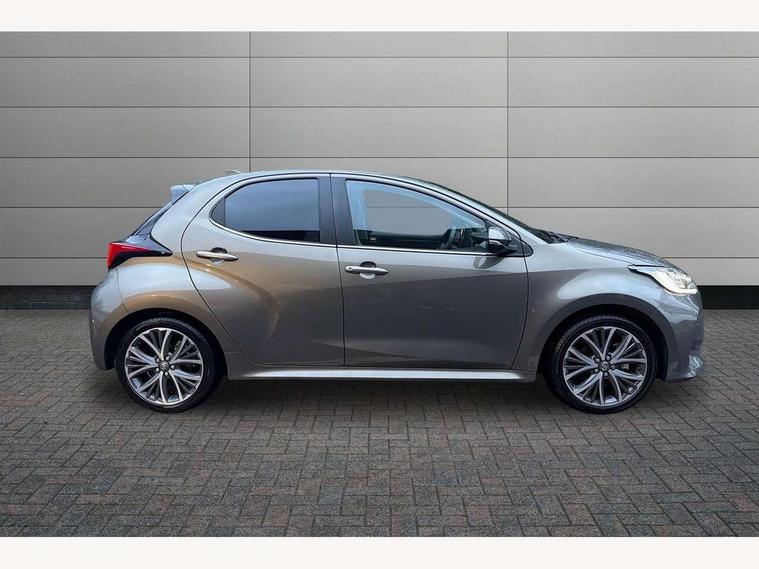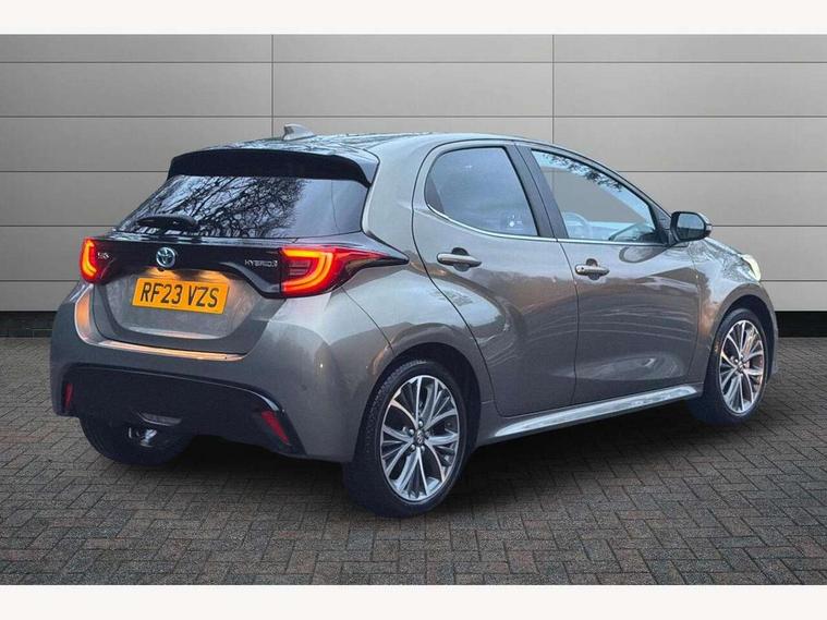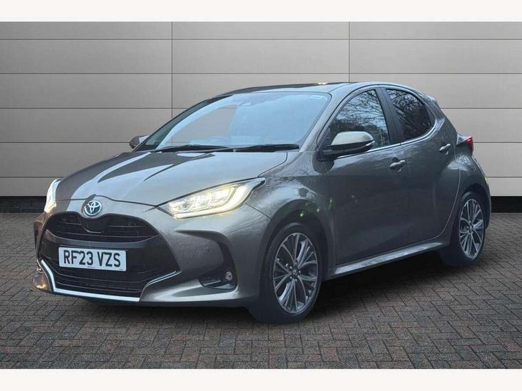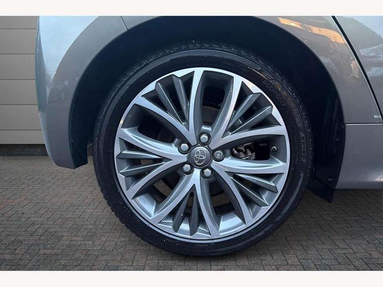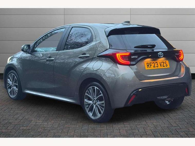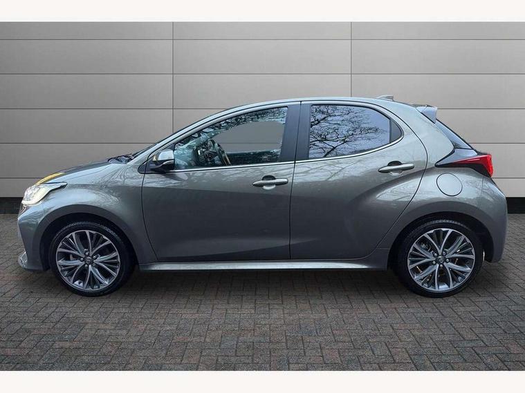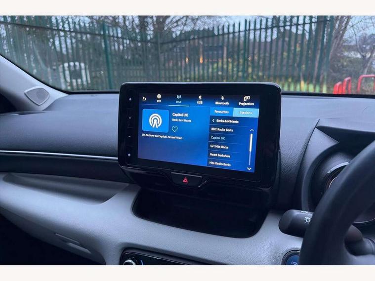 Adaptive cruise control, Adjustable speed limit with speed warning, Blind spot monitoring, Bluetooth connectivity, Colour binocular inspired displays with digital speedometer, E-call, Electric power steering, Hybrid energy display, Multi information display switches on steering wheel, Reversing camera, Smartphone integration with Apple CarPlay and Android auto, Tailgate, Touch 2 navigation system, Voice recognition, Vehicle Stability Control (VSC), 6 speakers, 9" HD multimedia display touch screen with Toyota smart connect, USB connection, Acoustic windscreen glass, Auto windscreen wipers, Automatic headlights, Automatically retractable door mirrors, Body coloured door mirrors, Electric adjustable heated door mirrors, Follow me home headlights, Front auto power windows with anti jam protection, Full LED rear lights, LED daytime running lights, LED front fog lights, LED front light guide, LED Headlights, LED High mounted stop lamp, LED Indicators, LED rear light guide, Manual headlight levelling, Painted chequered front grille, Rain sensor, Rear auto power windows with anti jam protection, Rear privacy glass, Rear side wing doors, Rear spoiler, Rear wiper, Satin lower front grille, Shark fin antenna, Turning signal integrated indicators in door mirrors, Variable front intermittent wipers, 3 adjustable rear headrests, 3 seat bench in 2nd row, 3 spoke leather steering wheel, 60/40 split folding rear seat, Active headrests, Adjustable boot height, Coat hooks in rear grab handles, Cup holders (2 front & door), Data Communication Module (DCM) connected services, Dual zone automatic air conditioning, Fabric seat with partial synthetic leather upholstery, Front armrest, Front sport seats, Glovebox, Grey roof lining, Height adjustable driver's seat, Height adjustable passenger seat, Isofix seat fixing, Leather gearshift, Map pockets on the backs of the front seats, Pollen filter, Shopping bag hooks, Single front passenger seat, Tilt/telescopic steering column, Parking pack - Yaris, 3 point seatbelts on all rear seats, ABS+EBD+Brake assist, Electronic parking brake, Emergency brake light system (EBS), Front passenger airbag on/off switch, Front seatbelt reminder, Hill start assist control (HAC), Rear child proof door locks, Rear seat belt reminder, Supplemental Restraint System (SRS) 8 airbags: Driver & passenger's airbags, dual side curtain airbags, side impact airbags, front centre airbag, Toyota Safety Sense 2, Precollison + Night time Pedestrian & Cyclist Detection, Lane Trace Assist, Auto High Beam, Intelligent ACC & Road Sign Assist, Tyre pressure warning system, 2x Master key, Alarm/immobiliser, Keyless smart entry with push button start, Remote AC via MyT, Remote locking via MyT, Remote powered central double locking doors, Satin chrome interior styling, Soft touch instrument panel, Space saver spare wheel,