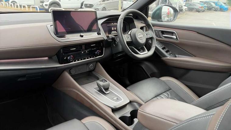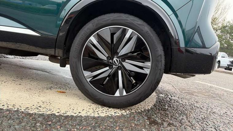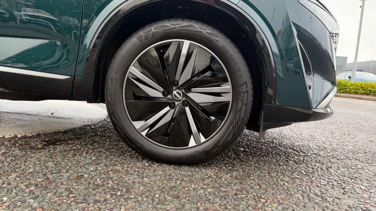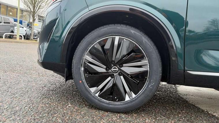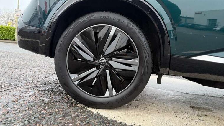 2 front USB-C ports, 2 rear USB-C ports, 360 degree Intelligent around view monitor with moving object detection, Advanced windscreen head up display, Blind spot intervention, Blind spot warning, Drive assist custom mode, Drive modes (sport, normal, eco), Driver drowsiness and attention warning, Electric speed sensitive power steering, Emergency and breakdown call, Emergency lane keep assist, Emergency Stop Signal (ESS), Engine start/stop button, Event data recorder, Front and rear parking sensors, Full Digital 12.3" TFT Digital Combimeter, Google virtual personal assistance, Hands free power tailgate, Idle stop/start system, In-car WIFI hotspot, Intelligent Cruise control (ICC), Intelligent forward collision warning, Intelligent speed assist, Lane departure warning system, Nissan connect 12.3 inch touchscreen infotainment system, Nissan connect navigation with google maps, Nissan connect services 2.0 (Google Automotive System), Outside temperature sensor, Rear cross traffic alert, Reversing detection, Traffic jam pilot, Wireless Apple CarPlay/Android Auto, Wireless charging pad, Limited slip differential, 6 speakers, AM/FM audio system with DAB, Bluetooth audio streaming, Auto dimming frameless rear view mirror, Auto rear wiper when reversing, Body colour mirror caps, Body coloured door handles, Bodyside mouldings, Chrome side window finisher, Electric auto folding door mirrors, Electrically adjustable and heated door mirrors with LED turn indicator, Follow me home headlights, Glossy black bumper inserts and fenders, High beam assist, Intelligent auto headlights, LED 3rd brake light, LED daytime running lights, LED headlights with adaptive driving beam, LED rear lights, LED sequential turn lights, One touch front and rear electric windows with remote opening and closing, One touch passenger window, Partially body coloured bumpers, Rear privacy glass, Rear roof spoiler, Rear side wing doors, Rear styling plate, Reverse tilting door mirrors, Shark fin antenna, Silver roof rails, Splash free rain sensing wipers, Super RED rear LED lights, Super UV and infrared cut glass, Thermaclear heated windscreen, 3 bench rear seats in 2nd row, 3 rear headrests, 60/40 split folding rear seat bench, Chrome interior door handles, Dark headlining, Driver seat back pocket, Dual zone automatic climate control with pollen filter, Fixed Glass roof with electric sunshade, Front door with bottle holders, Heated front seats, Heated steering wheel, Height adjustable front headrests, Luggage board system, Luggage space lighting, Multifunction steering wheel, Passenger seat back pocket, Quilted/PVC upholstery, Rear door bottle holders, RGB ambient light (Full area coverage), Single front passenger seat, Smooth leather steering wheel, Steering wheel gearshift paddles, Tilt/telescopic adjustable steering wheel, Two rear isofix child seat anchorage points with top tether, 3x3 point rear seatbelt pretensioners + load limiters, Autonomous emergency braking, Child locks on rear doors, Curtain and front side, far side airbags, Driver and passenger airbags, Driver, passenger and 2nd row rear seat belt reminder, Electric handbrake with auto hold function, Front seatbelt pretensioners + load limiters, Height adjustable front seatbelts, Hill start assist, intelligent front emergency braking, Rear automatic braking, Tyre pressure monitoring system, Vehicle dynamic control, Engine immobiliser, Intelligent key with walk away lock and approach unlock functions, Remote central door locking with deadlocking, Thatcham alarm, 19" Diamond cut alloy wheels, Tyre puncture repair kit,