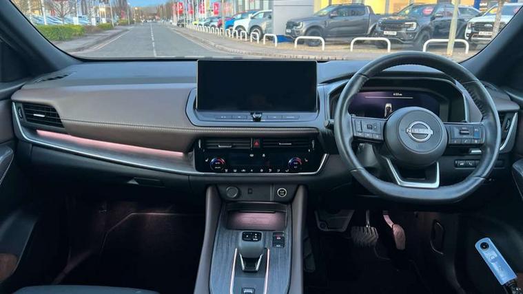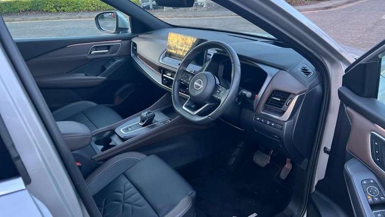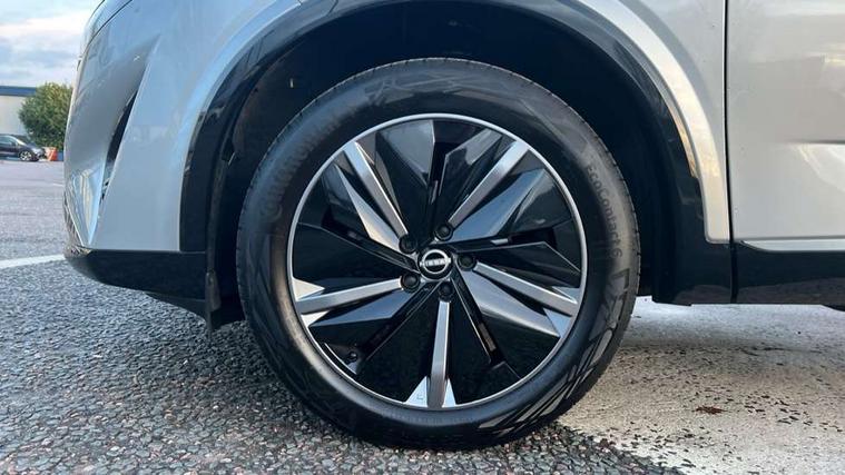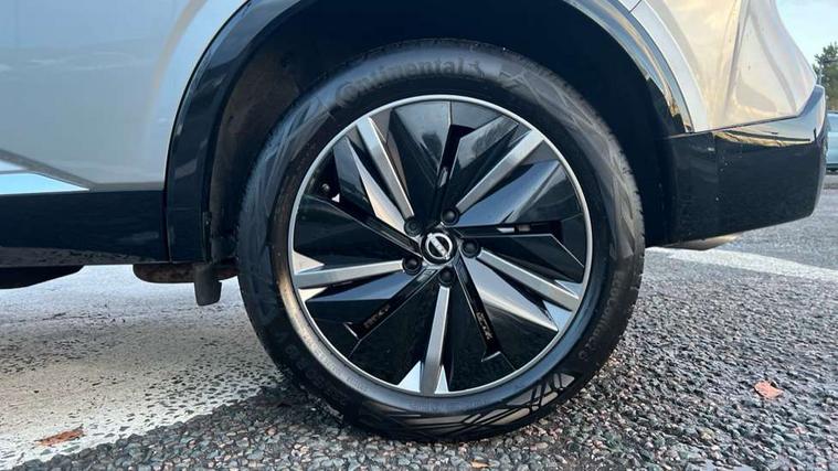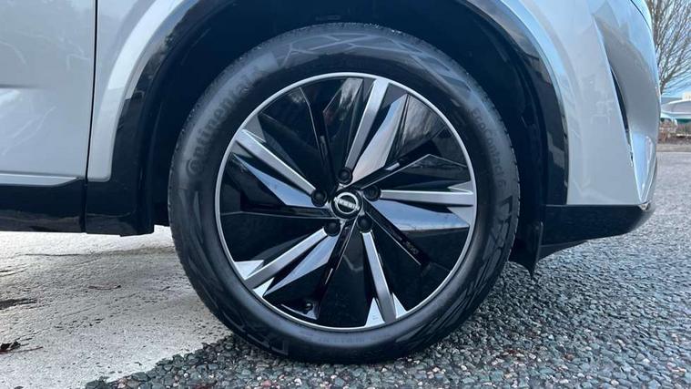2 front USB-C ports, 2 rear USB-C ports, 360 degree Intelligent around view monitor with moving object detection, Advanced windscreen head up display, Blind spot intervention, Blind spot warning, Drive assist custom mode, Drive modes (sport, normal, eco), Driver drowsiness and attention warning, Electric speed sensitive power steering, Emergency and breakdown call, Emergency lane keep assist, Emergency Stop Signal (ESS), Engine start/stop button, Event data recorder, Front and rear parking sensors, Full Digital 12.3" TFT Digital Combimeter, Google virtual personal assistance, Hands free power tailgate, Idle stop/start system, In-car WIFI hotspot, Intelligent Cruise control (ICC), Intelligent forward collision warning, Intelligent speed assist, Lane departure warning system, Nissan connect 12.3 inch touchscreen infotainment system, Nissan connect navigation with google maps, Nissan connect services 2.0 (Google Automotive System), Outside temperature sensor, Rear cross traffic alert, Reversing detection, Traffic jam pilot, Wireless Apple CarPlay/Android Auto, Wireless charging pad, Limited slip differential, 6 speakers, AM/FM audio system with DAB, Bluetooth audio streaming, Auto dimming frameless rear view mirror, Auto rear wiper when reversing, Body colour mirror caps, Body coloured door handles, Bodyside mouldings, Chrome side window finisher, Electric auto folding door mirrors, Electrically adjustable and heated door mirrors with LED turn indicator, Follow me home headlights, Glossy black bumper inserts and fenders, High beam assist, Intelligent auto headlights, LED 3rd brake light, LED daytime running lights, LED headlights with adaptive driving beam, LED rear lights, LED sequential turn lights, One touch front and rear electric windows with remote opening and closing, One touch passenger window, Partially body coloured bumpers, Rear privacy glass, Rear roof spoiler, Rear side wing doors, Rear styling plate, Reverse tilting door mirrors, Shark fin antenna, Silver roof rails, Splash free rain sensing wipers, Super RED rear LED lights, Super UV and infrared cut glass, Thermaclear heated windscreen, 3 bench rear seats in 2nd row, 3 rear headrests, 60/40 split folding rear seat bench, Chrome interior door handles, Dark headlining, Driver seat back pocket, Dual zone automatic climate control with pollen filter, Fixed Glass roof with electric sunshade, Front door with bottle holders, Heated front seats, Heated steering wheel, Height adjustable front headrests, Luggage board system, Luggage space lighting, Multifunction steering wheel, Passenger seat back pocket, Quilted/PVC upholstery, Rear door bottle holders, RGB ambient light (Full area coverage), Single front passenger seat, Smooth leather steering wheel, Steering wheel gearshift paddles, Tilt/telescopic adjustable steering wheel, Two rear isofix child seat anchorage points with top tether, 3x3 point rear seatbelt pretensioners + load limiters, Autonomous emergency braking, Child locks on rear doors, Curtain and front side, far side airbags, Driver and passenger airbags, Driver, passenger and 2nd row rear seat belt reminder, Electric handbrake with auto hold function, Front seatbelt pretensioners + load limiters, Height adjustable front seatbelts, Hill start assist, intelligent front emergency braking, Rear automatic braking, Tyre pressure monitoring system, Vehicle dynamic control, Engine immobiliser, Intelligent key with walk away lock and approach unlock functions, Remote central door locking with deadlocking, Thatcham alarm, 19" Diamond cut alloy wheels, Tyre puncture repair kit,