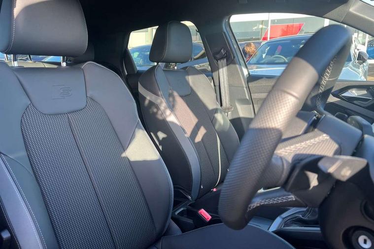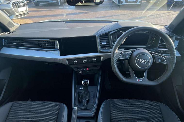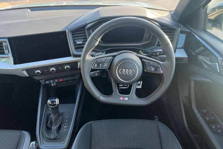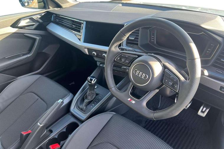 10.25" Digital instrument cluster display classis style instrument dials + speed, odometer, time, outside temperature, telephone menu + fuel level warning, Advanced driver attention and drowsiness monitor, Audi connect emergency call and service, Audi drive select, Audi remote connect and control, Bluetooth interface, Camera based traffic sign recognition, Cruise control, Driver's information system, Electromechanical power steering, Lane departure warning system, Rear parking sensor, Service interval indicator, Smartphone interface, Speed limiter, Start stop system with recuperation, Voice control system, Washer fluid level indicator, Sports suspension, 2 x USB type C connection points, 6 loudspeakers, DAB Digital radio, MMI radio plus with 10.1" colour MMI display screen and MMI touch, Auto dimming rear view mirror, Black door mirror housings, Black side skirts, Body coloured bumpers, Door sill trims with aluminium inlays and logo, Electric front and rear windows, Electrically adjustable, heated, folding door mirrors with integrated LED side indicator, Front side air inlets in grained matt black and C frame in anthracite black, Front wing badges, Headlight cleaning system, Heat insulating glass windscreen and side windows, Heated rear windscreen, High level LED brake light, LED daytime running lights, LED headlights with range control LED rear lights + dynamic rear indicators, Light and rain sensors, Privacy glass, Radiator grille and rear diffuser in matt anthracite black, Radiator protective grille frame in matt aluminium silver, Rear fog lights, Rear side wing doors, Rear wiper, Side front spoiler lips in grained matt black, 12V socket in centre console with two cup holders, 3 rear seats with headrests, 3 seat bench in 2nd row, 3 spoke flat bottomed multi-function plus leather steering wheel with S badging, grips in preforated leather, contrast stitching and paddle shift, 40:60 Split folding rear seat or fully collapsed, Black carpets, Black cloth headlining, Front and rear velour black floor mats with contrast stitching in fine silver, Front head restraints, Front passenger seat, Height and reach adjustable steering wheel, Interior lighting includes roof module, front and rear reading lights and right luggage compartment lighting, ISOFIX child seat mounting for front passenger and outer rear seats including top tether attachment point of outer rear seats, Leather gear knob with aluminium trim, Leather handbrake grip, Manual air conditioning, Manual height adjustable for driver and front passenger seat, Manually adjustable lumbar support in front seats, Stainless steel pedals, Ambient lighting package - A1, Black styling pack - A1 Sportback Black Edition, Luggage compartment pack - A1, 3x3 point rear seatbelts, Audi pre-sense front with pedestrain and cyclist recognition, Brake assist function, Driver and front passenger airbag with front side and head airbags, Electronic Stability Control including ABS, EBD, ASR and EDL, Front passenger airbag deactivation switch, Hill hold assist, Manual rear child locks, Seatbelt height adjustment for front seats, Seatbelt monitoring, Tyre pressure loss indicator, Warning triangle and first aid kit, Anti theft alarm, Anti theft wheel bolts, Immobiliser, Remote control key with safelock, Aluminium trim for control switches, air vents and digital instrument cluster, Black dashboard, Silver grey inlays polygon structure in diamond paint finish, Structured grey accent surfaces insert of air vents, interior door handle recesses and centre console in quartz paint finish,