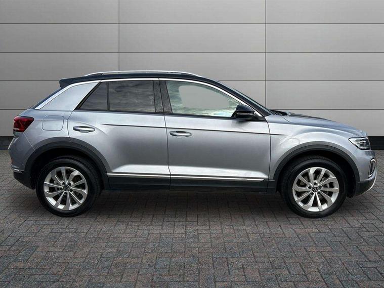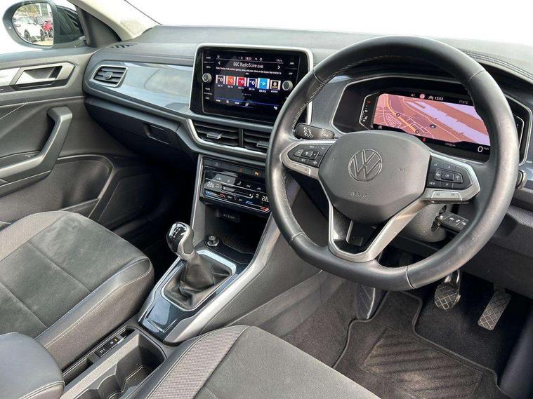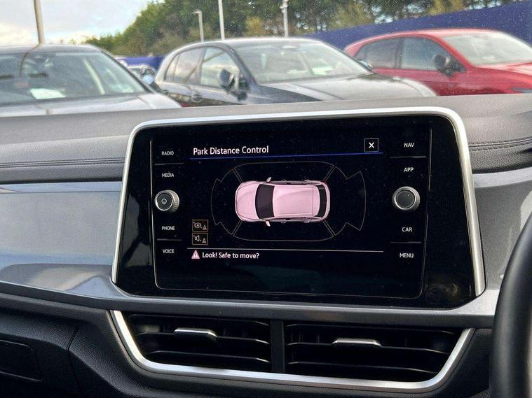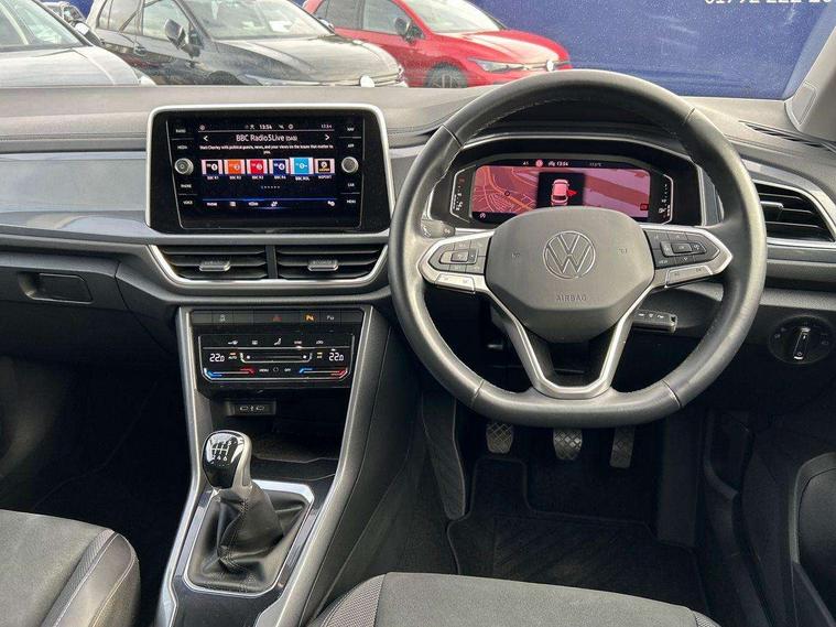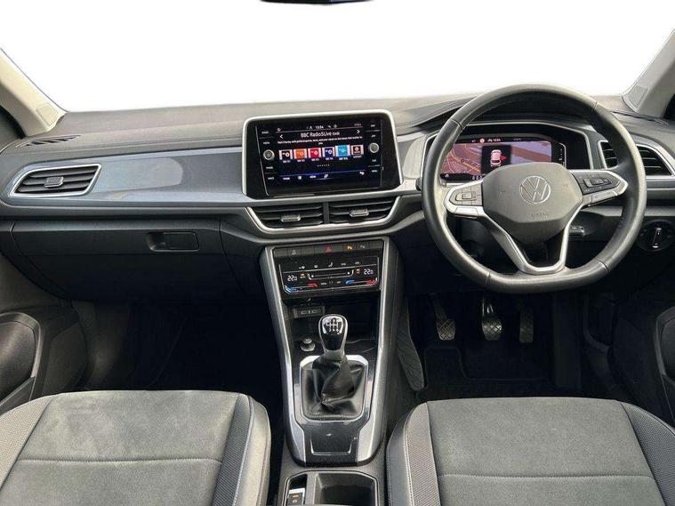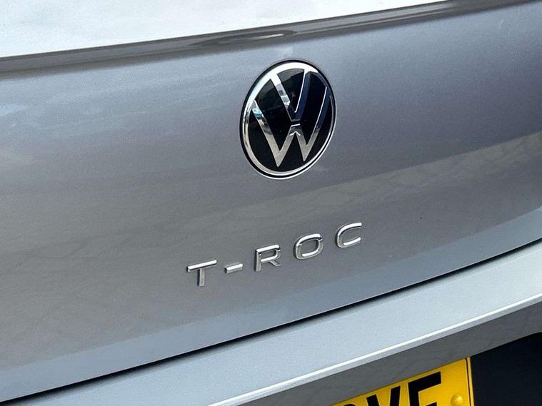 10.25" Digital cockpit pro, Bluetooth mobile phone interface, Driver alert system with fatigue detection, Driver tips and journey analysis, Dynamic road sign display, Emergency call service, Lane keeping system Lane Assist, Modified key software - reduce switch off time for key status change to Long no motion, Online services, Park assist including front and rear parking sensors, Power assisted speed sensitive steering, Service interval indicator, Tailgate/trunk lid release from outside, Think blue trainer driver tips and journey analysis, Warning sound and light for front seatbelts unfastened, Wireless app connect, Battery regeneration during braking, Front shock absorption, Rear shock absorption chassis with increased ride height, Start/stop function with battery regeneration, Diversity antenna for FM reception, Music playback - MP3, WMA and AAC files, Premium USB cable in choice of either Apple or Android smartphone compatibility, SD card slot, Simultaneous pairing of 2 compatible mobile devices, Title and cover art display, We Connect and We Connect Plus functionality, 3rd brake light, Auto dimming interior rear view mirror, Automatic hazard lights activation under emergency braking, Automatic headlight control with LED separate daytime running lights with coming/leaving home function, Body colour sports bumpers with silver metallic underbody fascia, Dynamic headlight range control with self adjusting whilst driving, Extended roof spoiler, Exterior mirrors aspherical on driver side, convex on front passenger side, External USB type C socket and charging sockets, Front windscreen wiper with intermittent wipe and 4 position delay, Heated rear window, LED rear combination lamps, LED rear number plate lights, LED tail lamp rear comination lamps, Light mode for poor weather, rain, fog or snow, Power windows with comfort operation and circuit breaker, Rain sensor, Rear exhaust tailpipe, Rear fog light on one side and reversing lights on both sides, Rear side wing doors, Rear wash/wipe with intermittent wipe setting, Remote electrically foldable door mirrors, puddle lights and reverse activated passenger's door mirror, 12V power socket in centre console, 3 rear head restraints, 3 seat bench in 2nd row, 4 load lashing points in luggage compartment, Air care climatronic air conditoning system with active combination filter and 2-zone temperature control, Chrome plated radiator grille inserts, air vent surrounds and light switch surrounds, Door and side trim panel with leatherette insert, Drawer under drivers seat, Front + rear carpet mats, Front centre armrest, Front comfort sports seats, Front cupholders x 2, Front footwell illumination, Instrument lighting, white adjustable panel illumination, Interior ambient lighting and surround lighting, Interior light delay, Isofix child seat preparation, Leather gearshift handle, LED interior light with switch off delay/dimmer and 2 front/rear LED reading lights, Load-through provision with cup holder when folded down ('Unsplit rear seat bench, split folding backrest, with centre armrest), Luggage compartment lighting, Non-folding front passenger seat backrest, Single front passenger seat, Storage compartment in left and right luggage area, Storage compartment in rear doors, Storage compartments in driver and front passenger doors, Sunvisors with illuminated vanity mirrors, Variable boot floor, height adjustable and removable, Driver assistance pack without proactive passenger protection - T-Roc, 3 point height adj front seatbelts + pretensioners, 3 point seatbelts in outer rear with ECE label, ABS, Child locks on rear doors, Driver and front passenger airbag with front passenger airbag deactivation, Driver and front passenger safety-optimised head restraints, Drivers seatbelt reminder, Electronic parking brake, Electronic Stability Control (ESC) inc EDL (Electronic Differential Lock) and ASR (Traction Control), Front and rear passengers curtain airbag system including front side airbags, Front assist with city emergency braking and pedestrian monitoring, Front disc brakes, Front seat side impact airbags, Predictive pedestrian protection, Rear disc brakes, Single tone horn, Tyre pressure loss indicator, Volkswagen roadside assistance, Anti-theft alarm system with interior monitoring, backup horn, and towing protection, Remote central locking with SAFELOCK, radio remote control with 2 remote control folding keys, Trims for alloy wheels,