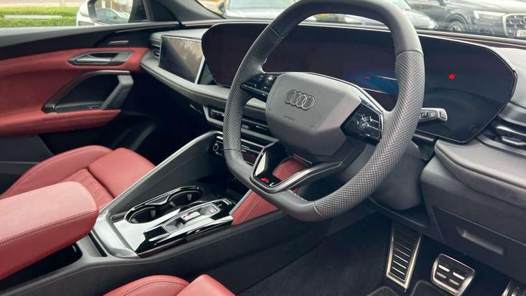 Adaptive cruise assist plus with steering intervention, Advanced driver attention alert, Audi application store, Audi connect emergency call and service, Audi digital key, Audi drive select, Audi smartphone interface, Audi virtual cockpit plus with 11.9" OLED colour display, Camera based traffic sign recognition, Fatigue monitor, Front cross traffic intersection assist, Garage door opener, Lane change assistant with exit warning system, rear cross traffic alert and rear turn assist, Lane departure warning with emergency assist, MMI 10.9" front passenger touch display, MMI navigation plus with high resolution 14.5" OLED touchscreen colour display, Park assist plus, Parking system plus with 360 display, PAS, Reversing camera, Swerve assist and turn assist, Top view camera, Traffic sign based speed limiter, S adaptive air suspension, 2 USB-C ports in both the front and rear, DAB Digital radio, Smartphone compartment with wireless charging, Acoustic glass for front door windows, Active digital light signatures - Six additional combinations of active daytime running light signature, Auto dimming rear view mirror, Coming/leaving home lighting function, Digital OLED tail lights including communication light, Electrically adjustable heated and folding + automatically dimming exterior mirrors, Exhaust tailpipes in dark chrome, Front and rear electric windows, Front door sill trims with aluminium inlays, illuminated with 'S' logo, Full body paint finish, Grill frame, inlay and front air inlets in matt anthracite chrome, Headlight cleaning system, Heated rear window, High beam assist, High gloss window surrounds, Logo projection light in exterior mirrors, Matrix LED headlights, Memory function for door mirrors, Panoramic sunroof, Privacy glass, Projection third brake light for rear window in LED, Radiator grille in phantom black, Rear and side windows with heat insulating glass, Rear honeycombe grille in matt black with inlay in matt anthracite chrome, Rear side wing doors, Rear wash/wipe, Red S rhombus badging with 'S' lettering on rear, S exterior styling, Towbar preparation, Windscreen with acoustic glazing, 3 rear head restraints, 3 seat bench in 2nd row, 3 spoke leather steering wheel with multi-function buttons with touch control, flattened on top and bottom, with S badging and contrast stitching, 40:20:40 split folding rear seat bench with centre armrest and cup holders, Comfort centre armrest, Deluxe 3 zone electronic climate control, Electric steering wheel adjustment, Electrically adjustable front seats with memory function for driver's side, Front and rear floor mats, Front seat ventilation, Front sport seats with integrated head restraints, Headlining in black cloth, Heated front seats, Heated outer rear seats, Heated steering wheel, i-Size child seat mounting on the front passenger side and outer rear seats, i-Size and top tether on the outer rear seats, Interior trim in aluminium look, Luggage compartment lid, electrically opening and closing, Perforated fine nappa leather with diamond stitching incl ventilation and massage function for front seats, Pneumatically adjustable lumbar support with massage function for front seats, Single front passenger seat, Softwrap in Dinamica, Stainless steel pedals and footrest, Steering wheel grips in perforated leather and shift paddles, Ambient lighting package plus - Q5, Black styling package plus - Q5, Sound and Vision pack - Q5, Storage and luggage compartment pack - Q5, 3x3 point rear seatbelts, ABS, Acoustic vehicle alerting system, Convenience key with safelock, Driver and front passenger airbag with passenger airbag deactivation, Electric child safety locks, First aid kit with warning triangle and high visibility vests, Front emergency brake assist, Front side airbags with head airbag system and front interaction airbag, Hill hold assist, Occupant detection in rear seat area, Proactive passenger protection system for front, sides and rear, Red brake calipers, Side airbags in front and rear with head airbag system and front interaction airbag, Tyre pressure loss indicator, Anti theft alarm, Anti-theft wheel bolts, Remote control key with SAFELOCK and keyless go, Accent surfaces and control buttons in gloss black, Black dashboard with contrast stitching, Steel grey seat stitching, Upper and lower interior elements in dinamica microfiber, Tyre repair kit,