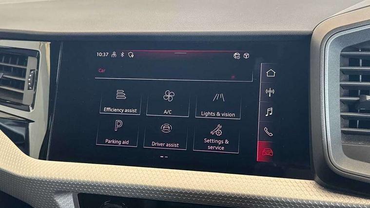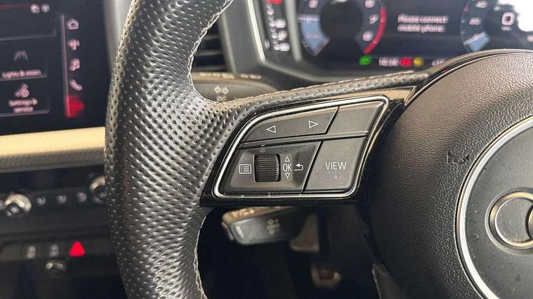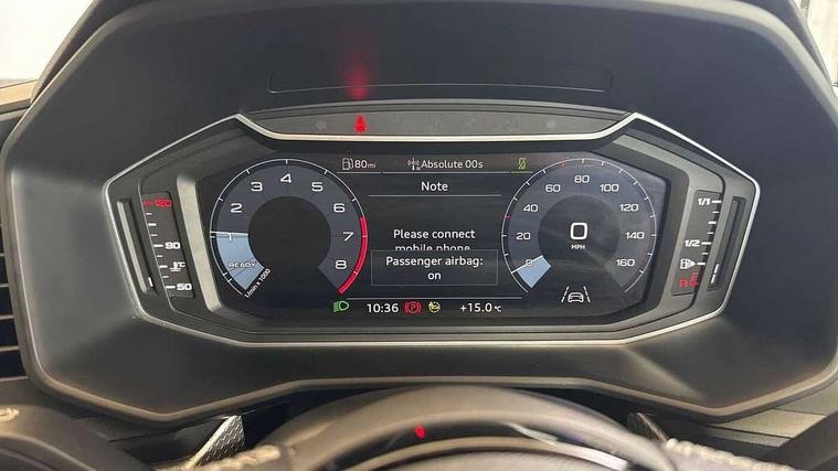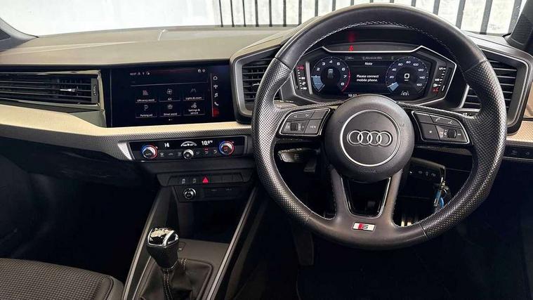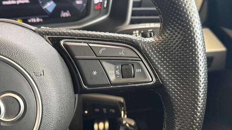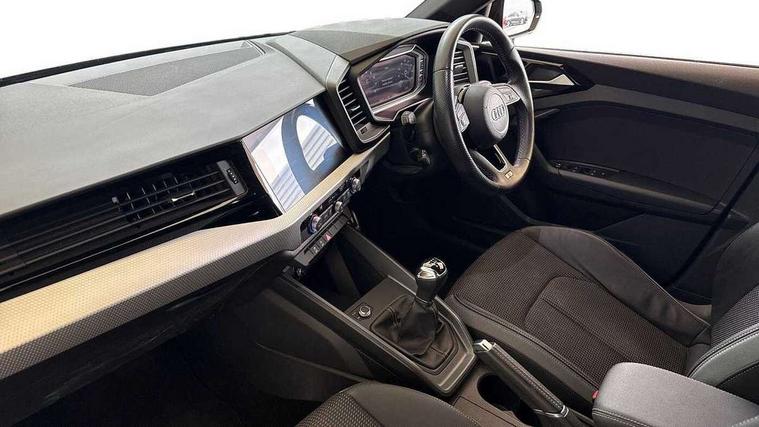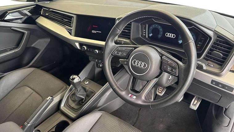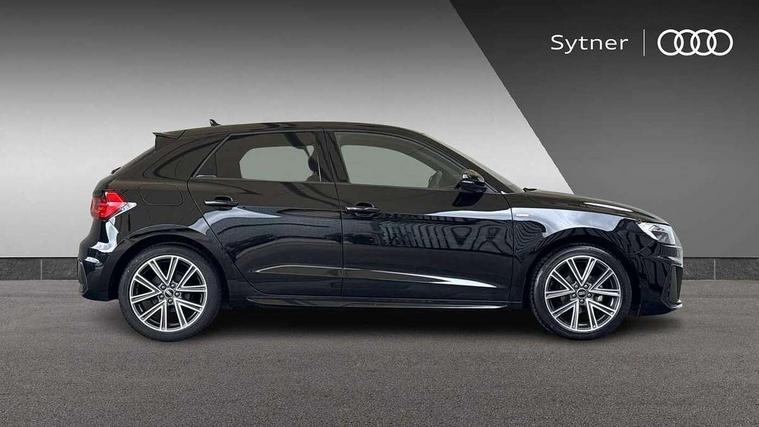 10.25" Digital instrument cluster display classis style instrument dials + speed, odometer, time, outside temperature, telephone menu + fuel level warning, Audi smartphone interface with connect compatible smartphone via USB directly MMI display + Nav, music, third party apps controlled via MMI controller, Automatic start/stop system, Bluetooth interface, Cruise control, Driver's information system, Electromechanical power steering, Emergency e-call, Emergency services call system, Lane departure warning system, Service interval indicator, Speed limiter, Voice control system, Washer fluid level indicator, Sports suspension, 1 x SDXC card reader, 2 x USB type C connection points, DAB Digital radio, MMI radio plus with 8.8" colour MMI display screen and MMI touch, Auto dimming rear view mirror, Body coloured door mirrors, Door sills with aluminium inlays and S Line logo, Electric front and rear windows, Electrically adjustable, heated, folding door mirrors with integrated LED side indicator, Front side air inlets in grained matt black and C frame in titanium black, Heat insulating glass windscreen and side windows, Heated rear windscreen, High level LED brake light, LED headlights with LED rear lights + dynamic rear indicators + headlight adjustment and high beam, turning light + LED daytime running lights, Radiator grille and rear diffuser in matt titanium black, Radiator protective grille frame in matt aluminium silver, Rain and light sensors, Rear fog lights, Rear side wing doors, Rear wing door, Rear wiper, S line badges on front wings, Side front spoiler lips in grained matt black, 12V socket in centre console with two cup holders, 3 rear seats with headrests, 3 seat bench in 2nd row, 40:60 Split folding rear seat or folded fully, Black cloth headlining, Driver and passenger seat with manual height adjust with forward and backwards adjustment, Front and rear black floor mats with contrast stitching in fine silver, Front head restraints, Front passenger seat, Height and reach adjustable steering wheel, ISOFIX child seat mounting for front passenger and outer rear seats including top tether attachment point of outer rear seats, Leather gear knob with aluminium trim, Luggage compartment light with front and rear reading lights, Manually adjustable lumbar support in front seats, Stainless steel pedals, LED interior lighting pack - A1, Luggage compartment pack - A1, S line exterior styling pack - A1 Sportback, 3x3 point rear seatbelts, Brake assist function, Driver and front passenger airbag with front side and head airbags, Electronic Stability Control including ABS, EBD, ASR and EDL, Front passenger airbag deactivation switch, Hill hold assist, Manual rear child locks, Seatbelt height adjustment for front seats, Seatbelt monitoring, Tyre pressure warning light, Warning triangle and first aid kit, Anti theft alarm, Anti theft wheel bolts and loose wheel warning, Audi pre-sense front with pedestrain and cyclist recognition, Immobiliser, Remote central locking with 2 foldaway keys, Aluminium trim for control switches, air vents and digital instrument cluster, Silver grey inlays polygon structure in diamond paint finish, Structured grey accent areas including air vents, door handle recesses and centre console in quartz paint finish,