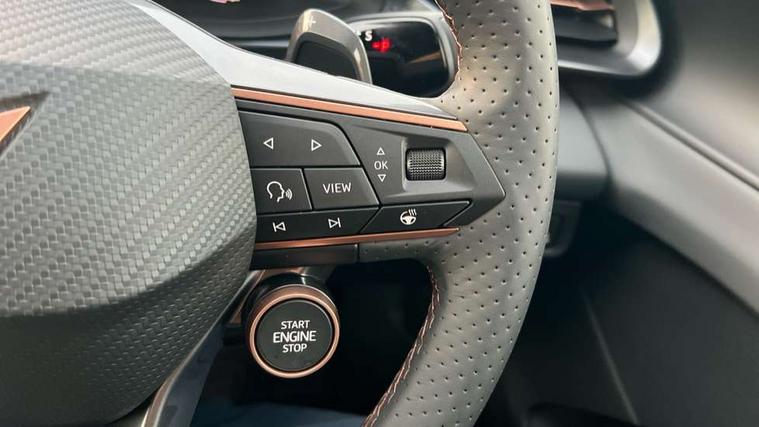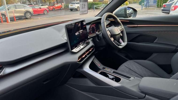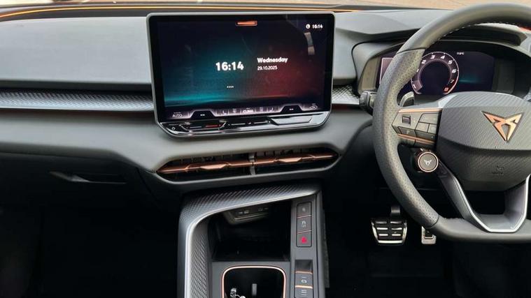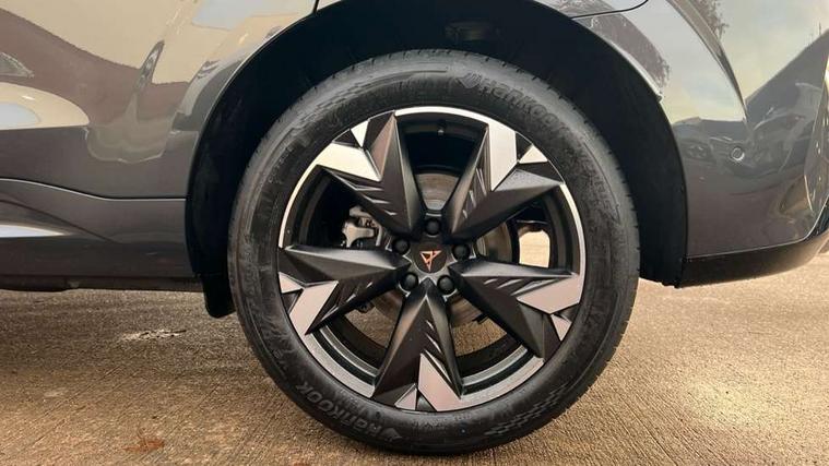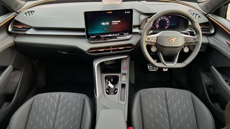 10.25" digital cockpit and configurable dashboard, Adaptive cruise control with follow-to-stop and speed limiter, Advanced driver alert system, Advanced lane assist with semi-automatic vehicle control in a medical emergency and traffic jam assist, Driving profile selection and conventional shock absorber, Dynamic road sign display, E-call, Electric tailgate with virtual pedal, Emergency steering support with turn assist, Four x USB Type C ports (2 in front and 2 in rear), Front and rear parking sensors, Front assist (Forward collision warning with automatic braking) with multifunction camera and front cross traffic assist, Head up Display, Intelligent park assist, Media system with Nav - 12.9" touch display, voice control, full link phone (wired/wireless), DAB and Steering wheel mounted controls, Rear traffic assist, Side and exit assist, Speed sensitive power steering, Start/stop system with regenerative braking, Top view camera (front camera, rear camera, 2 side cameras), Wireless phone charger, Auto dimming rear view mirror, Black roof rails, CUPRA 3D rear lights with ceremony & swiping indicator and illuminated logo, Dark tinted rear windows, Daytime running lights with automatic headlight control and Coming and Leaving home function, Door mirrors with memory function and lowing function on passenger mirror, Dynamic headlight range control, Electric front/rear windows, Electrically adjustable, heated and folding door mirrors, Front fog lamps with cornering function, Heat reflecting windscreen, High beam assist, LED headlamps with signature "CUPRA LED", Rain sensing wipers, Rear fog light on one side, back up light on both sides, Rear side wing doors, Rear wash/wipe, Third brake light, Welcome lights (within exterior mirror housing), 3 seat bench in 2nd row, Black roof lining, Cupra sports pedals, Dinamica cloth upholstery, Driver seat memory function, Electrically adjustable front seats including lumbar support, Front and rear head restraints, Front and rear reading lights X 4, Front centre armrest, Heated front seats, Heated leather wrapped multi function sports steering wheel with tiptronic, Illuminated interior front door sills, Isofix, Operating voltage 12V, Single front passenger seat, Smart wraparound interior lighting, Sunvisors with illuminated mirror, Three zone climate control with control panel in rear, Unsplit rear seat bench, split folding backrest, with centre armrest, Variable luggage/load compartment floor, 3 point seatbelts in front with pretensioner and electric height adjustment, 3 point seatbelts on all rear seats, Brake control system - ESC and brake booster, Child proof door locks, Driver and front passenger airbags, Electronic parking brake, Front and rear disc brakes, Front interaction airbag, Front passenger airbag deactivation switch, Front side airbags with curtain airbags, Pre-crash front and rear seat belt tensioner, window closure and hazard lights, Tyre pressure monitoring system, Visual and acoustic seat belt reminder, electric contact in front and rear, Anti theft alarm, Keyless locking and starting system with keyless access, Locking wheel bolts, Black decorative trims, Chrome interior detailing, 19" Spectrum exclusive machine alloy wheels, Tool kit,