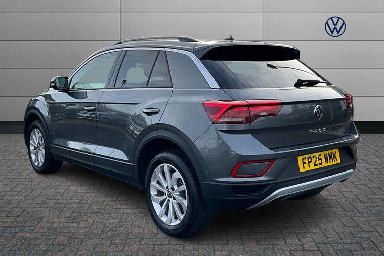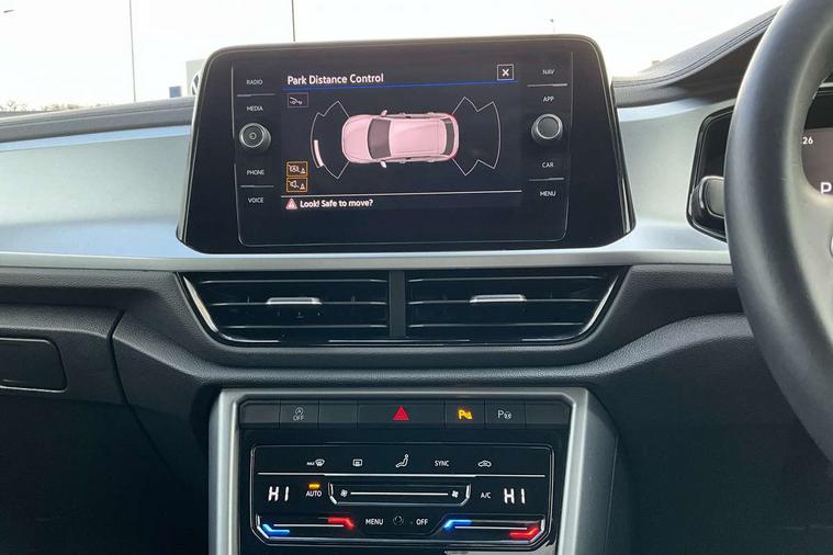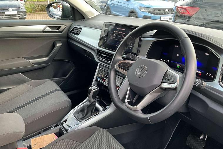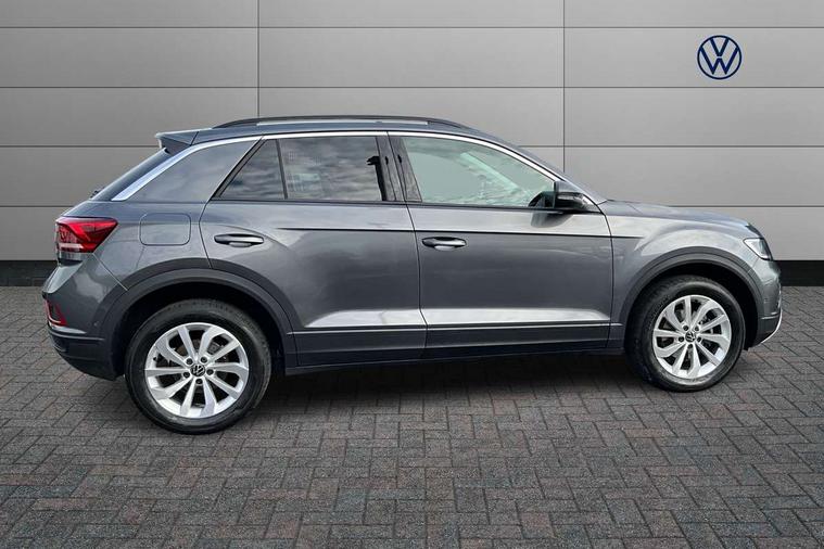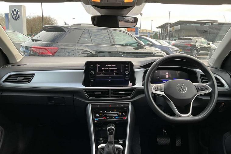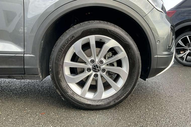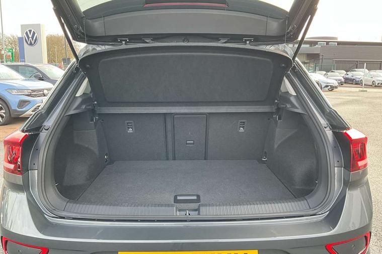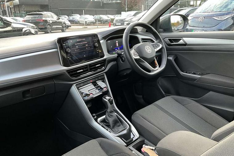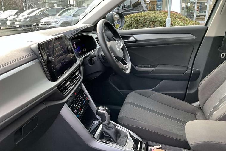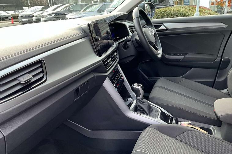 Advanced driver attention and drowsiness monitor, Dynamic road sign display, Emergency call service, Lane keeping system Lane Assist, Mobile phone interface, Modified key software - reduce switch off time for key status change to Long no motion, Online services, Park assist including front and rear parking sensors, Power assisted speed sensitive steering, Rear view camera, Service interval indicator, Tailgate/trunk lid release from outside, Think blue trainer driver tips and journey analysis, Warning sound and light for front seatbelts unfastened, Wireless app connect, Battery regeneration during braking, Front shock absorption, Rear shock absorption chassis with increased ride height, Start/stop function with battery regeneration, DAB Digital radio, Diversity antenna for FM reception, Front and rear 6 speakers, Music playback - MP3, WMA and AAC files, Premium USB cable in choice of either Apple or Android smartphone compatibility, SD card slot, Simultaneous pairing of 2 compatible mobile devices, Title and cover art display, We Connect and We Connect Plus functionality, Auto dimming interior rear view mirror, Automatic hazard lights activation under emergency braking, Automatic headlight control with LED separate daytime running lights with coming/leaving home function, Black roof rails, Body coloured bumpers and radiator grille with chrome trim and front fog lamps with chrome bezel, Body coloured exterior mirror housings and door handles, Electrically adjustable and heated door mirrors, Extended roof spoiler, Exterior mirrors aspherical on driver side, convex on front passenger side, External USB type C socket and charging sockets, Front windscreen wiper with intermittent wipe and 4 position delay, Heated rear window, LED 3rd brake light, LED rear combination lamps, LED rear number plate lights, Power windows with comfort operation and circuit breaker, Privacy glass for rear side windows and rear window, Rain sensor, Rear exhaust tailpipe, Rear fog light on one side and reversing lights on both sides, Rear side wing doors, Rear wash/wipe with intermittent wipe setting, Remote electrically foldable door mirrors, puddle lights and reverse activated passenger's door mirror, 12V power socket in centre console, 3 rear head restraints, 3 seat bench in 2nd row, 4 load lashing points in luggage compartment, Air care climatronic air conditoning system with active combination filter and 2-zone temperature control, Black stitching for floor mats, Ceramique roof liner, Cloth upholstery, Door and side trim panel in cloth, Drawer under drivers seat, Driver/front passenger seat height adjustment, Front centre armrest, Front comfort sports seats, Front cupholders x 2, Front reading light, Front seat back storage pockets, Glove compartment door with light, Instrument lighting, white adjustable panel illumination, Interior ambient lighting and surround lighting, Interior light delay, Isofix child seat preparation, Leather gearshift handle, Load-through provision with cup holder when folded down ('Unsplit rear seat bench, split folding backrest, with centre armrest), Luggage compartment lighting, Lumbar support for driver's and front passengers seat, Non-folding front passenger seat backrest, Single front passenger seat, Storage compartment in left and right luggage area, Storage compartment in rear doors, Storage compartments in driver and front passenger doors, Sunvisors with illuminated vanity mirrors, Variable boot floor, height adjustable and removable, Driver assistance pack without proactive passenger protection - T-Roc Life/Match, 3 point height adj front seatbelts + pretensioners, 3 point seatbelts in outer rear with ECE label, ABS, Child locks on rear doors, City emergency braking and pedestrian monitoring, Driver and front passenger airbag with front passenger airbag deactivation, Driver and front passenger safety-optimised head restraints, Drivers seatbelt reminder, Electronic parking brake, Electronic Stability Control (ESC) inc EDL (Electronic Differential Lock) and ASR (Traction Control), Front and rear passengers curtain airbag system including front side airbags, Front disc brakes, Hill start assist, Predictive pedestrian protection, Rear disc brakes, Two tone horn, Tyre pressure loss indicator, Volkswagen roadside assistance, Alarm with interior protection, Keyless locking and starting system keyless access with safelock, Pewter matt decorative inserts for intrument panel, centre console and door panels at the front, Trims for alloy wheels,
