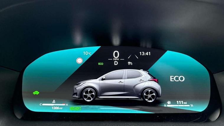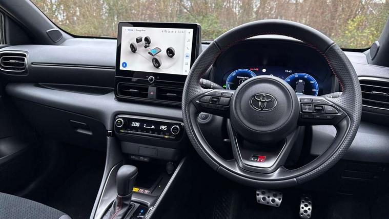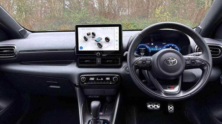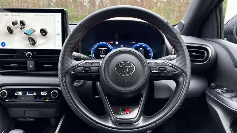 12.3" Digital Combimeter, Adaptive cruise control, Adjustable speed limit with speed warning, Bluetooth connectivity, Colour binocular inspired displays with digital speedometer, E-call, Electric power steering, Hybrid energy display, Lane trace assist, Multi information display switches on steering wheel, Pre-collision system (PCS), Reversing camera, Tailgate, Voice recognition, Wireless charger, Vehicle Stability Control (VSC), 10.5" Toyota smart connect multimedia with wireless smartphone integration incl apple car play and cloud Navigation, 6 speakers, Toyota Touch 3 system with DAB radio, USB connection, Acoustic windscreen glass, Auto high beam assist, Auto windscreen wipers, Automatic headlights, Dark chrome lower front grille, Electric adjustable heated door mirrors, Follow me home headlights, Front auto power windows with anti jam protection, LED daytime running lights, LED front fog lights, LED front light guide, LED Headlights, LED High mounted stop lamp, LED Indicators, LED rear light guide, Manual headlight levelling, Painted chequered front grille with hot stamp in mesh design, Rain sensor, Rear auto power windows with anti jam protection, Rear privacy glass, Rear roof spoiler, Rear side wing doors, Rear wiper, Shark fin antenna, Turning signal integrated indicators in door mirrors, Variable front intermittent wipers, 3 adjustable rear headrests, 3 seat bench in 2nd row, 3 spoke leather steering wheel, 60/40 split folding rear seat, Active headrests, Adjustable boot height, Ambient lighting, Black roof lining, Coat hooks in rear grab handles, Cup holders (2 front & door), Data Communication Module (DCM) connected services, Dual zone automatic air conditioning, Front armrest, Front sport seats, Glovebox, GR embossed in headrests, Height adjustable driver's seat, Height adjustable passenger seat, Isofix seat fixing, Leather gearshift, Map pockets on the backs of the front seats, Pollen filter, Shopping bag hooks, Single front passenger seat, Suede upholstery, Tilt/telescopic steering column, 3 point seatbelts on all rear seats, ABS+EBD+Brake assist, Electronic parking brake, Emergency brake light system (EBS), Front passenger airbag on/off switch, Front seatbelt reminder, Hill start assist control (HAC), Rear child proof door locks, Rear seat belt reminder, Supplemental Restraint System (SRS) 8 airbags: Driver & passenger's airbags, dual side curtain airbags, side impact airbags, front centre airbag, Toyota Safety Sense 3 with over the air updates, Tyre pressure warning system, 2x Master key, Alarm/immobiliser, Keyless smart entry with push button start, Remote AC via MyT, Remote locking via MyT, Remote powered central double locking doors, GR Sport interior styling with accents and exterior styling, Piano black interior trim, Soft touch instrument panel, 18" Black Machined-face, 10 spoke alloys wheels, Space saver spare wheel,