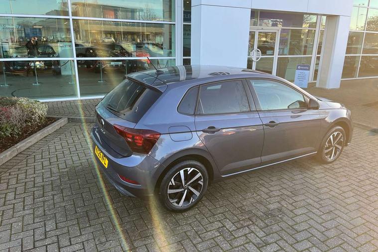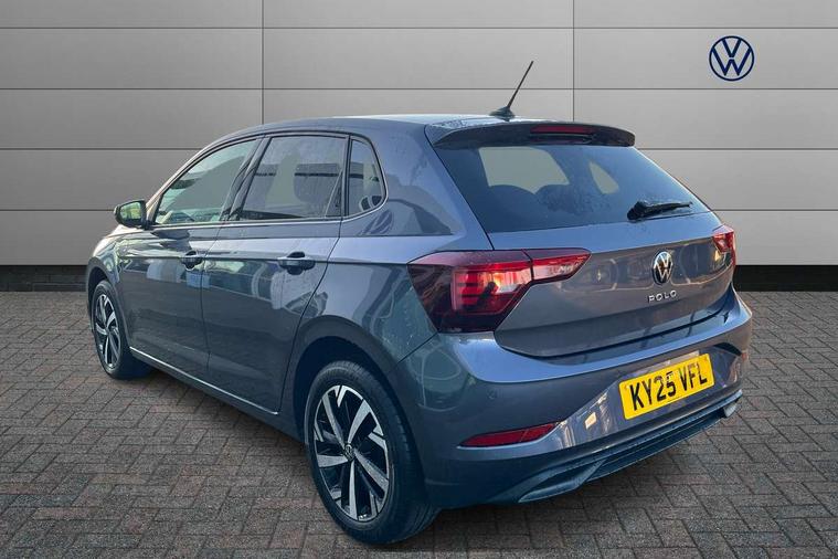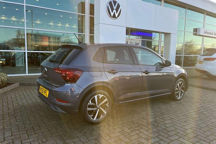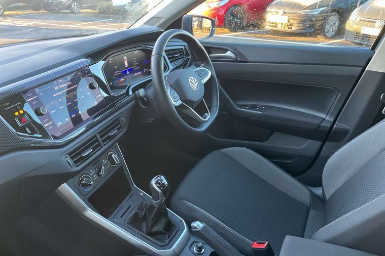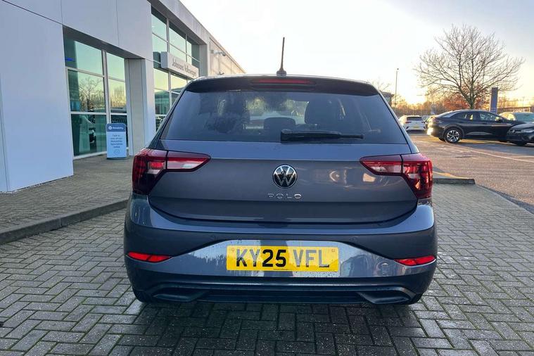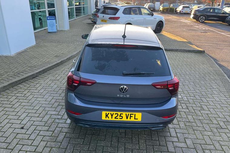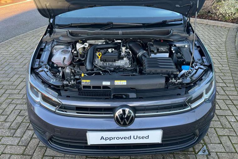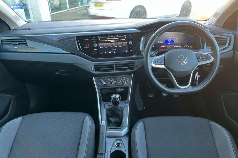 Adaptive cruise control without follow-to-stop and speed limiter, Advanced driver attention and drowsiness monitor, Bluetooth mobile phone interface, Dynamic road sign display, Emergency call service, Multifunction front facing camera for distance control, Park distance control, Power assisted speed sensitive steering, Preparation for navigation system with media and internet package, Preparation for We connect and We connect plus, Rear view camera, Speedo and rev counter, electronic odometer, trip, service interval display and exterior temperature gauge, Standard rear axle, Travel Assist - Lane keeping system and traffic jam assist, Travel assist including emergency assist, Trip computer, Warning signal and warning light for front and rear seatbelts not fastened, Washer fluid level indicator, Wireless app connect, Front wheel drive, Rear shock absorpion, Start-stop system with battery regeneration (recuperation - energy recovery during braking), DAB Digital radio, Diversity antenna for FM reception, Front and rear 6 speakers, Automatic dimming interior rear view mirror, Automatic headlight control with LED separate daytime running lights with coming/leaving home function, Body colour bumpers with chrome inserts, Body colour door handles, Body colour door mirrors, Electric front windows, Engine badge deletion, Headlight range adjustment, Heat insulating and laminated safety glass windshield, LED Headlights, LED rear combination lamps, Power folding adjustable/heated exterior mirrors and front passenger exterior mirror lowering function, Rain sensor, Rear electric windows, Rear fog light, Rear side wing doors, Rear tinted glass from B-pillar backwards approx 65% tinted, Rear windscreen washer and wiper with interval delay, Third brake light, 12V power socket in centre console, 2 front and 2 rear reading lights with switch off delay and dimmer, 2 USB-C ports in the front, 2 USB-C charging sockets on the center console in the rear, 3 rear head restraints, 60/40 split folding rear seat and rear seat bench not split, Ceramique roof lining, Chrome plated radiator grille inserts, air vent surrounds and light switch surrounds, Door and side trim panel, Driver and front passenger seat height adjustment, Driver/passenger sunvisors with illuminated vanity mirrors, Front centre armrest, Front seat backrest storage pockets, Front standard seats, Handbrake lever handle in leather, Hartley/Thomas cloth upholstery, Headliner in recycled material, Isofix child seat preparation easy-fit (for two outer rear seats, and front passenger seat) compatible with I-size, Leather trimmed gear knob, Luggage compartment cover, Luggage compartment lighting, Removable luggage compartment floor, Single front passenger seat, Standard climatic zones, Standard pedal cluster, Three spoke leather wrapped multifunction steering wheel, Light and vision pack - Polo, 3 point height adj front seatbelts + pretensioners, 3 point seat belt for centre rear seat, 3 point seatbelts, outer rear with ECE lable, ABS, Driver and front passenger airbag with front passenger airbag deactivation, Drivers and front passengers safety optimised head restraints, ESC (Electronic stability control) + EDL (Electronic Differntial lock) and ASR (Traction control), Extended and predictive pedestrian/ cyclist protection, Front assist with autonomous emergency braking (for Adaptive Cruise Control ACC up to 130 mph), Front curtain and side airbags with center airbag, Front disc brakes, Hill hold control, Manual child lock in rear doors, Rear drum brakes, Single tone horn, Tyre pressure loss indicator, Alarm with interior protection, Anti-theft alarm system with interior monitoring, backup horn, and towing protection, Anti-theft wheel bolts, Electronic engine immobiliser, Lava stone black gloss/matt decorative inserts in dash and front door panels, 16" Torsby alloy wheels, Low rolling resistance tyres,