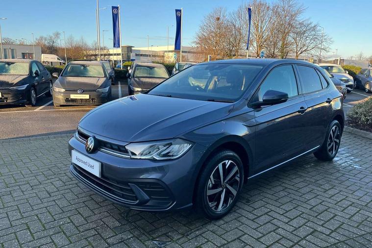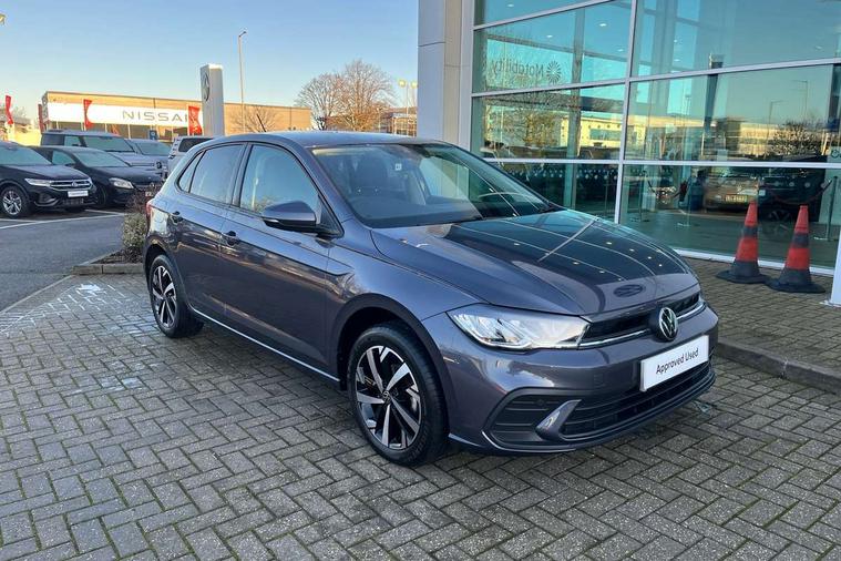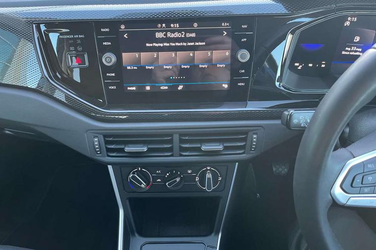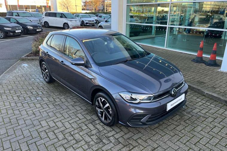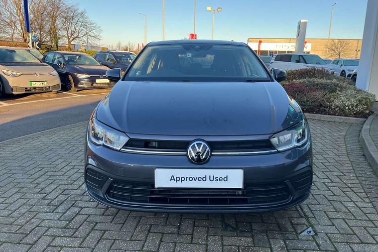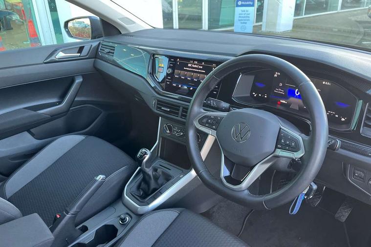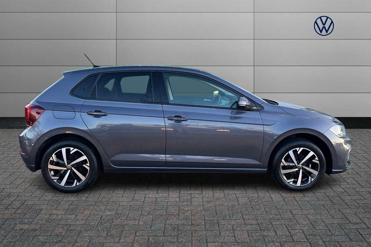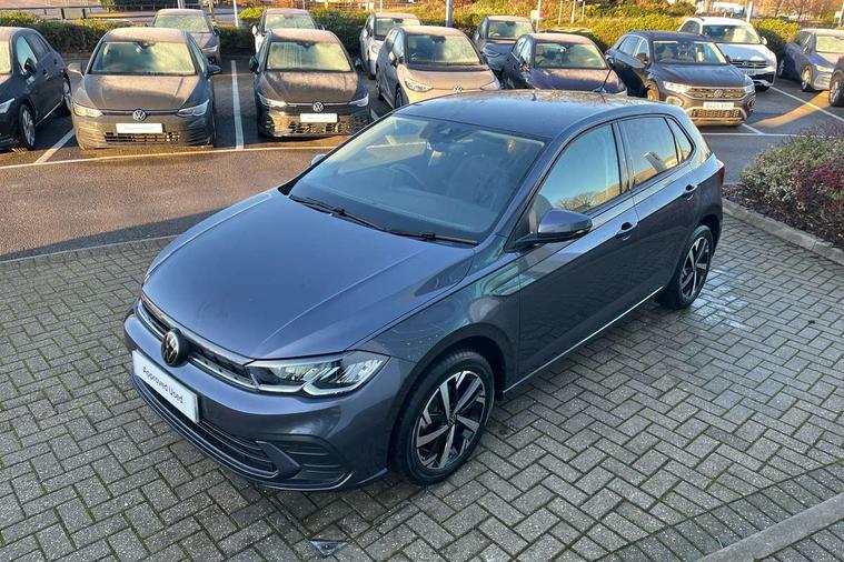 Adaptive cruise control without follow-to-stop and speed limiter, Advanced driver attention and drowsiness monitor, Bluetooth mobile phone interface, Dynamic road sign display, Emergency call service, Multifunction front facing camera for distance control, Park distance control, Power assisted speed sensitive steering, Preparation for navigation system with media and internet package, Preparation for We connect and We connect plus, Rear view camera, Speedo and rev counter, electronic odometer, trip, service interval display and exterior temperature gauge, Standard rear axle, Travel Assist - Lane keeping system and traffic jam assist, Travel assist including emergency assist, Trip computer, Warning signal and warning light for front and rear seatbelts not fastened, Washer fluid level indicator, Wireless app connect, Front wheel drive, Rear shock absorpion, Start-stop system with battery regeneration (recuperation - energy recovery during braking), DAB Digital radio, Diversity antenna for FM reception, Front and rear 6 speakers, Automatic dimming interior rear view mirror, Automatic headlight control with LED separate daytime running lights with coming/leaving home function, Body colour bumpers with chrome inserts, Body colour door handles, Body colour door mirrors, Electric front windows, Engine badge deletion, Headlight range adjustment, Heat insulating and laminated safety glass windshield, LED Headlights, LED rear combination lamps, Power folding adjustable/heated exterior mirrors and front passenger exterior mirror lowering function, Rain sensor, Rear electric windows, Rear fog light, Rear side wing doors, Rear tinted glass from B-pillar backwards approx 65% tinted, Rear windscreen washer and wiper with interval delay, Third brake light, 12V power socket in centre console, 2 front and 2 rear reading lights with switch off delay and dimmer, 2 USB-C ports in the front, 2 USB-C charging sockets on the center console in the rear, 3 rear head restraints, 60/40 split folding rear seat and rear seat bench not split, Ceramique roof lining, Chrome plated radiator grille inserts, air vent surrounds and light switch surrounds, Door and side trim panel, Driver and front passenger seat height adjustment, Driver/passenger sunvisors with illuminated vanity mirrors, Front centre armrest, Front seat backrest storage pockets, Front standard seats, Handbrake lever handle in leather, Hartley/Thomas cloth upholstery, Headliner in recycled material, Isofix child seat preparation easy-fit (for two outer rear seats, and front passenger seat) compatible with I-size, Leather trimmed gear knob, Luggage compartment cover, Luggage compartment lighting, Removable luggage compartment floor, Single front passenger seat, Standard climatic zones, Standard pedal cluster, Three spoke leather wrapped multifunction steering wheel, Light and vision pack - Polo, 3 point height adj front seatbelts + pretensioners, 3 point seat belt for centre rear seat, 3 point seatbelts, outer rear with ECE lable, ABS, Driver and front passenger airbag with front passenger airbag deactivation, Drivers and front passengers safety optimised head restraints, ESC (Electronic stability control) + EDL (Electronic Differntial lock) and ASR (Traction control), Extended and predictive pedestrian/ cyclist protection, Front assist with autonomous emergency braking (for Adaptive Cruise Control ACC up to 130 mph), Front curtain and side airbags with center airbag, Front disc brakes, Hill hold control, Manual child lock in rear doors, Rear drum brakes, Single tone horn, Tyre pressure loss indicator, Alarm with interior protection, Anti-theft alarm system with interior monitoring, backup horn, and towing protection, Anti-theft wheel bolts, Electronic engine immobiliser, Lava stone black gloss/matt decorative inserts in dash and front door panels, 16" Torsby alloy wheels, Low rolling resistance tyres,