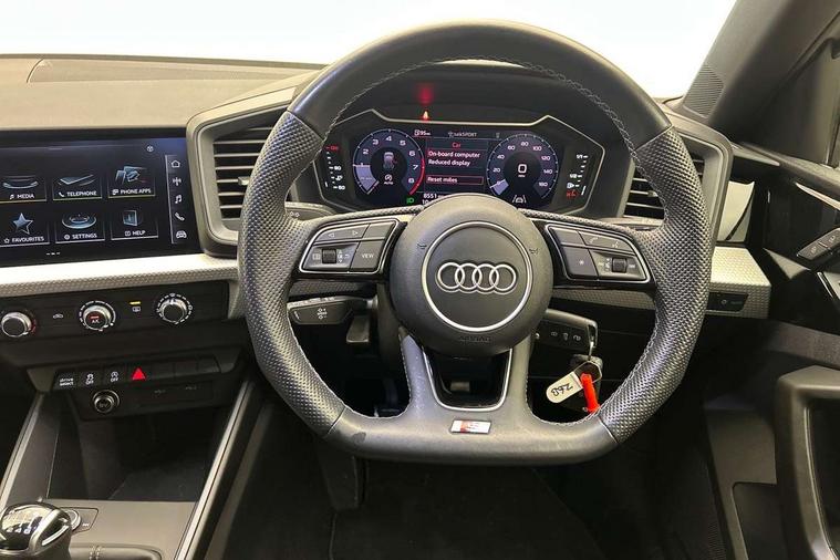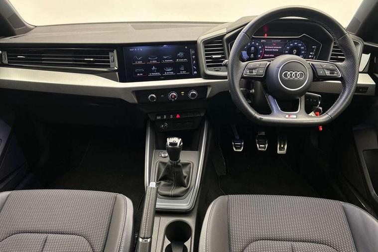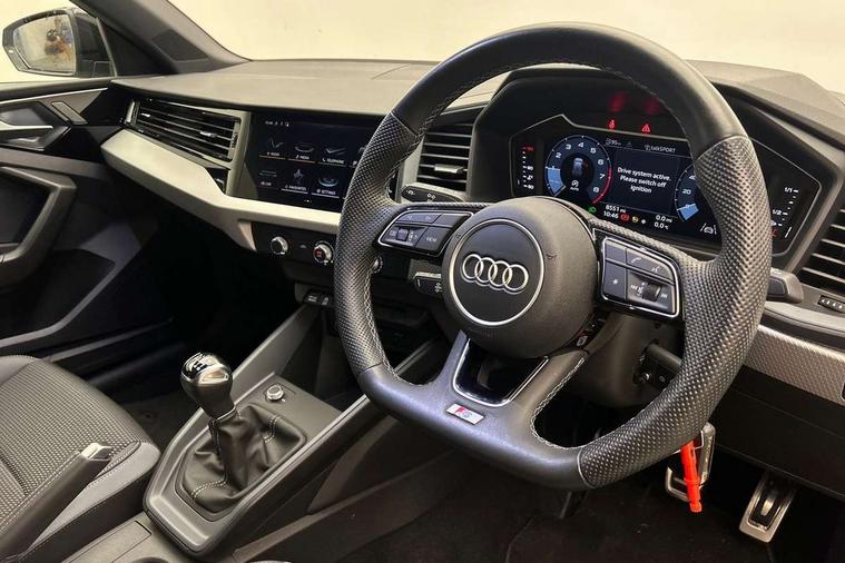 10.25" Digital instrument cluster display classis style instrument dials + speed, odometer, time, outside temperature, telephone menu + fuel level warning, Audi drive select - power steering assistance + engine, Audi smartphone interface with connect compatible smartphone via USB directly MMI display + Nav, music, third party apps controlled via MMI controller, Automatic start/stop system, Bluetooth interface, Cruise control, Driver's information system, Electromechanical power steering, Emergency e-call, Lane departure warning system, Rear parking sensor, Service interval indicator, Speed limiter, Voice control system, Washer fluid level indicator, Sports suspension, 2 x USB type C connection points, 6 passive loudspeakers, DAB Digital radio, MMI radio plus with 10.1" colour MMI display screen and MMI touch, Auto dimming rear view mirror, Black side skirts, Body coloured bumpers, Door sill trims with aluminium inlays and logo, Electric front and rear windows, Electrically adjustable, heated, folding door mirrors with integrated LED side indicator, Front side air inlets in grained matt black and C frame in anthracite black, Front wing badges, Heat insulating glass windscreen and side windows, Heated rear windscreen, High level LED brake light, LED headlights with LED rear lights + dynamic rear indicators + headlight adjustment and high beam, turning light + LED daytime running lights, Privacy glass, Rain and light sensors, Rear fog lights, Rear side wing doors, Rear wiper, Side front spoiler lips in grained matt black, 12V socket in centre console with two cup holders, 3 rear seats with headrests, 3 seat bench in 2nd row, 3 spoke flat bottomed multi-function plus leather steering wheel with S badging, grips in preforated leather and contrast stitching, 40:60 Split folding rear seat or folded fully, Black cloth headlining, Driver and passenger seat with manual height adjust with forward and backwards adjustment, Front and rear black floor mats with contrast stitching in fine silver, Front head restraints, Front passenger seat, Height and reach adjustable steering wheel, ISOFIX child seat mounting for front passenger and outer rear seats including top tether attachment point of outer rear seats, Leather gear knob with aluminium trim, Leather handbrake grip, Luggage compartment light with front and rear reading lights, Manual air conditioning, Manually adjustable lumbar support in front seats, Stainless steel pedals, Black styling pack - A1 Sportback Black Edition, LED interior lighting pack - A1, Luggage compartment pack - A1, 3x3 point rear seatbelts, Audi pre-sense front with pedestrain and cyclist recognition, Brake assist function, Driver and front passenger airbag with front side and head airbags, Electronic Stability Control including ABS, EBD, ASR and EDL, Front passenger airbag deactivation switch, Hill hold assist, Manual rear child locks, Seatbelt height adjustment for front seats, Seatbelt monitoring, Tyre pressure warning light, Warning triangle and first aid kit, Anti theft alarm, Anti theft wheel bolts and loose wheel warning, Immobiliser, Remote central locking with 2 foldaway keys, Aluminium trim for control switches, air vents and digital instrument cluster, Black dashboard, Silver grey inlays polygon structure in diamond paint finish, Structured grey accent areas including air vents, door handle recesses and centre console in quartz paint finish,