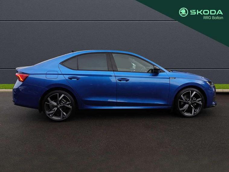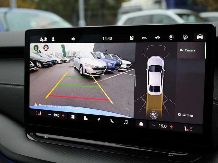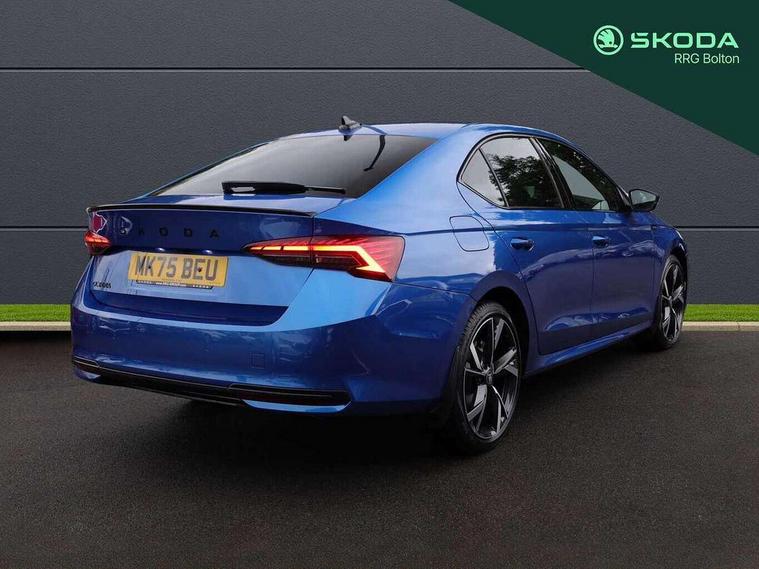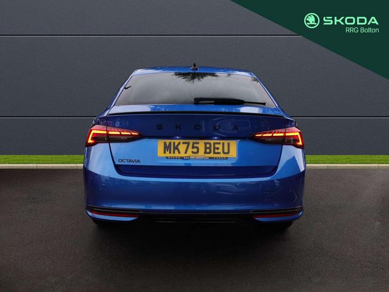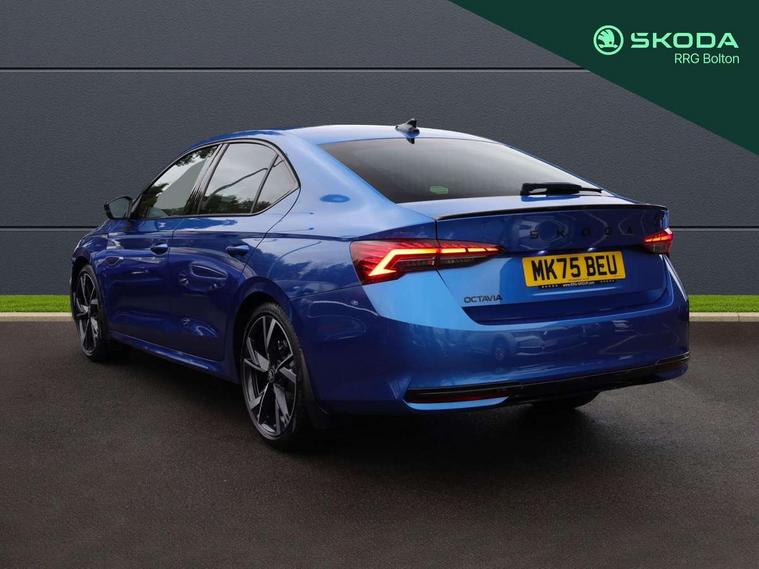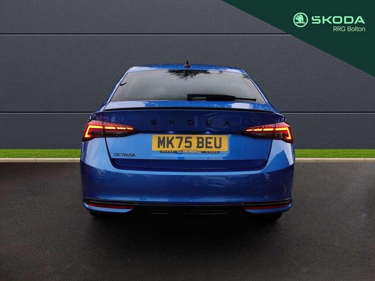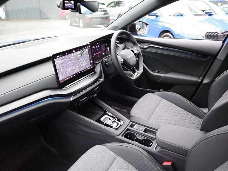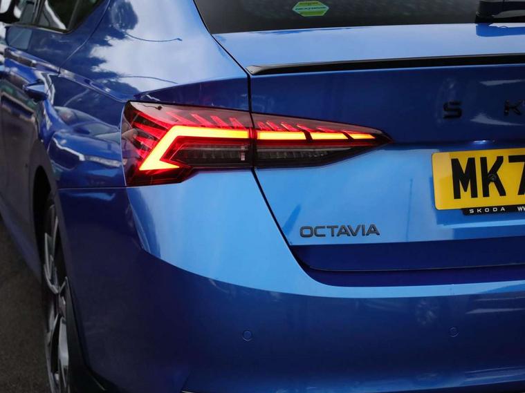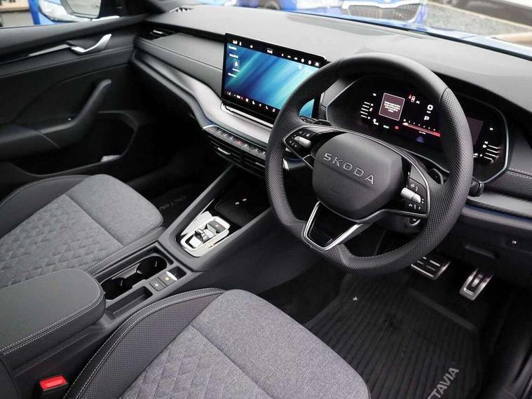 1x USB Typc C port in rear view mirror, 4x USB Type C ports - 2x in front centre console and 2x in rear (45W), Drive mode selection, Driver fatigue sensor, eCall emergency system, Front assist system, Progressive dynamic steering, Traffic sign recognition, Turn Assist, Virtual Cockpit - 10.25" digital display, Voice control system, Wireless charging (15W) with cooling function, Wireless SmartLink for Apple CarPlay and Android Auto, Sports suspension with 15mm lower, 13" touchscreen display with navigation, DAB Digital radio, Aero front windscreen wipers with intermittent function, Auto dimming rear view mirror, Body colour bumpers, Body colour door handles, Chrome strip in lower front bumper, Electric front and rear windows, Exterior gloss black sports styling including front grille, window surrounds, door mirrors and badging, Gloss black diffuser, Gloss black spoiler, Heated rear windscreen, High beam control, High level third brake light, Ice scraper in fuel cap, LED daytime running lights, Logo projection in front doors, Rain and light sensors, Rear fog light on one side and reversing lights on both sides, Rear privacy glass, Rear side wing doors, Rear wiper, 12 volt socket in boot, 3 rear headrests, 3 seat bench in 2nd row, 4 foldable roof handles, Aluminium pedals, Boot net programme, Front head restraints, Front sport seats, Heated front seats, Illuminated glovebox, Interior door handles in dark chrome, Jumbo Box storage, Luggage compartment lighting x2 lights, Mechanical rear seat release from boot, Parcel shelf - folding, Single front passenger seat, Steering wheel in black leather with black stitching, Storage compartments in left and right of boot, Sun visors with mirrors, Sunglasses storage, Three spoke leather sports multifunction steering wheel with paddles, Ticket holder, Umbrella in door panel, Unsplit rear bench seat, split folding backrest with centre armrest with cupholder, SportLine Design Selection pack - Octavia, 3x3 point rear seat belts, Alarm with interior monitoring, tilt sensor and back up horn, Curtain airbags and front side airbags, Driver and front passenger airbags, Drivers knee airbag, Electronic parking brake, ESC including ABS, EBV, MSR, ASR, EDS, HBA, DSR, Front central airbag, Hill hold assist, ISOFIX on front passenger seat and outer rear seats, Passenger airbag deactivate switch, Three point seat belts in front and rear, Two tone horn, Tyre pressure monitor, Visual and acoustic seat belt reminder, Warning reflectors in front door, Anti-theft wheel bolts, Keyless entry and start/stop, Remote central locking, Gloss black air vent surrounds,