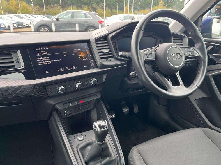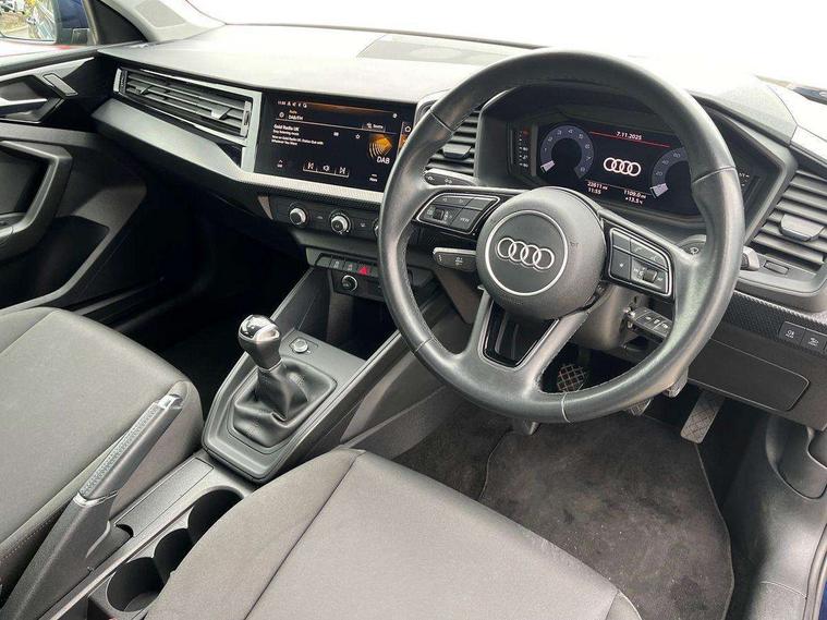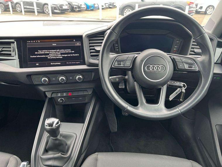 10.25" Digital instrument cluster display classis style instrument dials + speed, odometer, time, outside temperature, telephone menu + fuel level warning, Audi smartphone interface with connect compatible smartphone via USB directly MMI display + Nav, music, third party apps controlled via MMI controller, Automatic start/stop system, Bluetooth interface, Driver's information system, Electromechanical power steering, Emergency e-call, Emergency services call system, Lane departure warning system, Service interval indicator, Speed limiter, Voice control system, Washer fluid level indicator, Dynamic suspension, 1 x SDXC card reader, 2 x USB type C connection points, 6 passive loudspeakers, DAB Digital radio, MMI radio plus with 8.8" colour MMI display screen and MMI touch, Auto dimming rear view mirror, Body coloured bumpers, Body coloured door mirrors, Electric front and rear windows, Electrically adjustable, heated, folding door mirrors with integrated LED side indicator, Front side air inlets with front spoiler lip and rear diffuser in matt black grained, Heat insulating glass windscreen and side windows, Heated rear windscreen, High level LED brake light, LED headlights with LED rear lights + dynamic rear indicators + headlight adjustment and high beam, turning light + LED daytime running lights, Radiator grille in matt black, Rain and light sensors, Rear fog lights, Rear side wing doors, Rear wing door, Rear wiper, 12V socket in centre console with two cup holders, 3 rear seats with headrests, 3 seat bench in 2nd row, 3 spoke leather multifunction plus steering wheel, 40:60 Split folding rear seat or folded fully, Air vents, door handle recesses and centre console in black, Delta cloth upholstery, Driver and passenger seat with manual height adjust with forward and backwards adjustment, Front head restraints, Front passenger seat, Front/rear floor mats, Height and reach adjustable steering wheel, ISOFIX child seat mounting for front passenger and outer rear seats including top tether attachment point of outer rear seats, Leather gear knob with aluminium trim, Leatherette handbrake grip, Luggage compartment light with front and rear reading lights, Manual air conditioning, Titanium grey cloth headlining, Luggage compartment pack - A1, 3x3 point rear seatbelts, Audi pre-sense front with pedestrain and cyclist recognition, Brake assist function, Driver and front passenger airbag with front side and head airbags, Electronic Stability Control including ABS, EBD, ASR and EDL, Front passenger airbag deactivation switch, Hill hold assist, Manual rear child locks, Seatbelt height adjustment for front seats, Seatbelt monitoring, Tyre pressure warning light, Warning triangle and first aid kit, Anti theft alarm, Anti theft wheel bolts and loose wheel warning, Immobiliser, Remote central locking with 2 foldaway keys, Black inlays polygon structure, 15" 5 arm design alloy wheels,