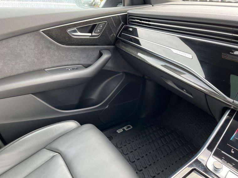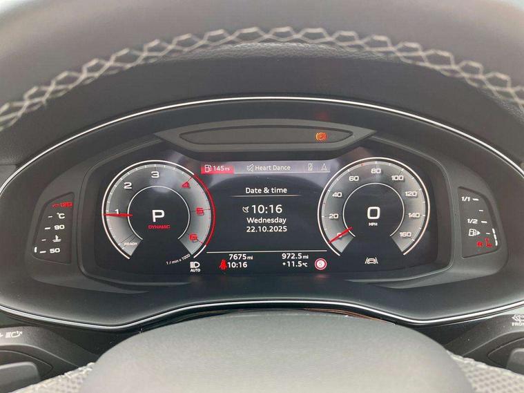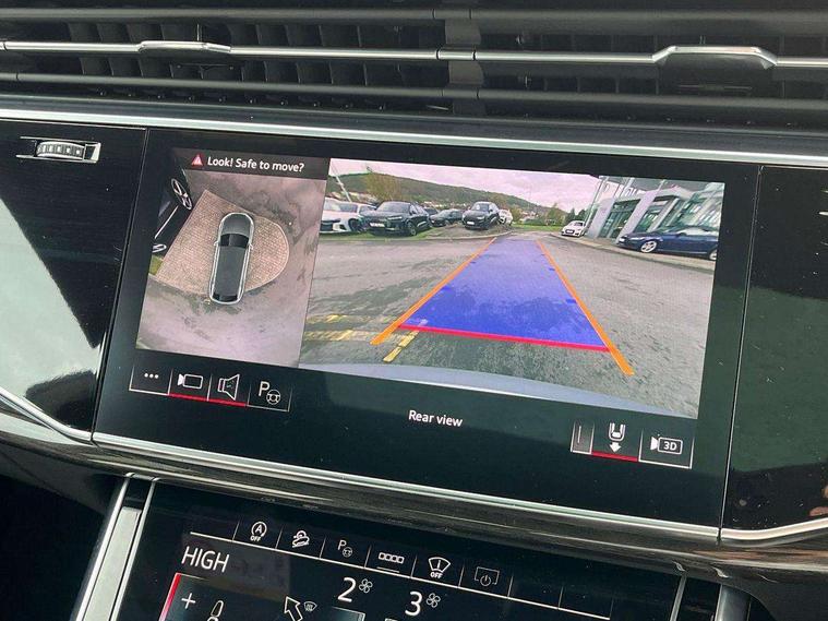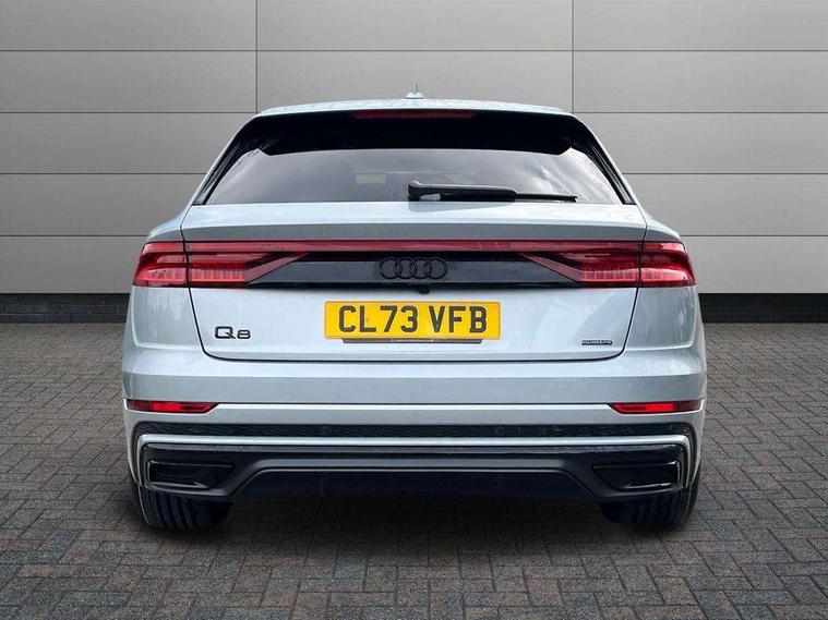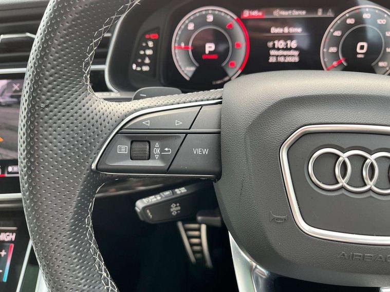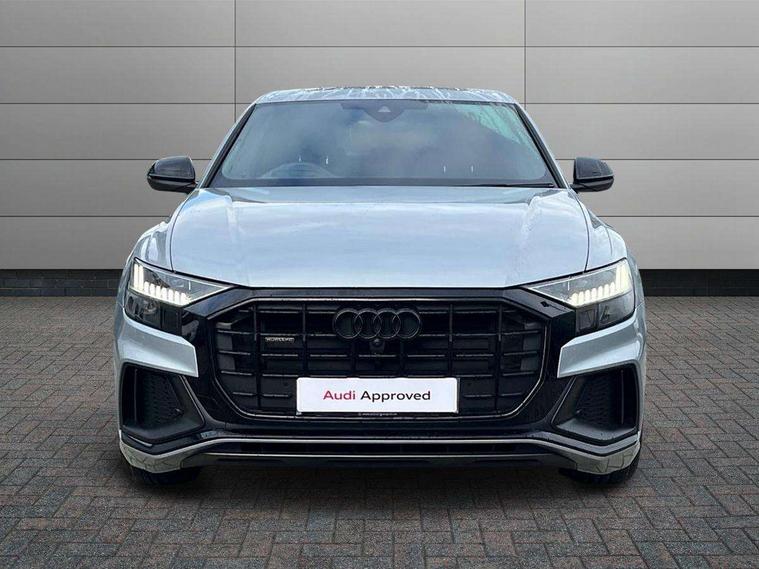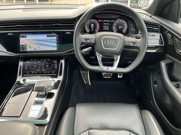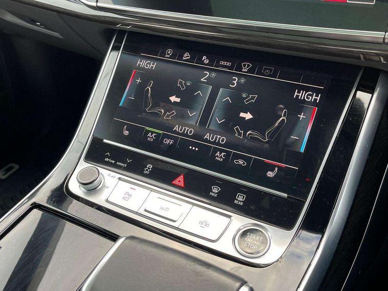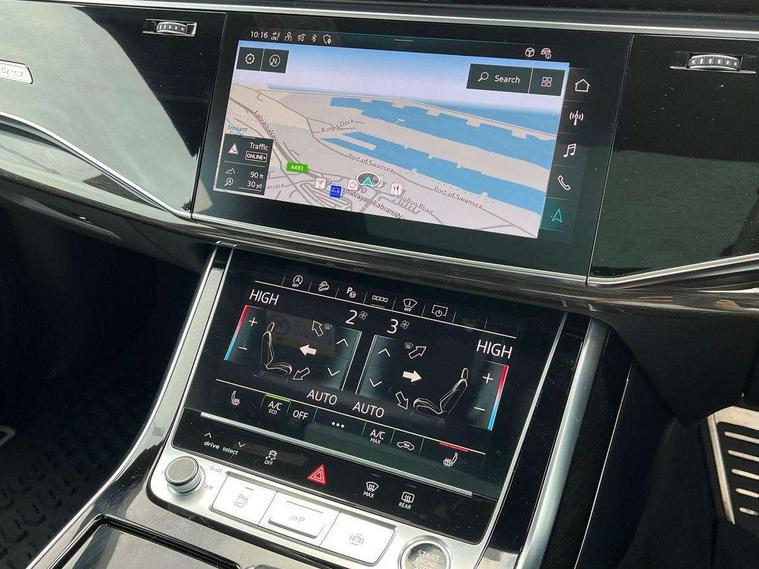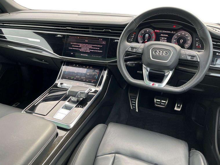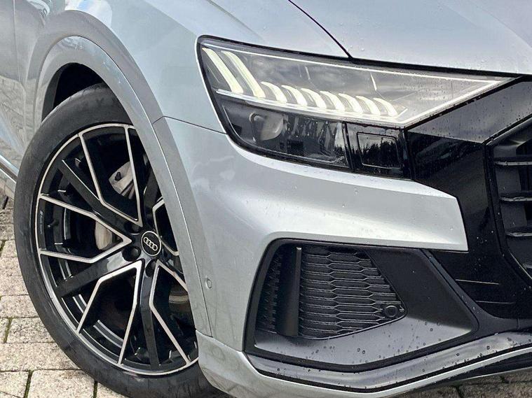 10.1" and 8.6" Dual colour touchscreens, 2 USB C ports with charging functionality in the rear, 360 camera, Audi connect safety and service (e-call), Audi connect with Amazon Alexa Integration, Audi drive select, Audi phone box light with wireless charging, Audi virtual cockpit - 12.3" high resolution LCD display with fully customisable instrument cluster, Automatic start/stop system, Electro-mechanical PAS, Head up Display, Low washer fluid indicator, MMI - Multi Media Interface control system, MMI navigation plus with MMI touch, Natural voice recognition, On board computer, Operating buttons in black, glass look with haptic feedback, Power operated tailgate, Remote park assist plus, Service interval indicator, Smartphone interface includes wireless Apple carplay/Android Auto, 48V Mild hybrid technology, Adaptive sport air suspension, Diesel particulate filter, Quattro all wheel drive with self locking centre differential, Audi music interface with 2 USB ports with charge and data functions, Aux-in socket, Bang + Olufsen sound system, DAB Digital radio, 3rd brake light, Acoustic windscreen, Aluminium window trim, Audi HD Matrix LED headlights with dynamic front and rear indicators, Auto dimming frameless rear view mirror, Body colour door mirrors, Coming/leaving home lighting function, Electric front+rear windows, Electric panoramic glass sunroof, Electrically folding auto dimming/adjustable/heated door mirrors with memory function, LED side indicators and kerb view function for passenger side, Headlight washers, Heat insulating glass in windshield, Illuminated door sill trims with S line logo, LED signature daytime running lights, Platinum grey front spoiler lip and diffuser insert with honeycomb grille in black, Privacy glass - dark tinted rear and rear side windows from B-pillar backwards, Rain and light sensors, Rear side wing doors, Rear wiper, S line badges on front wings, S Line body styling, S line bumpers in full body colour paint finish, S line roof spoiler, S Line side skirts, S line side ventilation grille, 3 bench rear seats in 2nd row, 4 zone deluxe automatic climate control, 4-way lumbar support for front seats, 40:20:40 split folding rear bench seat, Audi phone box light, Black cloth headlining, Comfort front centre armrest, Driver seat memory function, Electric luggage compartment cover, Electrically adjustable front seats, Front head restraints, Front/rear floor mats, Heated front and outer rear seats, ISOFIX child seat mounting for front passenger seat and 2 outer rear seats with top tether child seat mounting for all 3 rear seats, Luggage compartment sill protection in stainless steel, Rear centre armrest with 2 cupholders, Rear headrests, Seat cushion displaceable by 100mm in the ratio 60:40, Single front passenger seat, Stainless steel pedals, Sunvisors with illuminated vanity mirrors, Ambient lighting package plus - Q8, 3 point seatbelts on all seats, Audi pre sense front, Child locks on rear doors, Driver and front passenger, front side and curtain airbags, Electromechanical parking brake, Electronic Stability Control (ESC) including ABS, ASR and EDL, Front passenger airbag deactivation, Hill descent control, Hill hold assist, Predictive pedestrian protection, Seatbelt monitoring, Traction control, Tyre pressure loss indicator, Warning triangle and first aid kit, Advanced key, Anti theft alarm with tow away protection, Anti-theft wheel bolts and wheel loosening detection, Immobiliser, Dark matt brushed aluminium inlay, Tool kit, Tyre repair kit,
