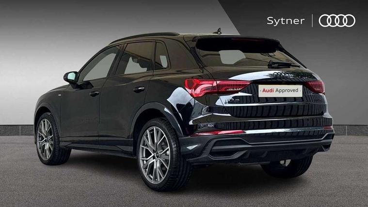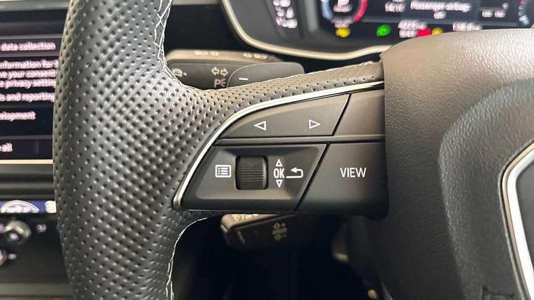 Amazon alexa Integration, Audi connect safety and service, Audi drive select, Audi lane departure warning, Audi Virtual Cockpit - 10.25" display, Bluetooth interface, Camera based traffic sign recognition, Distraction and Fatigue warning, Legal emergency call, MMI Navigation Plus with high resolution 10.1 inch touchscreen colour display, Power operated tailgate, Progressive steering, Service interval indicator, Smartphone interface includes wireless Apple carplay/Android Auto, Start stop system with recuperation, Voice control system with natural language interaction, Diesel particulate filter, Sports suspension, 2 USB-C ports with charge and data functions, 6 passive loudspeakers, DAB digital radio module, Acoustic windscreen, Audi Beam uses LEDs to project the Audi logo onto the ground as you exit your Q3, Auto dimming door mirrors, Auto dimming frameless rear view mirror, Black roof rails, Electrically folding, adjustable and heated door mirrors with integrated LED side indicators and kerb view function for passenger side, Front and rear electric windows, Front fog lights, Grille vertical bars in aluminium silver/Matt, High gloss black finish B and C pillars, LED Dynamic rear indicators, LED headlights with LED daytime running lights, LED rear lights, LED third brake light, Privacy glass dark tinted rear and rear-side windows (from B-pillar backwards), Rain and light sensors, Rear diffuser grille in grained matt black, Rear diffuser strip in matt anthracite black, Rear side wing doors, Rear wiper, S line bumpers in contrasting Manhattan grey, Variable front intermittent wipers, 12V socket in rear centre console, 3 seat bench in 2nd row, 40:20:40 folding with manual adjustment for 60:40 forwards/backwards position and backrest angle, Adjustable rear seat bench/backrest with centre armrest and cupholder, Black cloth headlining, Dual zone electronic climate control, Electric lumbar support, Front and rear black floor mats with contrast stitching in rock grey, Front and rear headrests, Front centre armrest, Height and reach adjustable steering wheel, Illuminated door sill trims with S logo, ISOFIX child seat mounting for front passenger with airbag deactivation and outer rear seat including top tether attachment point for outer rear seats, Manual front seats with height adjustment, Perforated leather gearknob, Single front passenger seat, Stainless steel luggage compartment sill finisher, Stainless steel pedals, Twin leather upholstery with front sport seats + S embossing, Black styling pack - Q3, Non smoking pack - Q3, 3x3 point rear seatbelts, 6 airbags - Driver, front passenger, curtain and side windows, Audi pre-sense front with pedestrain and cyclist recognition, Electrically operated child locks on rear doors, Electromechanical parking brake, Electronic stabilisation control including ABS, ASR and EDL, Front seatbelt reminder, Hill descent control, Hill hold assist, Pre sense basic, Seatbelt monitoring, Tyre pressure warning, Warning triangle and first aid kit, Anti theft wheel bolts, Immobiliser, Remote central locking, Thatcham approved category 1 anti theft alarm, Aluminium look interior elements, Detail dashboard around MMI touch colour display in glass look, black with surround in aluminium look, Leatherette door armrest, Piano black inlay,