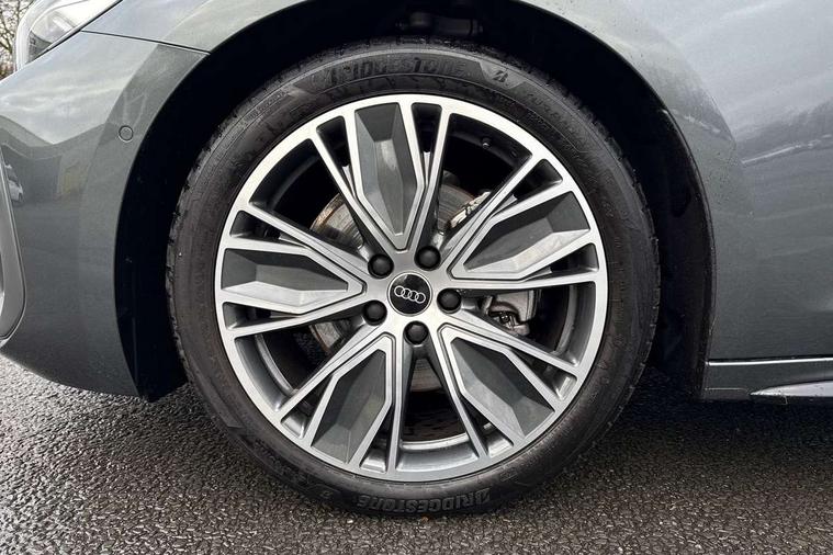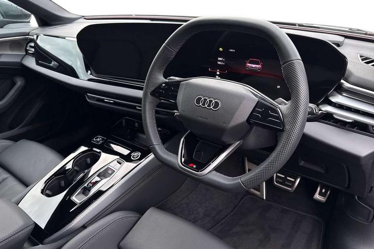 Adaptive cruise control, Advanced driver attention and fatigue montior, Audi application store, Audi assistant, Audi connect emergency call and service, Audi drive select, Audi smartphone interface, Audi virtual cockpit plus with 11.9" OLED colour display, Automatic start/stop system with coasting functionality, Camera based traffic sign recognition, Intersection assist, Lane departure warning, MMI navigation plus with high resolution 14.5" OLED touchscreen colour display, Park assist plus, Parking system plus with 360 display, Progressive steering with servotronic, Rear view camera, Swerve assist and turn assist, Traffic sign based speed limiter, Sports suspension lowered by 20mm, 2 USB-C ports in both the front and rear, Audi sound system impressive sound with 10 loudspeakers including centre speaker and subwoofer, 6-channel amplifier with a total output of 180 watts, DAB digital radio reception, Smartphone compartment with wireless charging, Aluminium roof rails, Aluminium window trims, Auto dimming rear view mirror, Body colour door mirrors, Door mirrors - electrically adjustable, heated, folding and auto dimming on both sides, Front and rear electric windows, Front door sill trims with aluminium inlays, illuminated with 'S' logo, High beam assist, LED headlights Plus incl. digital daytime running lights, turning light, all-weather light, motorway light, manouevring light and intersection light, LED rear lights pro incl. dynamic rear indicators and illuminated light strip with animated coming and leaving home function, LED third brake light, Privacy glass, Rear and side windows with heat insulating glass, Rear side wing doors, Rear wash/wipe, S Line badges on the front wings, S line bumpers, radiator grille and diffuser in phantom black and diffuser insert in matt anthracite, White rhombus logo projection light in exterior mirrors, Windscreen with acoustic glazing, 3 rear headrests, 3 seat rear bench, 3 spoke leather steering wheel with multi-function buttons with touch control, flattened on top and bottom, with S badging and contrast stitching, 3-zone automatic climate control, 40:20:40 split folding rear seat bench with centre armrest and cup holders, Comfort front centre armrest, Front and rear floor mats, Front seats with manual adjustment for position and 4-way electric lumbar support, Front sport seats with integrated headrest and S embossed logo, Headlining in black cloth, Heated front seats, i-Size child seat mounting on the front passenger side and outer rear seats, i-Size and top tether on the outer rear seats, Luggage compartment lid, electrically opening and closing, Manual steering column height and depth adjustment, Single front passenger seat, Stainless steel pedals and footrest, Steering wheel grips in perforated leather and shift paddles, Ambient lighting package plus - A5, 3x3 point rear seat belts, Driver airbag, Electric child safety locks, First aid kit with warning triangle and vests, Front emergency brake assist, Front passenger airbag, Front passenger airbag deactivation, Front side airbags with head airbag system and front interaction airbag, Hill hold assist, Seat belt monitoring with rear seat occupant reminder, Tyre pressure loss indicator, Anti theft alarm, Anti-theft wheel bolts, Keyless Go, Accent surfaces and control buttons in gloss black, Black dashboard with contrast stitching, Inlays in matt brushed aluminium with linear embossing, anthracite, Softwrap in leatherette with contrast stitching, Upper and lower interior elements in leatherette, Tyre repair kit,
