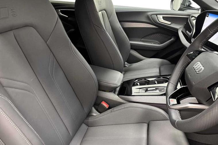 Adaptive cruise control, Advanced driver attention and fatigue montior, Audi application store, Audi assistant, Audi connect emergency call and service, Audi drive select, Audi smartphone interface, Audi virtual cockpit plus with 11.9" OLED colour display, Automatic start/stop system with coasting functionality, Camera based traffic sign recognition, Intersection assist, Lane departure warning, MMI navigation plus with high resolution 14.5" OLED touchscreen colour display, Park assist plus, Parking system plus with 360 display, Progressive steering with servotronic, Rear view camera, Swerve assist and turn assist, Traffic sign based speed limiter, Sports suspension lowered by 20mm, 2 USB-C ports in both the front and rear, Audi sound system impressive sound with 10 loudspeakers including centre speaker and subwoofer, 6-channel amplifier with a total output of 180 watts, DAB digital radio reception, Smartphone compartment with wireless charging, Aluminium roof rails, Aluminium window trims, Auto dimming rear view mirror, Body colour door mirrors, Door mirrors - electrically adjustable, heated, folding and auto dimming on both sides, Front and rear electric windows, Front door sill trims with aluminium inlays, illuminated with 'S' logo, High beam assist, LED headlights Plus incl. digital daytime running lights, turning light, all-weather light, motorway light, manouevring light and intersection light, LED rear lights pro incl. dynamic rear indicators and illuminated light strip with animated coming and leaving home function, LED third brake light, Privacy glass, Rear and side windows with heat insulating glass, Rear side wing doors, Rear wash/wipe, S Line badges on the front wings, S line bumpers, radiator grille and diffuser in phantom black and diffuser insert in matt anthracite, White rhombus logo projection light in exterior mirrors, Windscreen with acoustic glazing, 3 rear headrests, 3 seat rear bench, 3 spoke leather steering wheel with multi-function buttons with touch control, flattened on top and bottom, with S badging and contrast stitching, 3-zone automatic climate control, 40:20:40 split folding rear seat bench with centre armrest and cup holders, Comfort front centre armrest, Front and rear floor mats, Front seats with manual adjustment for position and 4-way electric lumbar support, Front sport seats with integrated headrest and S embossed logo, Headlining in black cloth, Heated front seats, i-Size child seat mounting on the front passenger side and outer rear seats, i-Size and top tether on the outer rear seats, Luggage compartment lid, electrically opening and closing, Manual steering column height and depth adjustment, Single front passenger seat, Stainless steel pedals and footrest, Steering wheel grips in perforated leather and shift paddles, Ambient lighting package plus - A5, 3x3 point rear seat belts, Driver airbag, Electric child safety locks, First aid kit with warning triangle and vests, Front emergency brake assist, Front passenger airbag, Front passenger airbag deactivation, Front side airbags with head airbag system and front interaction airbag, Hill hold assist, Seat belt monitoring with rear seat occupant reminder, Tyre pressure loss indicator, Anti theft alarm, Anti-theft wheel bolts, Keyless Go, Accent surfaces and control buttons in gloss black, Black dashboard with contrast stitching, Inlays in matt brushed aluminium with linear embossing, anthracite, Softwrap in leatherette with contrast stitching, Upper and lower interior elements in leatherette, Tyre repair kit,