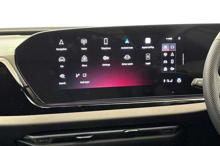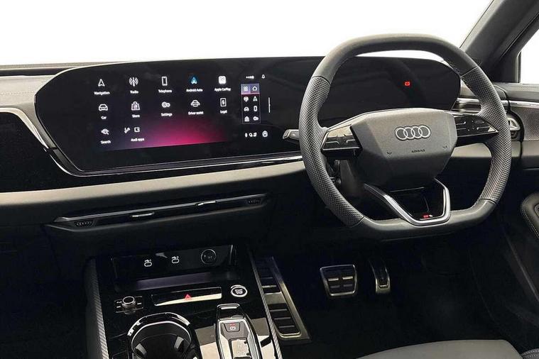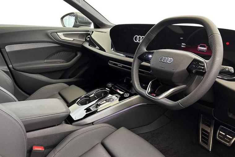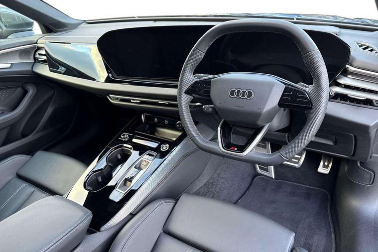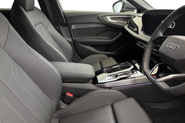 Adaptive cruise control, Advanced driver attention and fatigue montior, Audi application store, Audi assistant, Audi connect emergency call and service, Audi drive select, Audi smartphone interface, Audi virtual cockpit plus with 11.9" OLED colour display, Automatic start/stop system with coasting functionality, Camera based traffic sign recognition, Intersection assist, Lane departure warning, MMI navigation plus with high resolution 14.5" OLED touchscreen colour display, Park assist plus, Parking system plus with 360 display, Progressive steering with servotronic, Rear view camera, Swerve assist and turn assist, Traffic sign based speed limiter, Sports suspension lowered by 20mm, 2 USB-C ports in both the front and rear, Audi sound system impressive sound with 10 loudspeakers including centre speaker and subwoofer, 6-channel amplifier with a total output of 180 watts, DAB digital radio reception, Smartphone compartment with wireless charging, Aluminium roof rails, Aluminium window trims, Auto dimming rear view mirror, Body colour door mirrors, Door mirrors - electrically adjustable, heated, folding and auto dimming on both sides, Front and rear electric windows, Front door sill trims with aluminium inlays, illuminated with 'S' logo, High beam assist, LED headlights Plus incl. digital daytime running lights, turning light, all-weather light, motorway light, manouevring light and intersection light, LED rear lights pro incl. dynamic rear indicators and illuminated light strip with animated coming and leaving home function, LED third brake light, Privacy glass, Rear and side windows with heat insulating glass, Rear side wing doors, Rear wash/wipe, S Line badges on the front wings, S line bumpers, radiator grille and diffuser in phantom black and diffuser insert in matt anthracite, White rhombus logo projection light in exterior mirrors, Windscreen with acoustic glazing, 3 rear headrests, 3 seat rear bench, 3 spoke leather steering wheel with multi-function buttons with touch control, flattened on top and bottom, with S badging and contrast stitching, 3-zone automatic climate control, 40:20:40 split folding rear seat bench with centre armrest and cup holders, Comfort front centre armrest, Front and rear floor mats, Front seats with manual adjustment for position and 4-way electric lumbar support, Front sport seats with integrated headrest and S embossed logo, Headlining in black cloth, Heated front seats, i-Size child seat mounting on the front passenger side and outer rear seats, i-Size and top tether on the outer rear seats, Luggage compartment lid, electrically opening and closing, Manual steering column height and depth adjustment, Single front passenger seat, Stainless steel pedals and footrest, Steering wheel grips in perforated leather and shift paddles, Ambient lighting package plus - A5, 3x3 point rear seat belts, Driver airbag, Electric child safety locks, First aid kit with warning triangle and vests, Front emergency brake assist, Front passenger airbag, Front passenger airbag deactivation, Front side airbags with head airbag system and front interaction airbag, Hill hold assist, Seat belt monitoring with rear seat occupant reminder, Tyre pressure loss indicator, Anti theft alarm, Anti-theft wheel bolts, Keyless Go, Accent surfaces and control buttons in gloss black, Black dashboard with contrast stitching, Inlays in matt brushed aluminium with linear embossing, anthracite, Softwrap in leatherette with contrast stitching, Upper and lower interior elements in leatherette, Tyre repair kit,