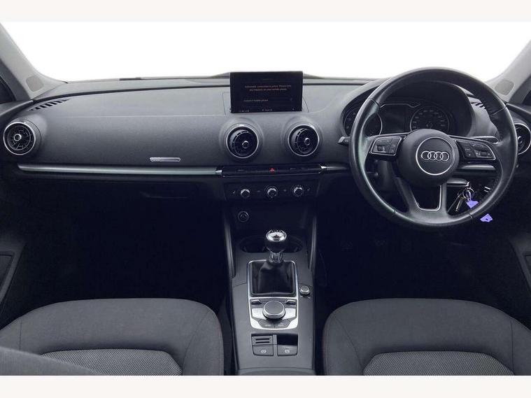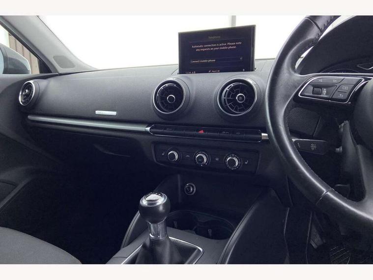 Audi connect, Audi smartphone interface, Automatic start/stop system, Colour driver's information system display, Electro - mechanical power assisted steering, Mobile telephone preparation - bluetooth interface, SD card based satellite navigation system, Service interval indicator, Speed limit display, Voice control system, Voice recognition for navigation system, Dynamic suspension, 2 USB interfaces and Aux-In jack, Audi music interface, CD player, DAB Digital radio, MMI radio plus with 7" colour MMI screen and MMI controller, Auto dimming rear view mirror with light and rain sensors, Body colour bumpers, Body colour door mirrors, Body colour roof spoiler with aerodynamic inserts in high gloss black, Electric front windows, Electric rear windows, Electrically adjustable and heated door mirrors with integrated LED side indicators, Heated windscreen washer jets, Matt black radiator grille, Rear wiper, Xenon headlights with LED Daytime running light, 3 adjustable rear headrests, 3 spoke leather multifunction sports steering wheel, 4 lashing points to secure luggage, Adjustable front centre armrest, Front and rear interior lights with delay, Front/rear floor mats, Glovebox light, Height and reach adjustable steering wheel, Isofix child seat preparation for front passenger/outer rear seats inc passenger airbag deactivation, Rock grey headlining, Storage compartments in doors side trims, centre console and under front drivers seat, Tool kit, Non smoking pack - A3, 3 point seatbelts on all seats, ABS/EBD, Active bonnet, Active front headrests, Airbags - front driver/passenger, front & rear side, curtain, drivers knee, ASR, EDL, Electromechanical parking brake, ESC - Electronic Stability Control + traction control, Front passenger airbag deactivation, Hill hold assist, Manual rear child locks, Multi-Collision braking, Seatbelt warning, Tyre pressure warning, Warning triangle and first aid kit, Anti theft alarm, Anti-theft wheel bolts, Remote control central locking, Thatcham category 1 alarm + immobiliser, Aluminium air vent surrounds, Micrometallic silver inlay, Tyre repair kit,