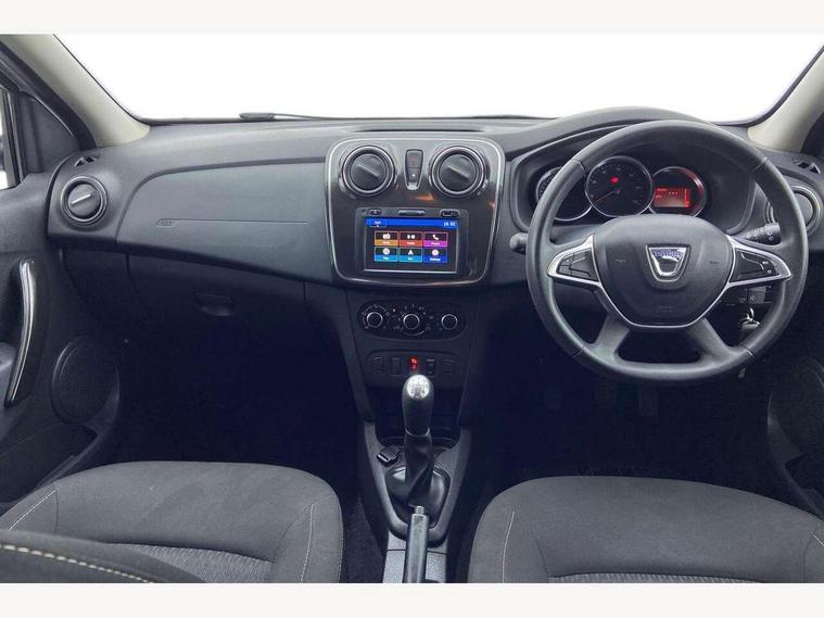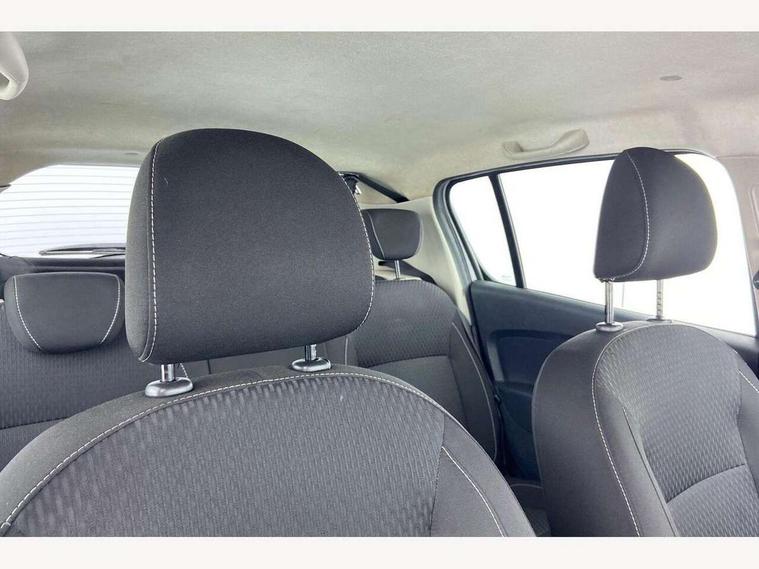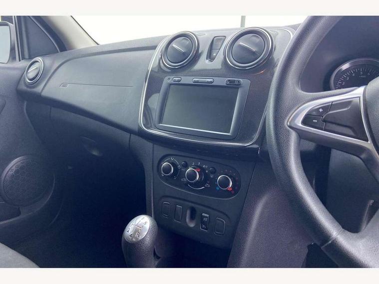 Bluetooth system, Cruise control + speed limiter, MediaNav evolution 7" touchscreen multimedia system- satelitte navigation, RDS, smartphone voice recognition, On board computer, odometer, trip computer, average fuel consumption, average speed, service indicator, outside temperature gauge, PAS, Rear parking sensor, Rev counter, DAB/FM/AM radio with fingertip controls and 4 speakers, USB connection, 3 speed windscreen wipers, Body colour bumpers, Body colour door handles, Body colour door mirrors, Chrome fog light surround, Chrome Honeycomb front grille, Double optic headlights with chrome surround, Electric front windows + drivers one touch, Electrically adjustable and heated door mirrors, Front fog lights, Heated rear window, High level third rear brake light, LED daytime running lights, Rear wash/wipe, Tinted windows, 12V power point for rear passengers, 12V socket by gear lever, 3 rear height adjustable headrests, 60/40 split folding rear seat, Boot light, Chrome gear lever cap insert, Chrome heating controls, Dark carbon door panels, Front courtesy lights, Front passenger grab handle, Front seat back map pockets, Gear shift indicator, Headlights left on audible and visual warning, Heating/ventilation unit with 4 speed fan, Height adjustable front headrests, Isofix on 2nd row outer seats, Leather gear knob, Manual air conditioning, Passenger sunvisor with vanity mirror, Rear grab handles, Satin Chrome door handles, Height adjustment pack - Sandero, ABS+EBA, Child locks on rear doors, Door open warning, Driver's airbag, ESC with ASR and Hill start assist, Front seatbelt unfastened audible+visual warnings, Front side airbags, Passenger airbag with deactivation function, Three 3 point rear seatbelts, Tyre pressure monitor, Automatic door locking, Engine immobiliser, Remote central locking, Chrome air vent surrounds, Chrome instrument dials, Satin chrome centre console surround,