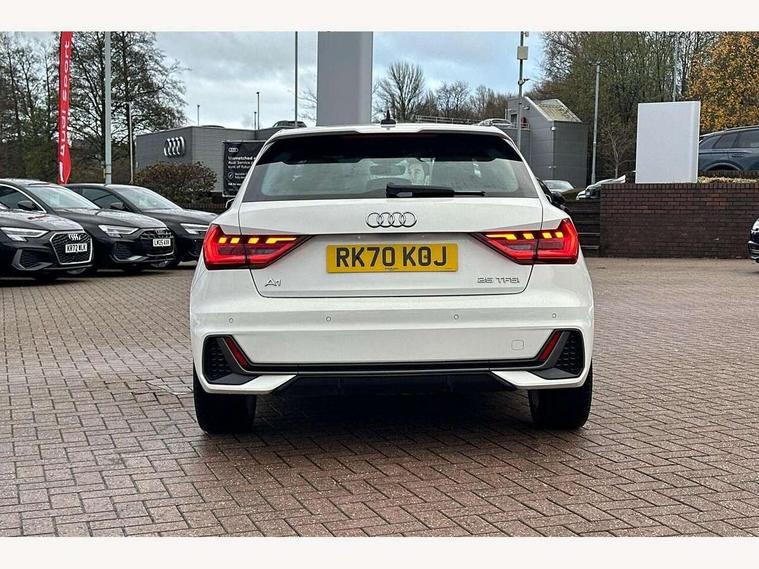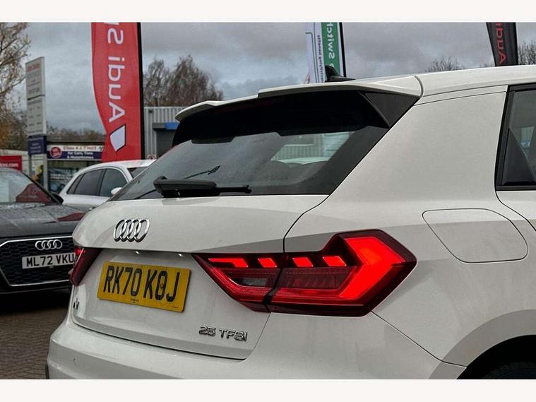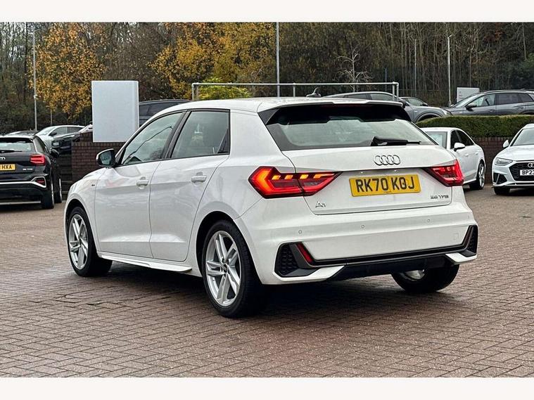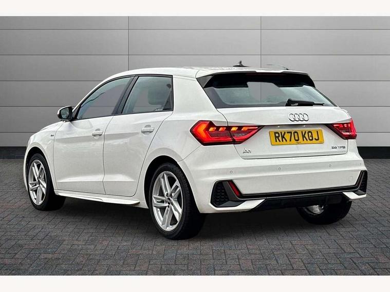 10.25" Digital instrument cluster display classis style instrument dials + speed, odometer, time, outside temperature, telephone menu + fuel level warning, Audi connect safety emergency and service including E-call, Audi smartphone interface with connect compatible smartphone via USB directly MMI display + Nav, music, third party apps controlled via MMI controller, Automatic start/stop system, Bluetooth interface, Cruise control, Driver's information system, Electromechanical power steering, Lane departure warning system, Rear parking sensor, Service interval indicator, Speed limiter, Voice control system, Washer fluid level indicator, Sports suspension, 1 x SDXC card reader, 1 x USB type C and 1 USB type A charging points, DAB Digital radio, MMI radio plus with 8.8" colour MMI display screen and MMI touch, Auto dimming rear view mirror, Body coloured door mirrors, Door sills with aluminium inlays and S Line logo, Electric front and rear windows, Electrically adjustable, heated, folding door mirrors with integrated LED side indicator, Front side air inlets in grained matt black and C frame in titanium black, Heat insulating glass windscreen and side windows, Heated rear windscreen, LED headlights with LED rear lights + dynamic rear indicators + headlight adjustment and high beam, turning light + LED daytime running lights, Radiator grille and rear diffuser in matt titanium black, Radiator protective grille frame in matt aluminium silver, Rain and light sensors, Rear fog lights, Rear wiper, S line badges on front wings, Side front spoiler lips in grained matt black, 12V socket in centre console with two cup holders, 3 rear seats with headrests, 40:60 Split folding rear seat or folded fully, Black cloth headlining, Driver and passenger seat with manual height adjust with forward and backwards adjustment, Front and rear black floor mats with contrast stitching in fine silver, Front head restraints, Height and reach adjustable steering wheel, ISOFIX child seat mounting for front passenger and outer rear seats including top tether attachment point of outer rear seats, Leather gear knob with aluminium trim, Luggage compartment light with front and rear reading lights, Manually adjustable lumbar support in front seats, Stainless steel pedals, LED interior lighting pack - A1, Luggage compartment pack - A1, S line exterior styling pack - A1 Sportback, 3x3 point rear seatbelts, Audi pre-sense front with pedestrain and cyclist recognition, Brake assist function, Driver and front passenger airbag with front side and head airbags, Electronic Stability Control including ABS, EBD, ASR and EDL, Front and rear seatbelt reminder, Front passenger airbag deactivation switch, Hill hold assist, Seatbelt height adjustment for front seats, Seatbelt monitoring, Tyre pressure warning light, Warning triangle and first aid kit, Anti theft alarm, Anti theft wheel bolts and loose wheel warning, Immobiliser, Remote central locking with 2 foldaway keys, Aluminium trim for control switches, air vents and digital instrument cluster, Silver grey inlays polygon structure in diamond paint finish, Structured grey accent areas including air vents, door handle recesses and centre console in quartz paint finish,