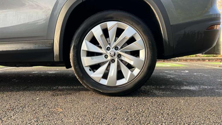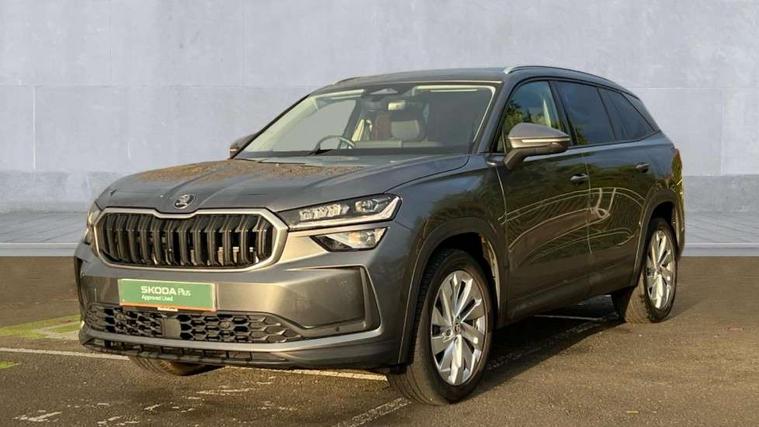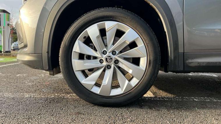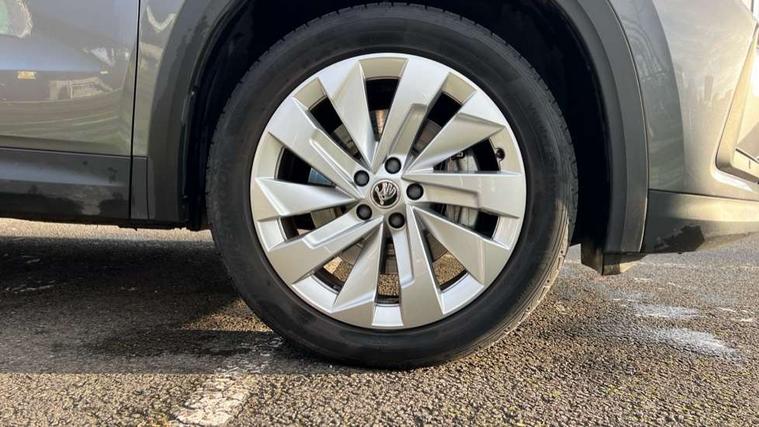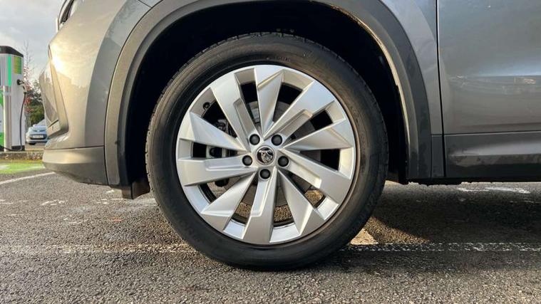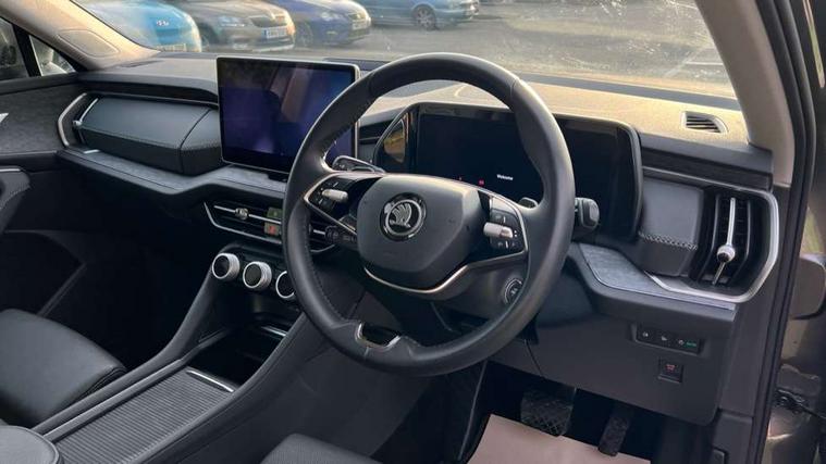 13" satellite navigation touchscreen display, Blind spot detection with door exit warning, Bluetooth system, ChatGPT functionality, Drive mode selector, Driver alert with fatigue sensor, Driver drowsiness alert system, Dry display cleaner, e call+, Front cross traffic assist, Lane assist, PAS, Rear traffic assist, Tailgate unlocking from outside, Traffic sign recognition, USB C Port x 2 in front centre console, Virtual Cockpit - 10.25" digital display, Voice control system, Wireless charging for two smartphones (15W) with cooling function, Wireless SmartLink for Apple CarPlay and Android Auto, Stop/start function, 2x USB-C in the rear, DAB Digital radio, Aero front windscreen wipers with intermittent function, Auto dimming rear view mirror, AWL (all weather lighting) and all weather light with cornering function, Black wheel arch surrounds, Body colour bumpers, Body colour door mirrors and handles, Cornering light and poor weather light, Electric folding /adjustable/separted heated/folding door mirrors, auto dimming with boarding sports and memory function, Electric front and rear windows, Exterior black decorative trims, Heat insulating glass in windshield, Heated rear window, Ice scraper in fuel tank cap, Invisible tailpipe, LED daytime running lights, LED rear fog light, LED third brake light in rear spoiler, Light assistant with automatic headlight control and coming home feature, Logo projection in door mirrors, Privacy glass, Rear side wing doors, Rear spoiler, Rear window wiper, Red decorative strip between rear LED lights, Safety reflectors on front and rear doors, Window control switches with black trim, Windscreen wipers with rain sensor, Without engine designation, 1.5l bottle holder points in all door, 12V socket in boot, 1x centre rear reading light, 2 seat bench in 3rd row, 3 configurable smart dials with 32mm coloured display, 3 seat bench in 2nd row, 4 foldable roof handles with rear coat hooks, Ambient interior lighting - Dashboard, front-door stowage compartments, front and rear door panels and footwell lighting, Automatic gear selector on steering wheel, Chrome interior door handles, Driver/front passenger reading lights, Fabric headlining, Fixed bench 40:60:40 split folding backrests, Front and rear floor mats, Front centre armrest with jumbo box storage compartment, cup holder and 12V socket, Front courtesy lights, Height adjustable front headrests, Isofix child seat fittings in outer middle row rear seats and front passenger with top tether, Manually adjustable steering column, Pollen filter, Rear centre armrest with cupholders, Rear seat boot backrest release, Retractable luggage compartment cover, Single front passenger seat, Sliding trunk cover, Small Bags on the inner sides of the front backrests, Storage pocket including mobile phone pockets on the backs of the front seats, Sunvisors with illuminated vanity mirrors, Three rear height adjustable headrests, Ticket holder on A Pillar, Tri zone climate control, Umbrella in door panel x1 made from sustainable materials, Upper and lower glovebox with card holder and coin compartment, USB C port by rear view mirror for charging only (15W), Exterior styling pack - Kodiaq, Auto door release and activation of warning lights in the event of an accident, Driver and front passenger airbag with knee airbag and front passenger airbag deactivation, Electric child locks, Electronic parking brake, ESC (incl. ABS+EMD+MSR+ASR+EDL+HBA+DSR+RBS+ESBS+MCB+TSA+XDS), Front assist with braking reaction to vehicles, pedestrians and cyclists, Front disc brakes, Fuel cut off safety device, Height adjustable front 3 point seatbelts + pretensioners, Hill hold control, Junction assist with automatic emergency braking, Rear disc brakes, Safety vest holder in door, Seat belt reminder for all seats, Three point rear seat belts, Two tone horn, Tyre pressure monitor, Anti-theft wheel bolts, Immobiliser, Remote central locking with 2 keys, Breakdown kit,