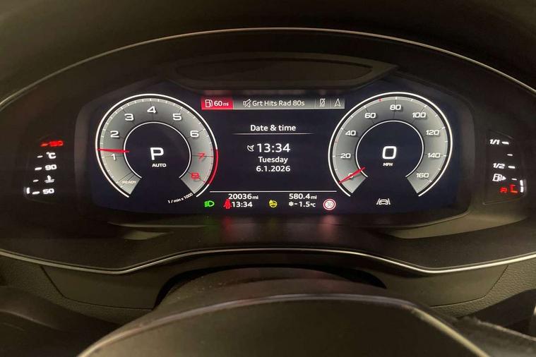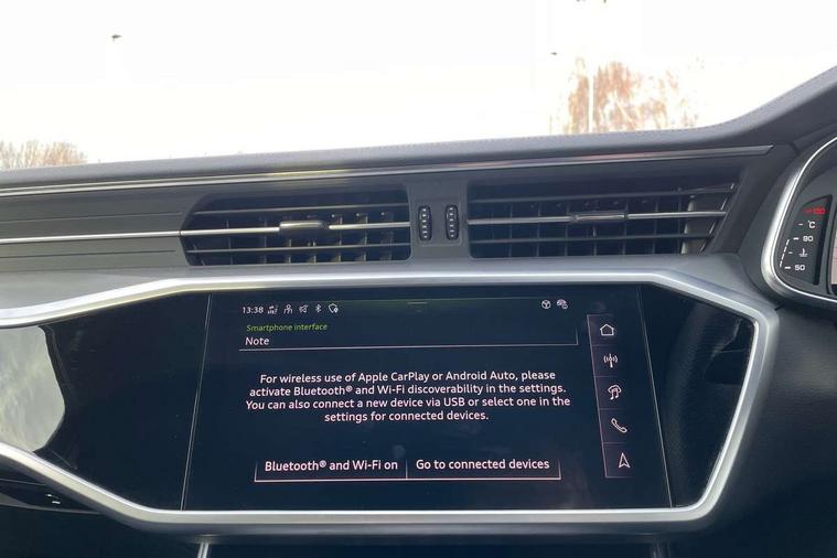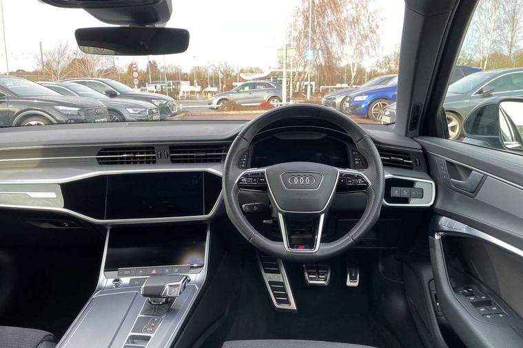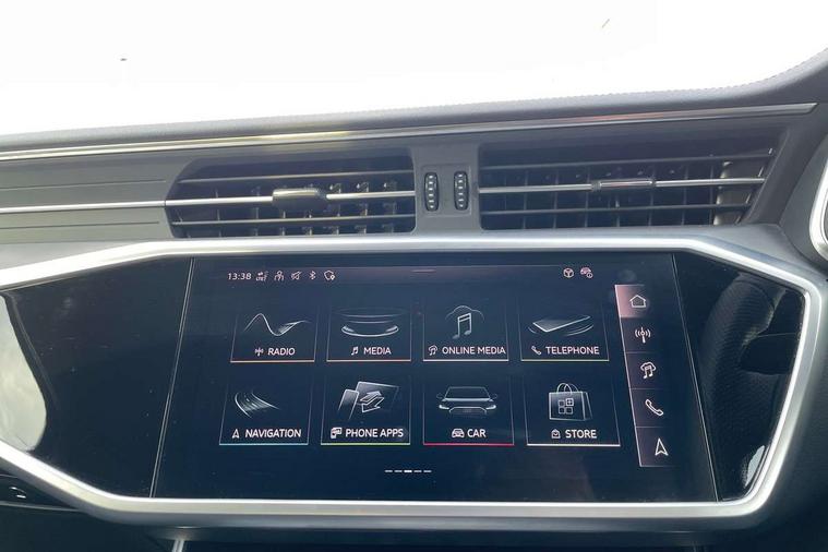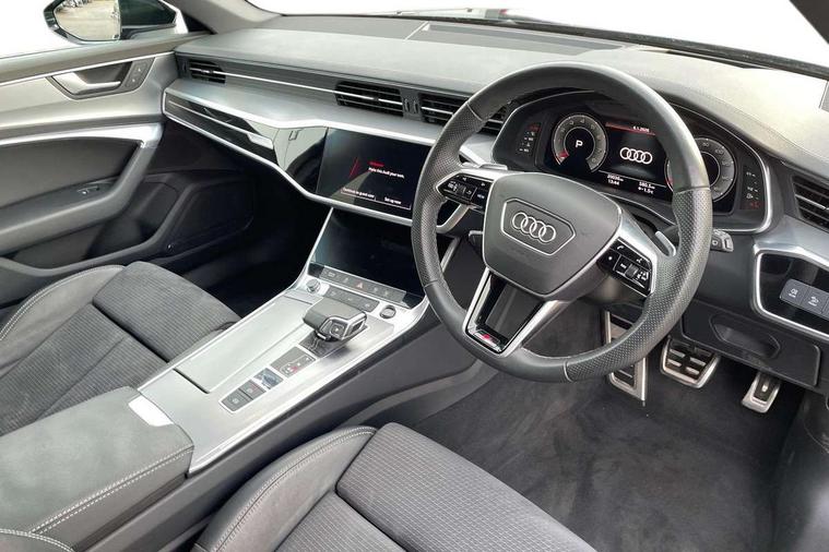 Audi connect safety and service (e-call), Audi connect with Amazon Alexa Integration, Audi drive select, Audi parking system plus - acoustic and visual park assist system for front and rear, Audi virtual cockpit, Automatic start/stop system with coasting functionality, Bluetooth interface, Camera based traffic sign recognition, Lane departure warning system, MMI navigation plus with 10.1" and 8.6" touch screens, Power operated tailgate, Progressive steering, Rear view camera, Service interval indicator, Smartphone interface includes wireless Apple carplay/Android Auto, Voice control system, Sports suspension, Audi front music interface, Audi sound system, Auxiliary input socket, DAB Digital radio, USB connection, Aluminium roof rails, Body colour rear roof spoiler, Body coloured door mirrors, Electric front/rear windows, Electrically adjustable heated and folding + automatically dimming exterior mirrors with memory function, Frameless auto dimming interior rear view mirror, Front intermittent wipers, Heat insulating darkened glass in side and rear windows, Heat insulating glass in windshield, LED rear lights with dynamic indicators, LED signature front daytime running light, LED third brake light, Matrix LED headlights, Matt black rear diffuser with diffuser strip and tailpipes in chrome, Matt black side air intake grille with inlay in matt aluminium, Privacy glass, Radiator grille in anthracite black matt, single frame in chrome and horizontal struts in matt aluminium silver, Rain and light sensors, Rear side wing doors, Rear wiper, 2 zone deluxe electronic climate control, 3 spoke high multi-function perforated leather steering wheel with contrast stitching and shift paddles, 40/20/40 split folding 3 rear seat bench in 3 parts with rear centre armrest, Audi phone box light, Black cloth headlining, Electrically adjustable front seats including seat height, fore/aft position, backrest angle and 4-way lumbar with memory for driver's seat, Front and rear floor mats, Front centre armrest, Front head restraints, Heated front seats, Height/reach adjust steering wheel, Illuminated door sill trims with S logo, Illuminated sun visors with vanity mirrors, ISOFIX child seat mounting and Top Tether with front passenger airbag deactivation, Leather gear knob, Luggage compartment system, Rear headrests, Single front passenger seat, Stainless steel pedals and foot rest, Tool kit and car jack, LED Interior Ambient Lighting Pack - A6, Non smoking pack - A6, S line exterior style pack - A6, 3 point seatbelts on all seats, Airbags - Front side, front and rear including head, Audi pre-sense front, EBD - Electronic brakeforce distribution, Electromechanical parking brake, Electronic Stability Control (ESC) including ABS, ASR and EDL, Extended pedestrian protection measures, Manual child proof rear door locks, Seatbelt monitoring, Tyre pressure warning light, Warning triangle and first aid kit, Anti theft alarm with tow away protection, Anti-theft wheel bolts and wheel loosening detection, Immobiliser, Keyless Go, Remote central locking, Matt brushed aluminium inlays,