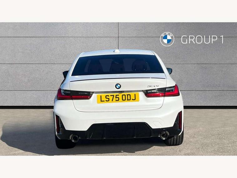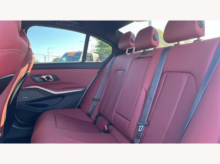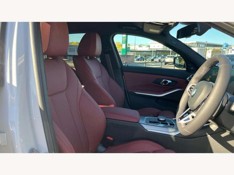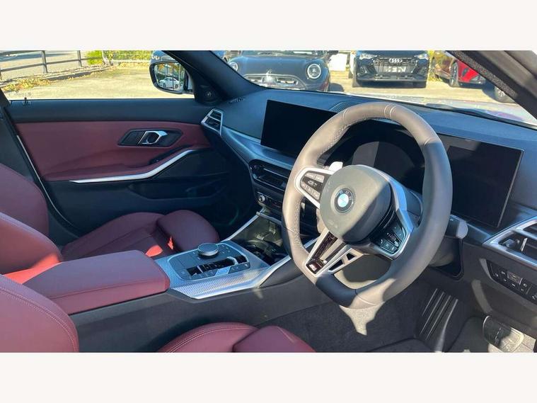 Active guard plus, Attentiveness assist, Automatic Start/stop button, Bluetooth Wi-Fi interface, BMW iDrive, BMW Teleservices, ConnectedDrive Services - last state call, Intelligent voice assist, 2 USB, 4G LTE connect, Live cockpit plus with Navigation + 12.3" instrument display + 14.9" display, Intelligent voice assist, 2 USB, 4G LTE connect, Oil sensor for level and grade, Personal e-SIM, Shifting point display, Variable sport steering, Double joint spring strut front axle, Fuel tank breather system, Steptronic Sport automatic transmission with steering wheel mounted gearshift paddles launch control and xtreme drive lever control, DAB tuner, 3rd brake light, Auto dimming rear view mirror, Automatic headlight beam throw control with load dependent regulating reaction, dynamic compensation of braking dive and acceleration squat, Bi-LED Low and high beam headlights, BMW emblem, engine compartment lid and tailgate, Body colour roof fin, Door sill strips, Electric windows - front and rear, with open/close fingertip control, anti-trap facility and comfort closing, Fading support, Follow me home headlight function, Front and rear bumper system with replaceable deformation elements, Front apron plastic in body colour, Fuel filler flap - right rear in body colour, Heat protection glazing on front windows and windscreen, High gloss chrome kidney frame with high gloss black kidney struts, LED daytime running lights, LED rear lights, LED turn indicator, Licence plate panel integrated into front bumper and tailgate, M high gloss shadow line exterior trim, Matt black B-pillar finsher, Matt black window recess cover, One piece front bumper cover including towing eye cover in body colour, Rain sensor with automatic headlight activation, Rear boot, Rear side wing doors, Reversing lights, Side frame decorative moulding black matt, Trailer stabilisation logic, Visible exhaust tailpipe finisher, Welcome lights in interior and door handle area, Windscreen washer jets, 12V power socket in front storage compartment, 2 front cupholder in centre console with clamping elements and matt black inlay, 3 seat bench in 2nd row, 3 spoke M Sport multifunction flat bottom leather steering wheel, 3 zone automatic air conditioning, 40:20:40 split folding rear seat with loading system, Anthracite headlining, Armrest integrated in front and rear door trim + front centre console armrest, BMW ID, Cruise control operation in steering wheel, Driving experience mode switch, Folding rear centre armrest with 2 cupholders, Front and rear headrests, Front and rear velour floor mats, Front reading light, Heated front seats, Height adjustable mechanically and infinitely variable steering column, Illuminated armrest storage compartment, Illuminated glove compartment, Illuminated luggage compartment, Lashing eyelets in luggage compartment, Single front passenger seat, Sunvisors with illuminated vanity mirrors and ticket pocket, Through load system, Toolkit located in luggage compartment, Connected pack professional - 3 Series Saloon/Touring, Interior and exterior mirror pack - 3 Series Touring/Saloon, M sport exterior styling pack - 3 Series Saloon/Touring, Parking assistant pack - 3 Series, 3x3 point rear seatbelts, ABS, Automatic Stability Control (ASC), BMW emergency call, Child locks on rear doors, Cornering brake control, Crash sensor activating of airbags, Unlocking doors, hazard warning lights, interior light, safety battery terminal, Drive-off assistant, Driver and front passenger with seat occupancy detection for driver's and passenger side, Driver and passenger side airbags, body protection at side and airbags deploy from seat backrests, Dry braking, DSC - Dynamic Stability Control, Dynamic brake control, Dynamic Traction Control - DTC, Electric parking brake including automatic hold function and automatic release of the parking brake when driving off, Electronic differential lock control (EDLC), Front airbag deactivation, Front airbags for driver and front passenger, Head airbags in 1st and 2nd row, head protection at side, curtain airbags open from headliner above 1st and 2nd row, Plastic fuel tank, Side impact protection, Tyre pressure sensors, Ventilated front and rear disc brakes, Warning triangle and first aid kit, Alarm system, Centre lock switch, Closing system with central locking, Electronic vehicle immobiliser, Locking wheel bolts, Tyre repair kit,